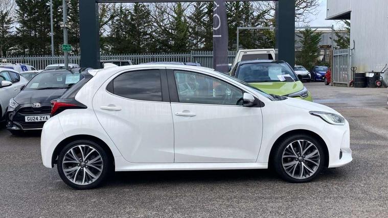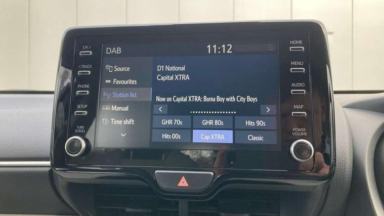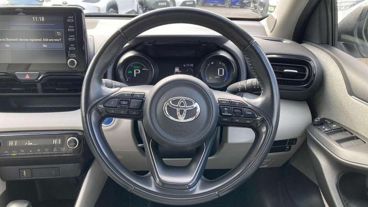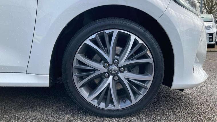 Adaptive cruise control, Adjustable speed limit with speed warning, Blind spot monitoring, Bluetooth connectivity, Colour binocular inspired displays with digital speedometer, E-call, Electric power steering, Front and rear parking sensors and intelligent clearance sonar with automatic braking, Hybrid energy display, Multi information display switches on steering wheel, Reversing camera, Smartphone integration with Apple CarPlay and Android auto, Vehicle Stability Control (VSC), 6 speakers, 8" Multimedia display touch screen, Toyota Touch 2 with DAB, USB connection, Acoustic windscreen glass, Automatic headlights, Automatic windscreen wipers with rain sensor, Automatically retractable door mirrors, Body coloured door mirrors, Electric adjustable heated door mirrors, Follow me home headlights, Front auto power windows with anti jam protection, Full LED rear lights, LED daytime running lights, LED front fog lights, LED Headlights, LED High mounted stop lamp, Painted front grille, Rear auto power windows with anti jam protection, Rear privacy glass, Rear side wing doors, Rear spoiler, Rear wiper, Satin lower front grille, Shark fin antenna, Turning signal integrated indicators in door mirrors, 3 adjustable rear headrests, 3 spoke leather steering wheel, 60/40 split folding rear seat, Adjustbale boot height, Coat hooks in rear grab handles, Cup holders (2 front & door), Data Communication Module (DCM) connected services, Dual zone automatic air conditioning, Fabric seat with partial synthetic leather upholstery, Front armrest, Front sport seats, Glovebox, Height adjustable driver's seat, Height adjustable passenger seat, Isofix seat fixing, Leather gearshift, Map pockets on the backs of the front seats, Pollen filter, Shopping bag hooks, Single front passenger seat, Tilt/telescopic steering column, 3 point seatbelts on all rear seats, ABS+EBD+Brake assist, Active headrests, Electronic parking brake, Emergency brake light system (EBS), Front passenger airbag on/off switch, Front seatbelt reminder, Hill start assist control (HAC), Rear child proof door locks, Rear seat belt reminder, Supplemental Restraint System (SRS) 8 airbags: Driver & passenger's airbags, dual side curtain airbags, side impact airbags, front centre airbag, Toyota Safety Sense 2, Precollison + Night time Pedestrian & Cyclist Detection, Lane Trace Assist, Auto High Beam, Intelligent ACC & Road Sign Assist, Tyre pressure warning system, Alarm/immobiliser, Keyless smart entry with push button start, Remote powered central double locking doors, Satin chrome interior styling, Soft touch instrument panel, Space saver spare wheel,