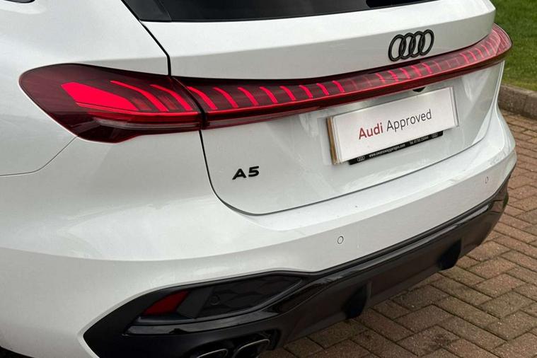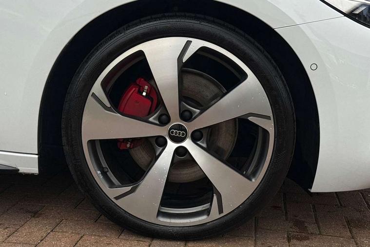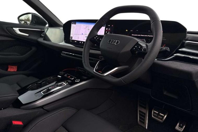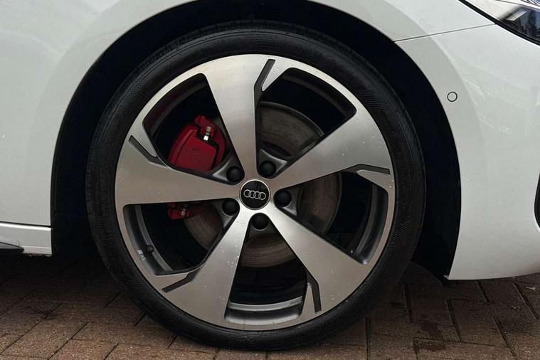 Adaptive cruise control, Advanced driver attention and fatigue montior, Audi application store, Audi assistant, Audi connect emergency call and service, Audi drive select, Audi virtual cockpit plus with 11.9" OLED colour display, Automatic start/stop system with coasting functionality, Camera based traffic sign recognition, Intersection assist, Lane change assistant with exit warning system, rear cross traffic alert and rear turn assist, Lane departure warning with emergency assist, MMI 10.9" front passenger touch display, MMI navigation plus with high resolution 14.5" OLED touchscreen colour display, Park assist plus, Parking system plus with 360 display, Progressive steering with servotronic, Smartphone interface, Swerve assist and turn assist, Top view camera, Traffic sign based speed limiter, Sports suspension lowered by 20mm, 2 USB-C ports in both the front and rear, Audi sound system impressive sound with 8 loudspeakers including centre speaker and subwoofer, 6-channel amplifier with a total output of 180 watts, DAB digital radio reception, Smartphone compartment with wireless charging, Aluminium window trims, Auto dimming rear view mirror, Black door handles, Black roof rails, Dark chrome-plated tailpipe trims, Door mirrors - electrically adjustable, heated, folding and auto dimming on both sides, Front and rear electric windows, Front door sill trims with aluminium inlays, illuminated with 'S' logo, Headlight cleaning system, High beam assist, LED daytime running lights, LED rear lights pro incl. dynamic rear indicators and illuminated light strip with animated coming and leaving home function, LED third brake light, Matrix LED headlights with eight light signatures selectable via the MMI or the myAudi app, Privacy glass, Rear and side windows with heat insulating glass, Rear side wing doors, Rear wash/wipe, S Line badges on the front wings, S line bumpers, radiator grille and diffuser in phantom black and diffuser insert in matt anthracite, White rhombus logo projection light in exterior mirrors, Windscreen with acoustic glazing, 3 rear headrests, 3 seat rear bench, 3 spoke leather steering wheel with multi-function buttons with touch control, flattened on top and bottom, with S badging and contrast stitching, 3-zone automatic climate control, 40:20:40 split folding rear seat bench with centre armrest and cup holders, Comfort front centre armrest, Electrically adjustable front seats, Front and rear floor mats, Front sport seats with integrated headrest and S embossed logo, Headlining in black cloth, Heated front seats, i-Size child seat mounting on the front passenger side and outer rear seats, i-Size and top tether on the outer rear seats, Luggage compartment lid, electrically opening and closing, Manual steering column height and depth adjustment, Memory function for driver seat, Single front passenger seat, Stainless steel pedals and footrest, Steering wheel grips in perforated leather and shift paddles, Ambient lighting package plus - A5, Black styling package plus - A5, 3x3 point rear seat belts, Acoustic vehicle alerting system, Convenience key with safelock, Driver airbag, Electric child safety locks, First aid kit with warning triangle and vests, Front emergency brake assist, Front passenger airbag, Front passenger airbag deactivation, Hill hold assist, Occupant detection in rear seat area, Proactive passenger protection system for front, sides and rear, Red brake calipers, Seat belt monitoring with rear seat occupant reminder, Side airbags in front and rear with head airbag system and front interaction airbag, Tyre pressure loss indicator, Anti theft alarm, Anti-theft wheel bolts, Keyless Go, Accent surfaces and control buttons in gloss black, Black dashboard with contrast stitching, Softwrap in Dinamica with contrast stitching, Upper and lower interior elements in dinamica microfiber, 20" 5 arm fold design Audi sport alloy wheels in silk matt grey and gloss turned finish, Tyre repair kit,