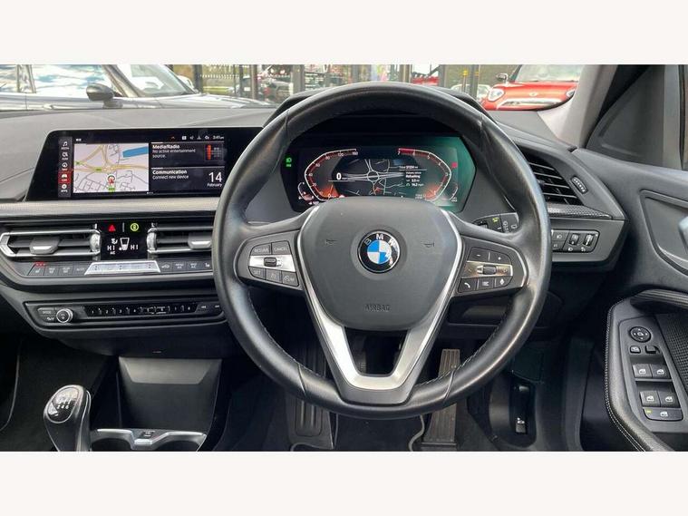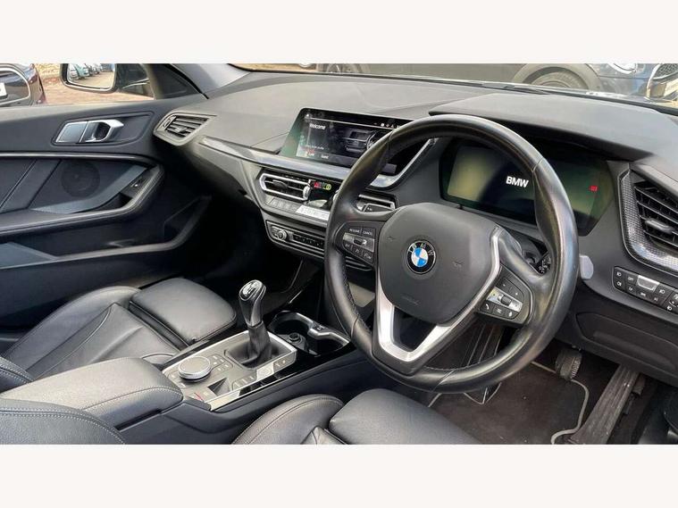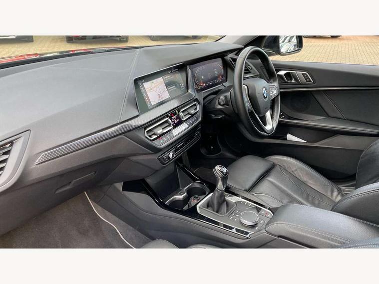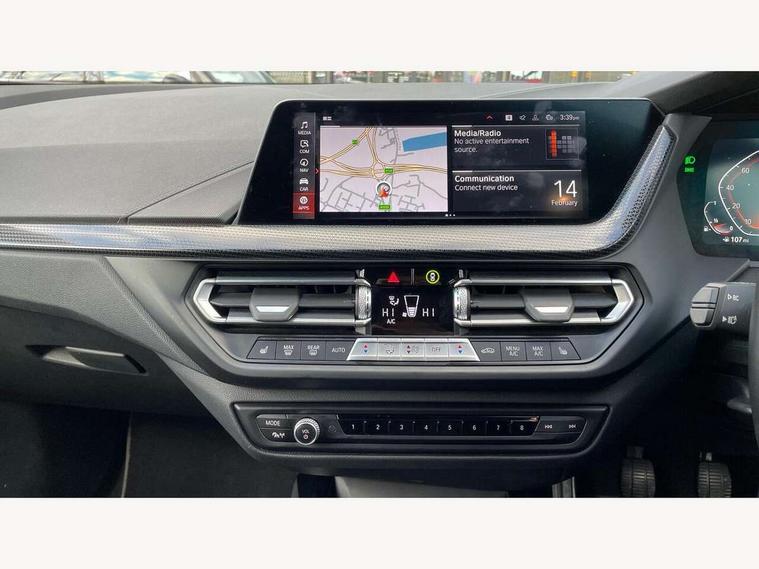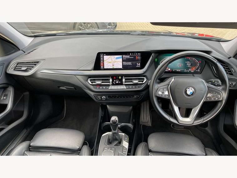 Active guard plus, Attentiveness assist, BMW Online services, BMW Teleservices, Check Control warning system for monitoring of lights and door/luggage compartment open warning, Connected eDrive Services, Cruise control with brake assist, Eco pro mode, Electric power steering with Servotronic steering optimised at all speed ranges, Integrated owners handbook, Lane departure warning system, Oil sensor for level and grade, On board computer, Optimum shift indicator, Personal Profile, Pull away assistant, Speed limiter, 6 speed manual transmission, Aluminium lightweight construction, Anti roll bar front and rear, Balancer shaft, Double VANOS, Drive Performance Control, Electronic differential lock, High precision injection, Petrol Particulate Filter, VALVETRONIC engine management, Bluetooth audio streaming, DAB Digital radio, Auto dimming rear view mirror, Automatic windscreen wipers and automatic headlight, Body colour door handles, Body colour mirror caps, Chrome exhaust tailpipe in single, round (Exhaust tailpipe, stainless steel - single, round), Chrome kidney grille with extra wide black, high gloss black vertical slats, Direction indicator side lights in exterior mirrors, Fading support, Follow me home headlights, Front and rear bumper system with replaceable deformation elements, Front and rear electric windows with open and close fingertip control, anti trap facility and comfort closing, Front bumper in Body colour with exclusive Sport air inlets finished in High gloss Black, Front door sill finishers in black plastic with BMW designation, Green tinted heat protection glazing, Heated, electrically adjustable exterior mirror aspheric on driver side, convex on passenger side, High gloss shadowline window frame, Recess cover mirror frames and B/C pillar embelisher trim, High level third brake light, LED daytime running lights, LED eyebrow turn indicators, LED front fog lights, Lightweight engineering, Manual headlight beam throw control, Matt black air guide grilles, Model designation on right side of tailgate, Nearside reverse light in rear light cluster, Preparation for high beam assistant, Rain sensor including auto headlights activation, Rear bumper in Body colour with exclusive Sport design elements finished in High gloss Black, Rear fog lights, Rear window wiper, Shark fin antenna, Visible VIN plate, Welcome lighting, 12V power socket in centre console, 3 rear seat head restraints, 3 spoke sports leather steering wheel in pearl Chrome, Child seat ISOFIX attachment for two outer rear seats and front passenger seat with anchorage points, Conditioned based service, Folding rear clothes hook, Four grab handles integrated in roof lining, Front and rear door pockets, Front and rear door pockets with bottle holders, Front and rear side armrest integrated into door trim, Front armrest foldable with integrated storage compartment, Front sports seats with electric side bolster adjustment, Glove compartment, Height adjustable front head restraints, Manual adjust steering wheel, Multi-function controls for steering wheel, Storage compartment in centre console, Sun visors with vanity mirrors and insert tab, Two zone automatic air conditioning, Velour floor mats, Connected pack professional - 1 Series, Extended storage pack - 1 Series, Interior lights pack - 1 Series, 2 tone horn, 3 point seatbelts on all seats, front pyrotechnic belt tensioners, stopper and belt force limiters, rear coded belt buckles, Airbags - front driver/passenger, front & rear curtain, front side, Anti lock braking system (ABS) with brake assist, BMW emergency call, Brake drying, Braking readiness, City braking function, Crash sensor activating central locking release, hazard warning lights, fuel cut off, interior lighting + activation of safety battery terminal clamp, Driver and front passenger seat belt security check, Dynamic stability control + (DSC+), Dynamic Traction Control - DTC, Electrically operated hand brake, Front and rear disc brakes, Front passenger manual airbag deactivation, Seatbelt warning, Side impact protection, Tyre pressure monitoring system, Warning triangle and first aid kit, Automatic drive away locking facility, Central locking switch for all doors, fuel filler cap and luggage compartment, Deadlocking function system to all doors, Locking wheel bolts, Remote central locking with two Integrate key, one button for opening and closing all lock, open and close window, button for open luggage compartment, Start/stop button with comfort go keyless engine start and auto start stop deactivation button, Thatcham Cat.1 alarm and immobiliser, Contrast stitching on instrument panel, Illuminated Berlin interior trim, Reduced rolling resistance tyres,