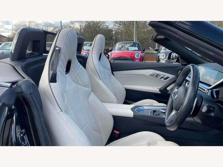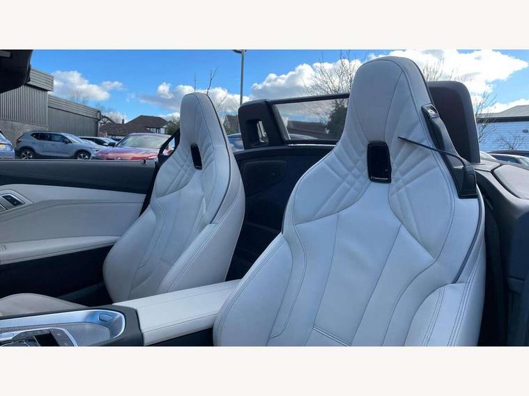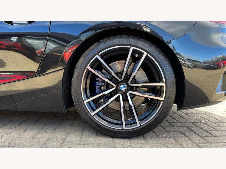 Active Guard, Auto start-stop, BMW ConnectedDrive online services, BMW Live Cockpit Professional with 10.25" high resolution instrument and control display, BMW Teleservices, Electric power steering, Fuel gauge, Instrument cluster, Oil sensor for level and grade, warning by check control system, Oil temperature gauge, Optimum shift indicator, Pull away assistant, Run flat indicator, Speedometer with mph readout, Tachometer, Variable sport steering, Double joint spring, Double VANOS, Drive performance control with ECO PRO comfort + sport mode, Eight speed steptronic sport transmission, with gearshift paddles, Electronic differential lock, Fuel tank breather system, High precision injection, M sport suspension, Safety battery terminal clamp, BMW advanced loudspeaker system, USB connection, Automatic headlight beam throw control with load dependent regulating reaction, dynamic compensation of braking dive and acceleration squat, Door sill finishers with M designation, Door sill strips, Dynamic braking lights comprising activated hazard warning flashers and third brake lights, Electric heated rear window, Exhaust tailpipe - split left and right, Exterior mirror housing finished in body colour, Exterior mirrors - electrically folding with anti-dazzle, Fingertip control / anti-trap function on electric window, Follow me home headlight function, Front and rear bumper system, Green tinted heat protection glazing, Heated windscreen washer jets, High gloss shadow line, Interior rear view electrochromatic mirror with automatic anti dazzle function, Kidney grille in mesh design, LED daytime driving lights, LED Indicators, LED rear lights, Lightweight engineering, M aerodynamic body kit, Matt black window recess finisher, Model logo, Preparation for high beam assistant, Tailgate release handle, Two stage brake force display, Visible VIN plate, Welcome lighting, Windscreen wipers with adjustable interval, 12V power socket in front storage compartment, Activation of interior lighting, Additional storage compartment - 4 lashing eyes, strap and storage net, Ambient lighting, Battery in luggage compartment, Child seat ISOFIX attachments for passenger seat, Cupholder, Driver and front passenger heated seats, Front and rear velour floor mats, Front headrests, Height adjustable mechanically and infinitely variable steering column, M leather steering wheel, M Sport seats for driver and passenger, Microfilter and active carbon filter, Sunvisors with vanity mirrors, Two zone automatic air conditioning, Vernasca leather upholstery, Connected package professional - Z4, 3 point front seat belts, Airbags - Front driver and passenger, front and side impact protection, Anti lock braking system (ABS) with brake assist, Automatic Stability Control (ASC), BMW emergency call, Brake energy regeneration, Braking readiness, Cornering brake control (CBC), Crash Sensor - activates hazard/interior lighting + unlocks doors, Deactivation of fuel pump in the event of a crash, Dry braking, Dynamic brake control, Dynamic stability control + (DSC+), Dynamic Traction Control - DTC, Electromechanical parking brake with automatic drive away release and auto hold function, Front and rear brake discs with interior ventilation, M Sport brakes, Plastic fuel tank, Pyrotechnic seat belt tensioners, Roll over protection, Seat belt force limiter, Seat occupancy protection, Two tone horn, Tyre pressure monitoring with three level warning strategy, Centre lock switch, Closing system with central locking, Electronic vehicle immobiliser, Start/stop button with Comfort Go keyless engine start and auto Start/stop deactivation button, Thatcham cat 1 remote alarm, Sensatec instrument panel, 18" Double spoke M light alloy wheels in bicolour ferric grey - style 798M, BMW Mobility Kit, Reduced rolling resistance tyres,