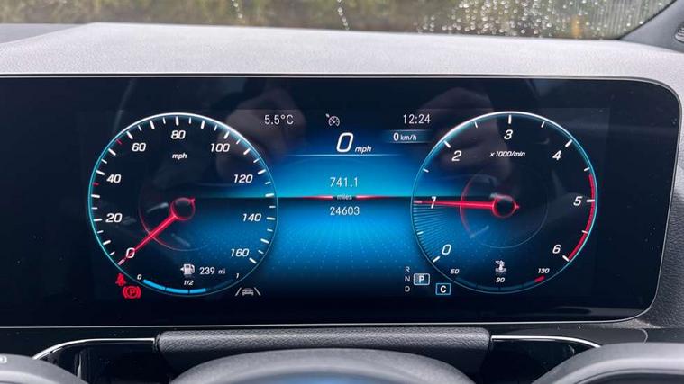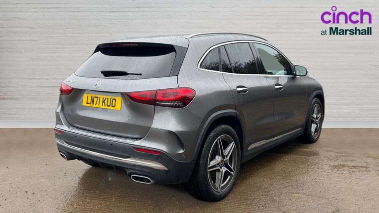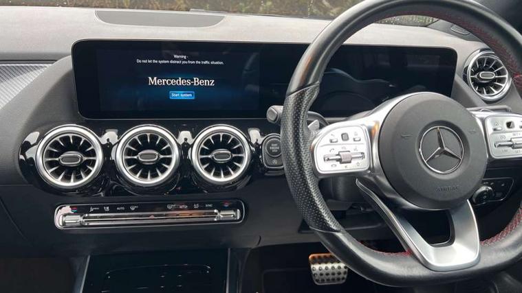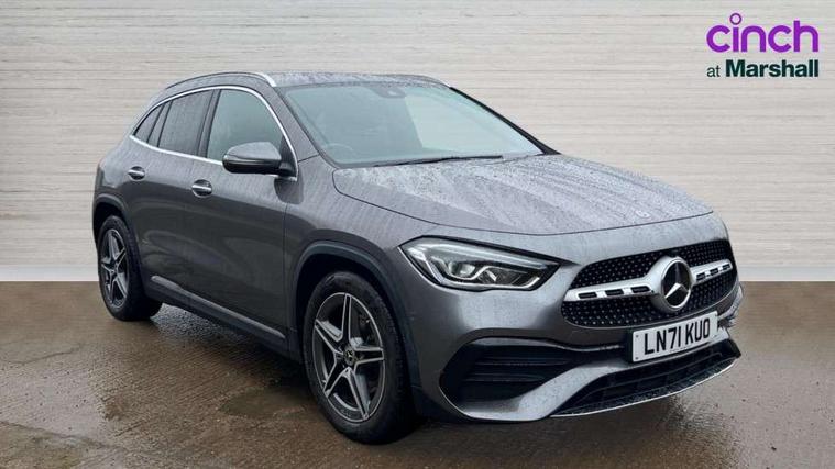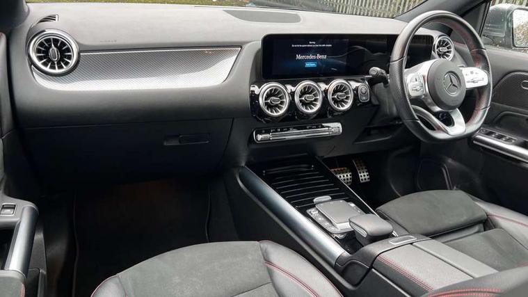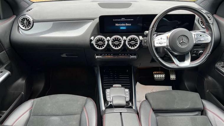 10.25 inch touchscreen central media display, 10.25" Digital instrument cluster display screen, Active lane keeping assist, Attention assist, Cruise control + speed limiter, Direct steering, DYNAMIC SELECT with a choice of driving modes (ECO, Comfort, Sport and Individual), ECO start/stop function, Fluid level warning indicator for fuel, oil, coolant and washer fluid, Hard-disk navigation, Hey Mercedes Voice activation, Lamp failure indicator, Mercedes me connect including emergency call system, accident recovery, breakdown management and maintenance, Mercedes me remote services, Multi function trip computer, Outside temperature gauge, Owners manual and service booklet in English, Pre-installation of private car share, Radio aerial integrated into front and rear windshields, Service indicator (ASSYST), Smartphone integration with Apple CarPlay and Android auto, Speed limit assist, Status display for rear seat belts in instrument cluster, Lowered comfort suspension, Rear axle multi-link, 2 USB ports (type C) in rear stowage compartment and one in front of center console, Bluetooth connectivity including audio streaming, DAB Digital radio, MBUX multimedia system, Media interface, Mercedes-Benz (225w) sound system with 10 speakers, Adaptive brake lights, Aerial for GPS, Aluminium roof rails, AMG front and rear apron, AMG specific/dual flow exhaust pipes in chrome (non-functional), Automatic headlamp activation, Beltline strips and weather strip in chrome, Black grained claddings with chrome parts, Body colour bumpers, Body colour door mirrors, Body coloured door handles with chrome insert for keyless entry, Car wash function, Dark privacy glass from B-pillar backwards, Electric front windows, Electric rear windows, Electrically adjustable and heated door mirrors with integrated LED indicators, Heated glass rear windscreen + timer control, Heated windscreen wash system, Interior mirror with black reading lamps and frameless, LED high performance headlamps with integrated LED daytime running lights, LED tail lights in two piece design, LED third brake light, Matt titanium grey front and rear apron trim, Pre-installation for trailer coupling, Rain sensor windscreen wipers, Rear fog lights, Roof spoiler, Single lamella raditor grille with chrome dotted diamond grille and inlay, 12V power socket in centre console, 3 spoke multifunction sports steering wheel in nappa leather with flattened bottom and perforated grip area, 40:20:40 split folding rear seats with backrest, Adjustable head restraints, Air conditioning - Two zone thermotronic luxury automatic climate control with display, Ambient lighting in front headrests, AMG floor mats with AMG lettering in front, Artico man-made leather/Microfibre Dinamica upholstery with red contrast stitching, Auto Mercedes-Benz child seat recognition sensor, Black roof lining, Brushed door pulls in silver chrome, Courtesy light in boot, Front centre armrest with stowage, Galvanished gear shift paddles on steering wheel, Heated front seats, illuminated door sills with changeable cover, Illuminated glovebox, Interior lighting - 64 colour Ambient lighting, Leather trimmed gearknob, Luggage net on driver/front passenger seat backrest, Manually height and reach adjustable steering column, Multi-gesture touchpad control on center console, Sports pedals in brushed stainless steel with black rubber studs, Sports seats, Stowage compartment in centre console, Stowage compartment with retractable cover, Sunvisors with illuminated vanity mirrors, Twin front cup holders, Two outer rear seat isofix and top tether child seat fixing points, AMG body styling pack - GLA, Comfort seat pack - GLA Class, Interior lighting with light and sight pack - GLA, Load compartment pack - GLA, Mirror pack - GLA Class, Parking pack - GLA, 3 rear 3 point seatbelts, ABS with Brake Assist, Active bonnet pedestrain safety measure which detects an impact and raises bonnet by 65mm, Active brake assist includes forward collision warning system with autonomous braking, Adaptive brake assist with hold function and hill start assist, Bonnet with power domes, Brake pad wear warning indicator, Childproof locks manually operated for rear doors and electrically operated for rear power windows, Crash responsive emergency lighting, Driver and passenger head and side airbags, Drivers knee airbag, Dual stage driver/passenger airbags, Electronic parking brake, ESP curve dynamic assist, ESP with ASR, Front and rear seatbelt reminder, Front brake callipers with Mercedes Benz logo lettering on front, Front passenger seat occupancy sensor, Internally ventilated brakes with perforated brake discs at the front, Tyre pressure monitoring system, Warning triangle and first aid kit, Window airbags, Alarm system with immobiliser and interior protection -Thatcham category 1, Keyless Go starting function, Remote central locking and crash sensor with emergency opening function, Urban guard vehicle protection, Vehicle key with decorative surround in chrome, Carbon structure trim, Chrome air vent surrounds, 19" AMG 5 twin spoke light alloy wheels aerodynamically optimised painted in tantalite grey with a high sheen finish, Summer tyres, Tirefit tyre sealant kit,