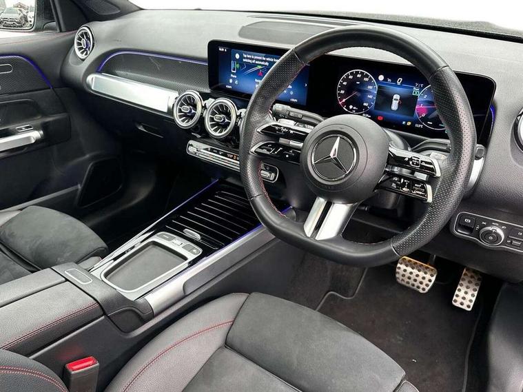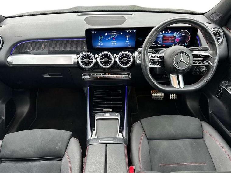 10.25 inch touchscreen central media display, 10.25" Digital instrument cluster display screen, Attention assist - Monitors steering behaviour and long journey fatigue, Bluetooth connection, Brake pad wear indicator warning light, Car wash mode, Direct steering, DYNAMIC SELECT with a choice of driving modes (ECO, Comfort, Sport and Individual), ECO start/stop function, Exit warning function, Fingerprint scanner, Fluid level warning indicator for fuel, oil, coolant and washer fluid, Hard disk navigation, Head up Display, Hey Mercedes Voice activation, Lamp failure indicator, Lane keep assist, MBUX navigation premium, Mercedes me connect including emergency call system, accident recovery, breakdown and maintenance management, Mercedes me remote services, Outside temperature gauge, Owners manual and service booklet in English, Pre-installation of private car share, Preinstallation for parking damage notification, Radio aerial integrated into front and rear windshields, Service indicator (ASSYST), Smartphone integration with Apple CarPlay and Android auto, Speed limit assist, Tailgate, Traffic sign assist, Trip computer in multifunction display with current consumption indicator, Wireless charging, Comfort suspension with ride height lowering, Rear axle multi-link, DAB digital radio tuner, MBUX multimedia system, Mercedes Benz sound system (225 W) with 10 speakers, 1 central speaker, speakers on doors, a tweeter on door, one sub woofer + boost amplifier, Pre installation for Mercedes Benz Link, Adaptive brake lights, AMG specific/dual flow exhaust pipes in chrome (non-functional), Beltline trim and window line trim strip in high gloss aluminium, Body coloured door handles, Electric adjustable and heated door mirrors with integrated LED side indicators, Electric panoramic glass sunroof, Front and rear electric windows, Headlamp assist automatic headlamp activation, Heat insulating dark tinted glass for rear side windows and rear window, Heated glass rear windscreen + timer control, High level LED third brake light, Interior mirror with black reading lamps and frameless, LED daytime running lights, LED tail lamp, Multibeam LED headlamps and tail lamp with adaptive high beam assist, Rain sensor windscreen wipers with two sensitivity stages, Rear fog lamp, Rear side wing doors, Rear wiper, Roof rails painted black, Two visible tailpipe trim elements exhaust, 3 seat bench in 2nd row, 3 twin spoke flattened multifunction steering wheel in nappa leather - horizontal twin spoke in high gloss black, vertical twin spoke in silver chrome, 4 way adjustable lumbar support, 40:20:40 split folding rear seats, Air vents with silver chrome surrounds, AMG floor mats, AMG sports pedals with brushed stainless steel surfaces and black rubber studs, Artico man-made leather/Microcut microfibre upholstery, Automatic child seat recognition sensor, Black roof lining, Electrically adjustable front memory seats, Fluorescent jacket, Front and rear headrests, Front centre armrest with stowage, Galvanised steering wheel gearshift paddles in silver chrome, Height adjustable head restraints, Height/reach adjustable steering column, Interior lighting - 64 colour Ambient lighting, Luggage net on driver/front passenger seat backrest, Single front passenger seat, Sports seats, Stowage compartment in centre console with retractable cover and double cupholder and 12 V socket, Sun visors with illuminated vanity mirrors, THERMOTRONIC automatic climate control, Third row of seats for two people on rear seat, Twin front cup holders, Two outer rear seat isofix and top tether child seat fixing points, Easy pack tailgate, Interior lighting with light and sight pack - GLB, KEYLESS-GO Comfort package - GLB, Mirror package - GLB, Night Package - GLB, Parking Package with 360-degree camera - GLB, Seat comfort package - GLB, USB package plus - GLB, Winter pack - GLB, 3 rear 3 point seatbelts, Active bonnet pedestrain safety measure which detects an impact and raises bonnet by 65mm, Adaptive brake assist with hold function and hill start assist, Airbags - kneebag for driver, Anti-lock braking system (ABS) with brake assist, Bonnet with power domes, Childproof locks manually operated for rear doors and electrically operated for rear power windows, Crash responsive emergency lighting, Curve dynamic assist, Driver and front passenger head and sidebags, Driver and front passenger windowbags, Dual stage driver and front passenger airbags, Electric parking brake, Electronic stability programme with acceleration skid control, Front and rear seatbelt reminder, Front brake callipers with Mercedes Benz lettering, Front passenger seat occupancy sensor, Grey seatbelts, Perforated front brake discs, Tyre pressure monitoring system, Warning triangle and first aid kit, Guard 360 degree vehicle protection - Anti theft alarm system, tow away protection with visual, acoustic warning and alarm, Interior monitoring system, KEYLESS-GO starting function, Remote central locking and crash sensor with emergency opening function, Thatcham category 1 alarm system with immobiliser and interior protection, Carbon structure trim, 20" AMG multi spoke light alloy wheels aerodynamically optimised and painted in black with a high-sheen rim flange RVT, Summer tyres, Tirefit tyre sealant kit,