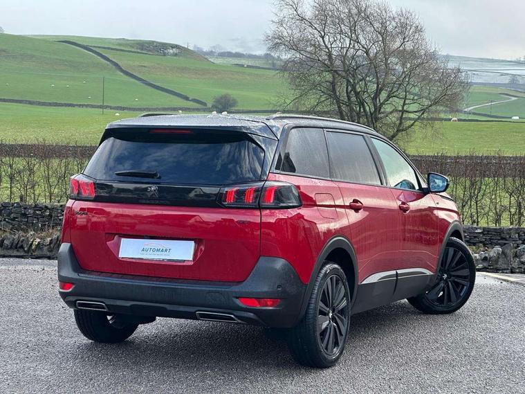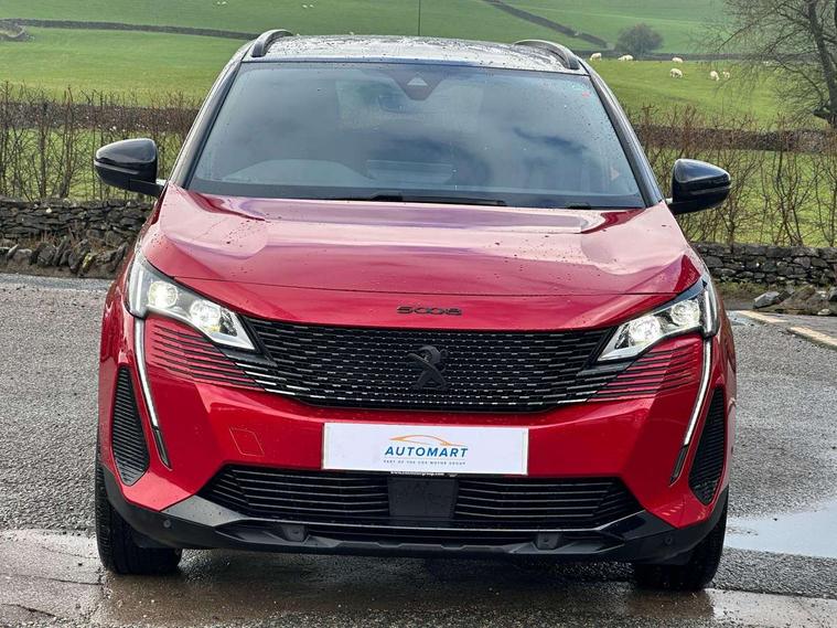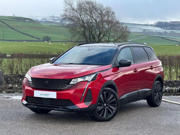 10" High Definition Capacitive Touchscreen, 180 degree colour reversing camera, 3D connected navigation + voice control, Bluetooth telephone connection, Drive mode selector (Eco, Normal and Power), Driving timer alert system, Emergency services call system, Extended traffic sign recognition, Exterior temperature indicator with ice warning, Lane departure warning system, Mirror screen with Apple CarPlay and Android auto, Multi function trip computer, Peugeot i-cockpit with configurable 12.3" headup digital instrumental panel and compact sports steering wheel, PEUGEOT SOS and assistance, Rear passenger USB charging sockets (x2) (type A), Speed limit recognition and recommendation, Sports button, Voice recognition for radio and telephone, Dynamic stability control and electronic anti-skid system, Bi Tuner radio including DAB, USB socket, Auto self levelling headlights, Automatic activation of hazard warning lights, Black diamond roof and nera black door mirror shells, Body colour door handles, Body coloured rear spoiler, Body protectors in black, Chrome side window trim, Dark tinted rear side and tailgate windows, Door mirrors with auto dipping function in reverse gear, Dynamic frameless design in front radiator grille, Electric folding door mirrors with exterior courtesy LED lighting, Electrically heated door mirrors, Frameless electrochrome rear view mirror, Front windscreen wiper with magic wash cleaning system, Full LED headlights with fog mode, Gloss black B and C pillar and aerodynamic deflector trim, Gloss black rear cluster connecting strip, GT emblem (front wings and tailgate), Headlights left on audible warning, Heated rear windscreen with integrated antenna, LED daytime running lights in fang style, LED front indicator, LED rear lights including reversing lights, scrolling indicators and PEUGEOT '3Claw Effect' light signature (with daylight function), LED rear number plate lighting, LED side indicator lights integrated into door mirrors, LED third brake light, One touch electric front/rear windows with pinch protection, Rear side wing doors, Rear windscreen wiper with auto activation when reversing, Silver front lower bumper, Twin exhaust effect trim, 2 cupholders in front centre console, 2 separate seats in 3rd row, 3 bench rear seats in 2nd row, 3 x 12V power sockets, 4 Grab handles retractable and damped, Aikinite stitching in armrest, gear lever and dashboard facia, Aluminium pedals, Automatic and dual zone diffusion air conditioning system, Blue ambient lighting for connecting zone, Blue ambient lighting to front door panels, central storage and cupholders, Blue ambient lighting to head up instrument panel, Brumeo fabric trimmed door armrests, Central front armrest with butterfly wing opening, Tramontane double stitching and illuminated storage compartment, Electric power steering with reach and rake adjustable steering column, Flocked front door pocket interior with blue ambient lighting, Flocked glovebox interior, Fold flat front passenger seat with picnic table, Footwell lighting, Front ambient lighting, Front interior light with reading spotlights (x2), row 2 interior light with reading spotlights (x2), Front passenger seat manual adjustment (longitudinal and back rest angle), Gear shift indicator, Height adjustable driver seat, Height adjustable passenger seat, Illuminated glovebox, Illuminated vanity mirror, Isofix child seat fittings x 3 in the second row, LED interior lighting, Map pocket on front seat backs, Mistral floor mats with Aikinite contrast stitching, Mistral full grain perforated leather steering wheel with aikinite stitch detail and satin chrome 'GT' emblem, Rear ventilation system, Retractable parcel shelf, Roof lining and windscreen pillars in Mistral black, Satin chrome digital instrument panel and touchscreen trim, Satin chrome front door panel recess trim, Satin chrome interior door handles, Satin chrome scorpion's tail and toggle switch trim, Seatbelt not fastened audible and visual alert for front seats, Seatbelt unfastened on the move audible and visual alert for front and rear seats, Single front passenger seat, Third row seats (can be stored under bootfloor or removed completely), Twin rear coat hooks, Children's pack - 5008, Drive Assist Plus Pack - 5008, Driver sport pack - 5008, Visibility pack - 5008, ABS + EBD + EBA, Adaptive driver and front passenger airbags including passenger airbag deactivation function, Electronic parking brake, ESP and ASR traction control with deactivation switch, Five 3 point rear safety belts, Front and rear curtain airbags, Front optimised safety headrests and rear retractable headrests (x3), height adjustable, Front side airbags, Front three point retractable seatbelts height adjustable with pre tensioners and force limiters, Front ventilated disc brakes, Hill start assist, Manual child lock in rear doors, Rear disc brakes, Rear three-point retractable seatbelts (x3) with pre-tensioners and force limiters in the outer rear seats, Two tone horn, Automatic door locking when moving off, Child lock control of rear doors and windows, Electronic code immobiliser, key operated exterior door lock from the left hand door, Keyless start, Perimetric and volumetric alarm with lift and tilt sensor, Peugeot Open and Go System, Remote control central locking with two plip keys, Satin chrome dash trim,