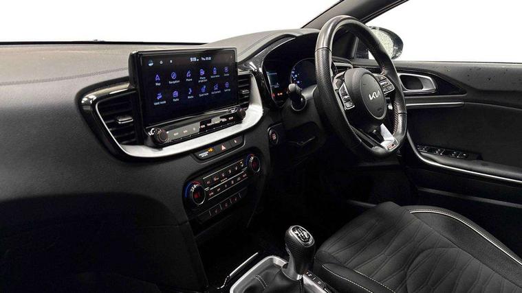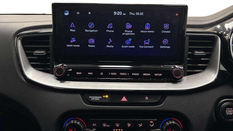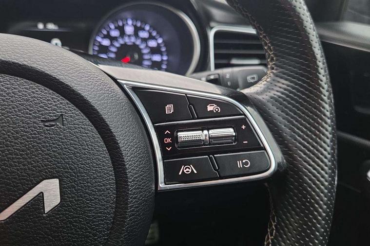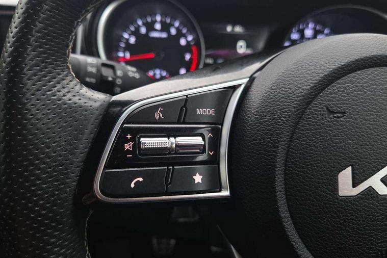 10.25" touchscreen satellite navigation including telematics, 4.2" supervision colour cluster display, Apple car play/Android Auto, Bluetooth with Voice Recognition & Music Streaming, Cruise control + speed limiter, Driver attention warning, Emergency call service, Emergency stop signalling system, Forward Collision-Avoidance Assist (FCA) - City/Pedestrian/Cyclist, Kia connected services featuring TomTom live, Lane keep assist, Motor driven power steering, Rear parking sensor, Reversing camera with dynamic guide lines, Trip computer, Intelligent Stop and Go, 6 speaker audio system, DAB Radio with MP3, Illuminated USB & aux ports, Steering wheel mounted controls, USB & AUX Ports for Connection of a Media Device, USB Fast Charger in Front Centre Console, 3rd brake light, Air intake with black accent lower lip, All-round Electric Windows with Front Auto Up & Down Function, Auto dimming rear view mirror, Automatic defog system, Automatic headlights, Body colour bumpers, Body colour exterior door handles, Body coloured rear roof spoiler with high gloss black trim, Chrome window surround, Electric adjustable/heated/folding door mirrors with LED Indicators, Exterior front door handle illumination, Front fog lights, Front wiper de-icer, Headlamp levelling, Heated rear window with timer, High beam assistant, High Gloss Black and Satin Chrome Radiator Grille, High gloss black door mirrors, High gloss black side sill mouldings, LED daytime running lights, LED full width tail lights, LED rear fog light, LED rear lights, Privacy glass in rear windows and tailgate, Projection headlights, Puddle lights, Rain sensing front wipers, Rear side wing doors, Rear wash/wipe, Wide view drivers door mirror, Windscreen Washer Level Warning, 2 x 12V Power sockets (Front centre console), 3 seat bench in 2nd row, 3 x passenger assist grips, 60/40 split folding rear seat, All-round height adjustable headrests, Aluminium pedals, Black headlining, Centre console storage and sliding armrest, Cloth/faux leather upholstery, Cupholders in rear armrest, Dash illumination dimmer switch, Driver & Front Passenger Sunvisors with Vanity Mirror Illumination & Ticket Holder, Driver + front passenger electric lumbar support, Driver's seat height adjuster, Dual zone automatic air conditioning, Front and rear door storage, Front map light with sunglasses case, Front Passenger Seat Height Adjuster, Front seat and rear pockets, Gear shift indicator, Heated front seats, Heated steering wheel, Illuminated ignition key hole, Interior door lock/unlock function, ISOFIX Child seat top tethers and anchor fixings, Leather D-Cut steering wheel with grey stitching, Leather gearshift, Load area cover, Luggage area light, Luggage area parcel shelf, Luggage hooks, Premium centre console with sliding cupholder cover, Rear Air Ventilation, Rear centre armrest, Rear coat hooks, Satin chrome interior door handles, Single front passenger seat, Tilt/telescopic adjustable steering wheel, ABS with Electronic Brakeforce Distribution (EBD) and Brake Assist System (BAS), All round 3-point seatbelts, Dual front side airbags, Dual horn, Electric parking brake, Electronic stability control (ESC) and vehicle stability management (VSM), Front passenger airbag deactivation, Height adjustable front seatbelts, Hill start assist control (HAC), Impact sensing auto door unlocking, Rear door child safety locks, Seatbelt reminder warning, Traction control, Twin curtain airbags, Twin front airbags, Tyre pressure monitoring system, Alarm system, Engine Immobiliser & Deadlocks, Engine Start/Stop Button with Smart Entry System, Locking wheel nuts, Speed sensitive auto door locking, Black high gloss front console tray garnish & door trim, Satin Chrome Fascia Trim, 17" GT-Line alloy wheels, Tyre mobility system,