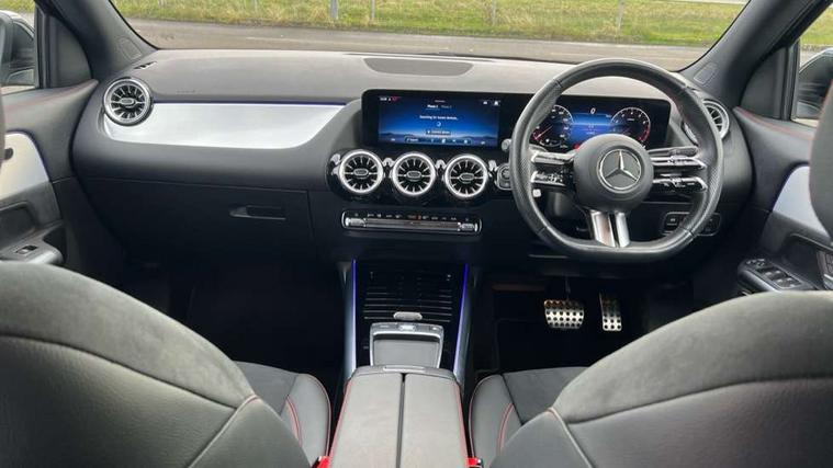 10.25 inch touchscreen central media display, 10.25" Digital instrument cluster display screen, Attention assist, Blind spot assist, Direct steering, DYNAMIC SELECT with a choice of driving modes (ECO, Comfort, Sport and Individual), ECO start/stop function, Fluid level warning indicator for fuel, oil, coolant and washer fluid, Hard-disk navigation, Hey Mercedes Voice activation, Lamp failure indicator, Lane keeping assist (LKA), MBUX augmented reality for navigation, Mercedes me connect including emergency call system, accident recovery, breakdown and maintenance management, Mercedes me remote services, Multi function trip computer, Outside temperature gauge, Owners manual and service booklet in English, Pre-installation of private car share, Radio aerial integrated into front and rear windshields, Service indicator (ASSYST), Smartphone integration with Apple CarPlay and Android auto, Speed limit assist, Status display for rear seat belts in instrument cluster, Wireless charging, Lowered comfort suspension, Rear axle multi-link, Bluetooth connectivity including audio streaming, DAB Digital radio, MBUX multimedia system, Media interface, Mercedes-Benz (225w) sound system with 10 speakers, Pre installation for Mercedes Benz Link, Adaptive brake lights, Adaptive highbeam assist, Aerial for GPS, Aluminium roof rails, AMG front apron with front splitter in the colour of the vehicle with chrome trim element, AMG rear apron with visible tailpipe trim and chrome trim element, AMG specific/dual flow exhaust pipes in chrome (non-functional), Automatic headlamp activation, Beltline trim and window line trim strip in high gloss aluminium, Black grained side sill trim with chrome inlay, Body coloured door handles with chrome insert for keyless entry, Car wash function, Dark privacy glass from B-pillar backwards, Electric front windows, Electric rear windows, Electrically adjustable and heated door mirrors with integrated LED indicators, Exhaust system with 2 Visible tailpipe trim elements and rear apron with trim in chrome, Heat insulating dark tinted glass, Heated glass rear windscreen + timer control, Heated windscreen wash system, Illuminated door sill panels with Mercedes-Benz lettering, Interior mirror with black reading lamps and frameless, LED high performance headlamps with integrated LED daytime running lights, LED tail lights, LED third brake light, Radiator diamond grille with chrome pins and central Mercedes star, single louvre in matt grey with chrome inserts and black highlights, Rain sensor windscreen wipers, Rear fog lights, Rear side wing doors, Rear wiper, Roof spoiler, Wheel arch liners in the colour of the vehicle, 12V power socket in centre console, 3 seat bench in 2nd row, 3 spoke flat bottom multifunction nappa leather steering wheel, 40:20:40 split folding rear seat backrests, Adjustable head restraints, Air conditioning - Two zone thermotronic luxury automatic climate control with display, AMG floor mats, Auto Mercedes-Benz child seat recognition sensor, Black roof lining, Courtesy light in boot, Front centre armrest with stowage, Galvanished gear shift paddles on steering wheel in silver chrome, Heated front seats, Illuminated glovebox, Interior lighting - 64 colour Ambient lighting, Luggage net on driver/front passenger seat backrest, Manually height and reach adjustable steering column, Single front passenger seat, Sports pedals in brushed stainless steel with black rubber studs, Sports seats, Sports steering wheel, Stowage compartment in centre console, Stowage compartment with retractable cover, Sunvisors with illuminated vanity mirrors, Twin front cup holders, Two outer rear seat isofix and top tether child seat fixing points, Comfort seat pack - GLA Class, Interior lighting with light and sight pack - GLA, Keyless go comfort package - GLA, Mirror pack - GLA Class, Parking package with reversing camera - GLA, USB package plus - GLA, 3 rear 3 point seatbelts, ABS with Brake Assist, Active bonnet pedestrain safety measure which detects an impact and raises bonnet by 65mm, Active brake assist includes forward collision warning system with autonomous braking, Adaptive brake assist with hold function and hill start assist, Black seatbelts, Bonnet with power domes, Brake pad wear warning indicator, Childproof locks manually operated for rear doors and electrically operated for rear power windows, Crash responsive emergency lighting, Driver and passenger head and side airbags, Drivers knee airbag, Dual stage driver/passenger airbags, Electronic parking brake, ESP curve dynamic assist, ESP with ASR, Front and rear seatbelt reminder, Front brake callipers with Mercedes Benz logo lettering on front, Front brake discs internally ventilated and perforated, Front passenger seat occupancy sensor, Sports braking system, Tyre pressure monitoring system, Warning triangle and first aid kit, Window airbags, Alarm system with immobiliser and interior protection -Thatcham category 1, Keyless entry lock/unlock, Keyless Go starting function, Remote central locking and crash sensor with emergency opening function, Urban guard vehicle protection, Vehicle key with decorative surround in chrome, Light longitudinal grain aluminium trim, 19" AMG 5 twin spoke light alloy wheels aerodynamically optimised and painted in tantalite grey with a high-sheen finish RTF, Summer tyres, Tirefit tyre sealant kit,
