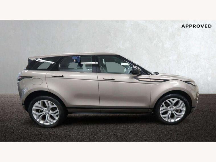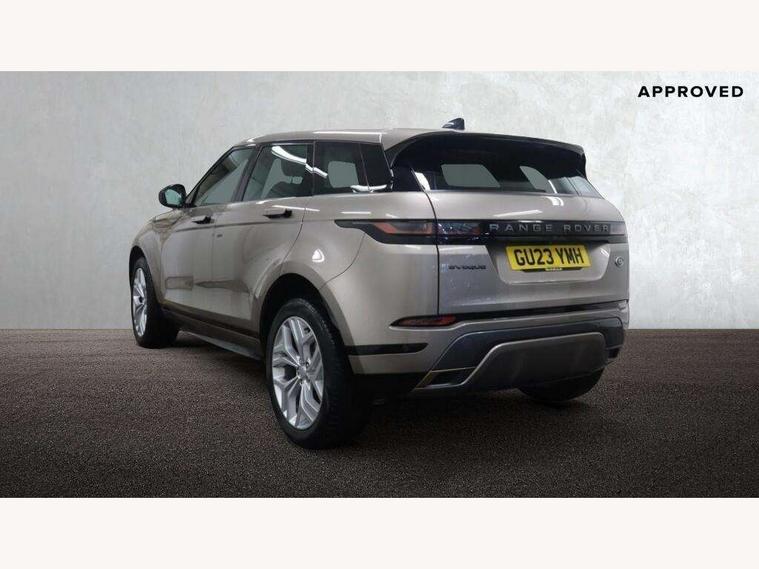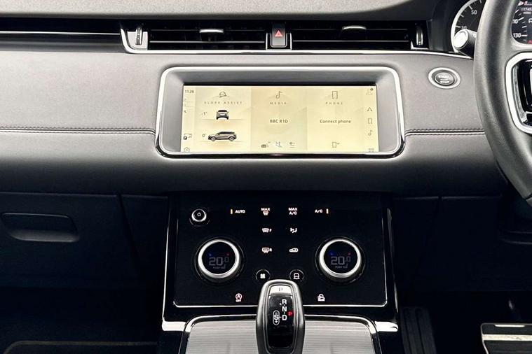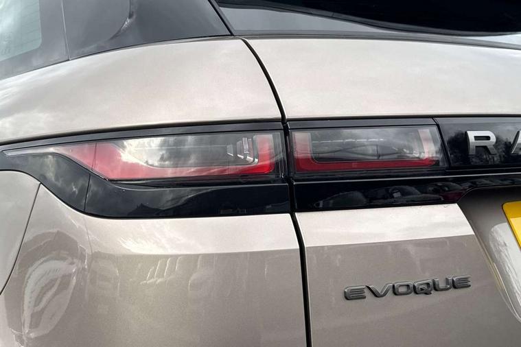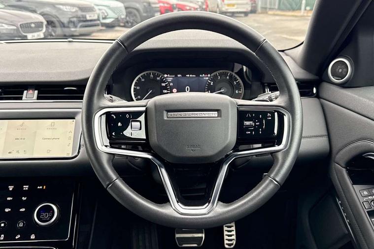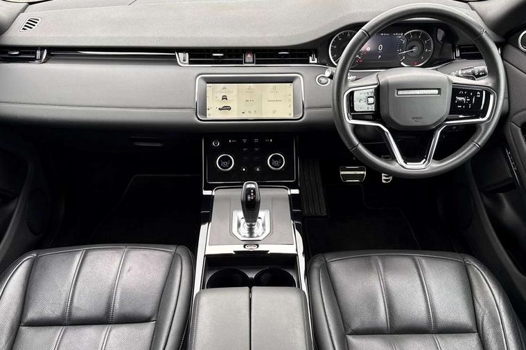 Adaptive cruise control, Android Auto, Apple car play, Blind spot assist, Bluetooth connectivity, Brake pad wear indicator warning light, Driver condition monitor, eCall emergency system, Electronic power assisted steering (EPAS), Front and rear parking aid, InControl remote, Land Rover InControl apps, Lane keep assist, Pivi pro connected includes upgraded infotainment, connected navigation pro, Nuance speech licence, Push button starter, Rear collision monitor, Rear traffic monitor, Traffic sign recognition with adaptive speed limiter, Voice control system, All terrain progress control, Efficient Driveline, Large fuel tank, Passive suspension, Terrain Response 2 Auto, Digital Audio Broadcast radio-DAB, Steering wheel mounted controls, Auto headlights, Automatic headlight levelling, Electric windows with one touch open/close and anti trap, Evoque and R-Dynamic badge, Flush deployable exterior door handles, Heated rear window with timer, Heated washer jets, Heated windscreen, Power fold, auto-dimming, heated door mirrors with approach lights and auto dimming driver side, Rain sensing windscreen wipers, Rear fog lights, Rear side wing doors, Rear wiper, Tailgate spoiler, Third brake light, 40:20:40 split folding rear seats with centre headrest and armrest, Ambient interior lighting, Bright metal pedals, Isofix system on outer rear seats, Overhead lighting console, Overhead stowage for sunglasses, Passive front head restraints, Rear air vents, Rear centre headrest, Rear head restraints, Satin chrome gearshift paddles, Single passenger seat, Sunvisors with illuminated vanity mirrors, Twin sliding front centre armrest, 3 rear 3 point seatbelts, Anti-lock braking system (ABS), Customer configurable autolock, DSC - Dynamic Stability Control, Electronic brake force distribution, Electronic parking brake, Electronic traction control, Emergency braking, Front and rear seatbelt reminder, Hill descent control, Hill launch assist, Low traction launch, Power operated child locks, Roll stability control, Six airbags - Driver and passenger airbags/driver knee airbag/front side airbag and curtain airbags, Torque vectoring brake, Tyre pressure monitoring system, Alarm, Immobiliser, Intrusion sensor, Keyless entry, Locking wheel nuts,