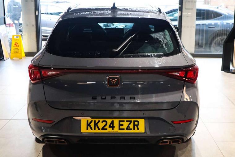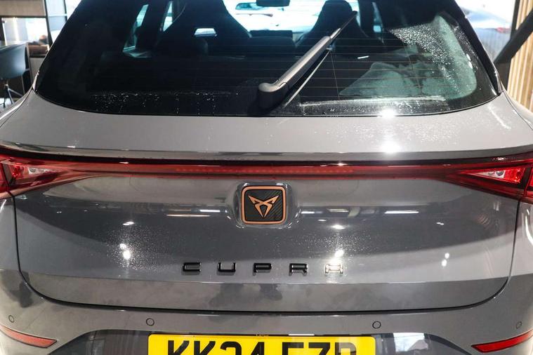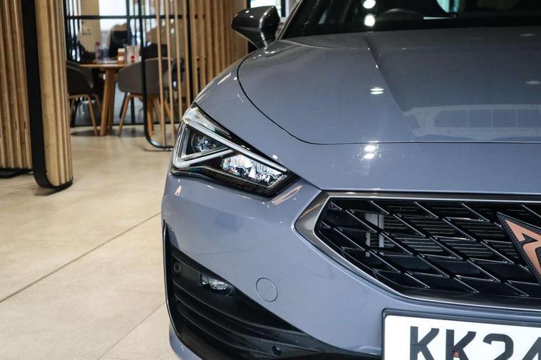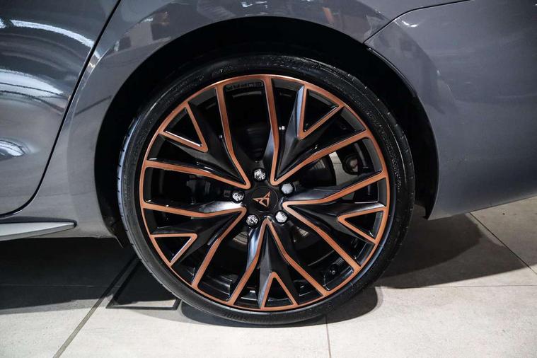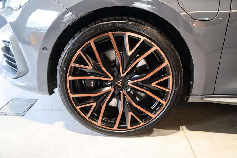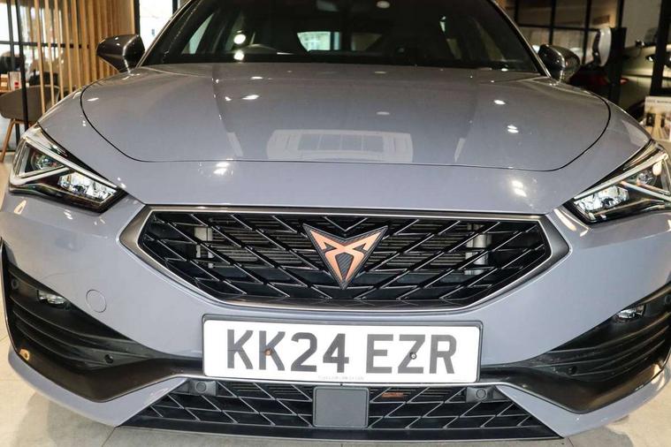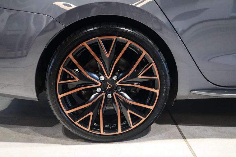 CUPRA drive profile selection with 4 modes (Comfort/Cupra/Sport/Individual), throttle response and gearshift mode, Digital cockpit, E-call, Front assist with forward collision warning braking reaction to vehicles, pedestrians and cyclists, Full link smartphone integration with Mirror Link, wireless Apple CarPlay and wired Google Android Auto, Lane assist, Lockable tailgate, Park assist (inc front/rear parking sensors), Rear view camera, RPM, trip computer, outside temp gauge, instrument light brightness, low fuel warning light, lights on reminder, gearshift indicator, Service interval indicator, Start/stop system with regenerative braking, Wireless phone charger, 10 amp mode 2 charging cable, 16 amp mode 3 charging cable, 3.6 kw On-board charger, Standard suspension, XDS electronic differential lock and dynamic traction support, Auxiliary input socket, Auto dimming rear view mirror, Body colour door handles, Body coloured bumpers, Cupra sports bumpers, Dark tinted rear windows, Electric front/rear windows, Electrically adjustable, heated and folding door mirrors, Gloss black roof rails, LED front fog lamps with cornering function, LED headlights with dynamic turn signals, tail lights, rear fog lights with rear coast to coast lighting, Panoramic sunroof, Rain sensing wipers, Rear diffuser with twin exhaust pipe on each side with simulated exhausts, Rear side wing doors, Rear wash/wipe, Separate daytime running light with automatic headlight control and coming home feature, Third brake light, 12v power supply in centre console, 12v socket in loadspace, 3 seat bench in 2nd row, 5 headrests, 60/40 split rear bench seat with armrest, Ambient lighting (glovebox, footwell, ambient lighting multicoloured), Black headlining, CUPRA Leather flat bottomed, heated, perforated steering and gearshift paddles, Cupra sports pedals, Driver/passenger manual seat height adjustment, Dust/pollen filter, Four x USB Type C ports (2 in front and 2 in rear), Front and rear reading lights X 4, Front centre armrest, Front seats manual lumbar adjustment, Height/reach adjust steering wheel, Illuminated interior front door sills, Interior wraparound lighting, ISOFIX points in outer rear seats with top tether anchorage points, Luggage tie-down hooks, PVC/Cloth upholstery with copper stitching + Cupra embossed logo on headrest, Single front passenger seat, Sliding boot cover, Sports bucket seats, Storage pockets on rear of front seats, Sunvisors with illuminated mirror, Three zone climate control, Design pack - Cupra Leon, Dynamic and comfort pack - Leon Cupra, Media system plus with navigation pack - Leon Cupra, 3 point seatbelts on all rear seats, ABS, Brake control system - ESC and brake booster, Child proof door locks, Cupra black brake calipers, Driver and front passenger airbags with front passenger airbag de-activation, front side and curtain airbags, Electronic parking brake, Extended safety system - seat belt tensioner, window closure and hazard lights, Hill hold control, Rear disc brakes, Seat belt reminder for front and rear seats, Tiredness recognition system, Tyre pressure monitoring system, Anti theft alarm system with interior monitoring in cab, backup horn and towing protection, KESSY Advanced - Keyless start, keyless entry, Locking wheel bolts, Chrome and copper interior detailing, 19" Performance satin black and copper alloy wheels with 91Y tyres, Breakdown kit, Tool kit,