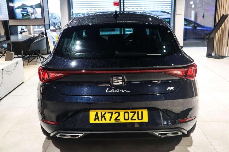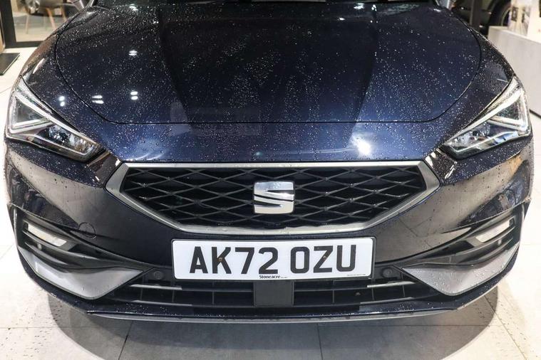 Digital cockpit, E-call, Front assist with forward collision warning braking reaction to vehicles, pedestrians and cyclists, Full link smartphone integration with Mirror Link, wireless Apple CarPlay and wired Google Android Auto, Lane assist, Lockable tailgate, Park assist (inc front/rear parking sensors), Power assisted speed sensitive electro-mechanical steering, RPM, trip computer, outside temp gauge, instrument light brightness, low fuel warning light, lights on reminder, gearshift indicator, SEAT drive profile with 4 modes (Eco/Normal/Sport/Individual), throttle response and gearshift mode, Service interval indicator, Start/stop system with regenerative braking, Sports suspension, XDS electronic differential lock and dynamic traction support, 7 speakers, Auxiliary input socket, Auto dimming rear view mirror, Body colour door handles, Body coloured bumpers, Cosmo grey exterior mirrors with integrated LED indicators, Dark tinted rear windows, Electric front/rear windows, Electrically adjustable, heated and folding door mirrors, FR sports bumper, Illuminated front door sill, LED front fog lamps with cornering function, LED headlights and tail lights with dynamic turn signals, welcome light silhouette from exterior mirrors and dynamic headlight range control, LED rear fog lamp, Rain sensing wipers, Rear side wing doors, Rear wash/wipe, Separate daytime running light with automatic headlight control and coming home feature, Third brake light, 12v power point in centre console, 3 seat bench in 2nd row, 60/40 split rear bench seat with armrest, Ambient lighting with glovebox, footwell and single monocolour, Driver/passenger manual seat height adjustment, Dust/pollen filter, Folding boot cover, Four x USB Type C ports, Front and rear height adjustable headrests, Front and rear reading lights X 4, Front centre armrest, Front seatback storage pockets, Height/reach adjust steering wheel, ISOFIX points in outer rear seats with top tether anchorage points, Luggage tie-down hooks, Lumbar adjustment for front seats, Single front passenger seat, Sunvisors with covered illuminated mirror, Three zone climate control, Two tone cloth upholstery, Media system plus with navigation - Leon, 3 point seatbelts on all rear seats, ABS, Brake control system - ESC and brake booster, Child proof door locks, Driver and front passenger airbags with front passenger airbag de-activation, front side and curtain airbags, Electronic parking brake, Extended safety system - seat belt tensioner, window closure and hazard lights, Hill hold control, Rear disc brakes, Seat belt reminder for front and rear seats, Tiredness recognition system, driver alert system, Tyre pressure monitoring system, Anti theft alarm system with interior monitoring in cab, backup horn and towing protection, KESSY Go (Keyless start), Locking wheel bolts, Wireless phone charging, Chrome interior detailing, 17" Dynamic Bi-spoke alloy wheels with 91W tyres, Tool kit,