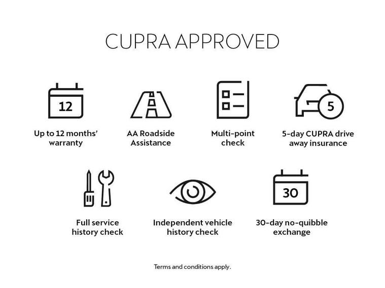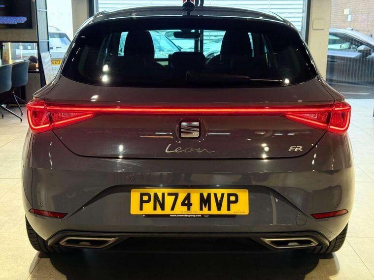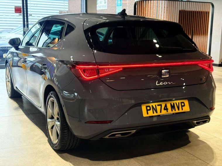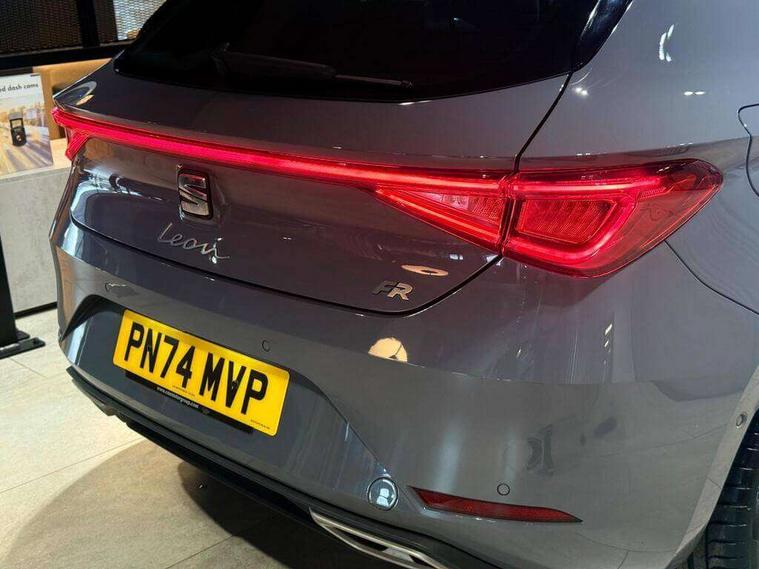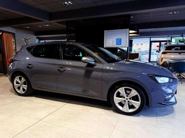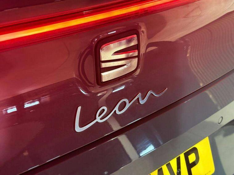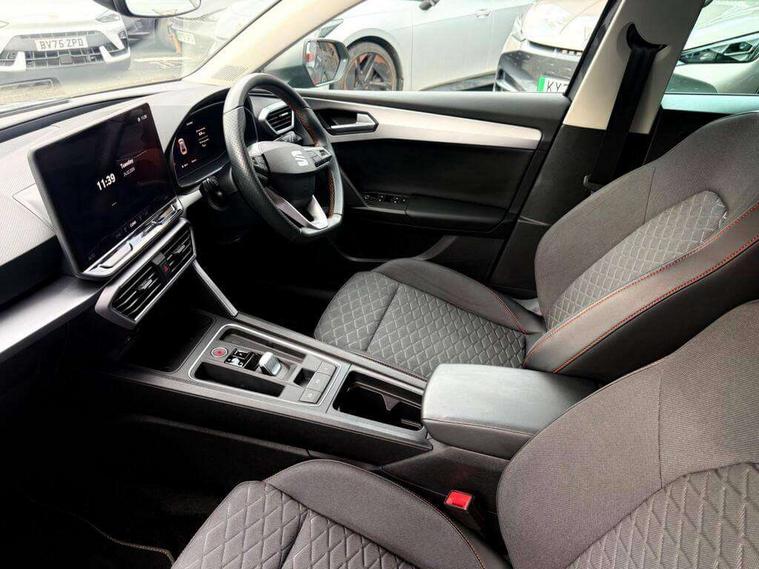 Digital cockpit with multifunction display, Driver attention alert with drowsiness warning, E-call, Front assist with forward collision warning braking reaction to vehicles, pedestrians and cyclists, Full link smartphone integration with Mirror Link, wireless Apple CarPlay and wired Google Android Auto, Intelligent speed assist, Lane assist, Lockable tailgate, Park assist (inc front/rear parking sensors), Power assisted speed sensitive electro-mechanical steering, Rear view camera, RPM, trip computer, outside temp gauge, instrument light brightness, low fuel warning light, lights on reminder, gearshift indicator, SEAT drive profile with 4 modes (Eco/Normal/Sport/Individual), throttle response and gearshift mode, Service interval indicator, Start/stop system with regenerative braking, Sports suspension, XDS electronic differential lock and dynamic traction support, 2 front and 2 rear USB-C ports, 7 speakers, Auxiliary input socket, Auto dimming rear view mirror, Body colour door handles, Body coloured bumpers, Cosmo grey exterior mirrors with integrated LED indicators, Dark tinted rear windows, Electric front/rear windows, Electrically adjustable, heated and folding door mirrors, FR sports bumper, Illuminated front door sill, LED front fog lamps, LED headlights and infinite rear tail lights, LED rear fog lamp, Rear side wing doors, Rear wash/wipe, Separate daytime running light with automatic headlight control and coming home feature, Third brake light, Welcome light silhouette from exterior mirrors, Windshield wiper intermittent control with light/rain sensor, 12v power point in centre console, 3 seat bench in 2nd row, 60/40 split rear bench seat with armrest, Ambient lighting with glovebox, footwell and single monocolour, Driver/passenger manual seat height adjustment, Dust/pollen filter, Folding boot cover, Front and rear height adjustable headrests, Front and rear reading lights X 4, Front centre armrest, Front seatback storage pockets, Grey headlining, Height/reach adjust steering wheel, ISOFIX points in outer rear seats with top tether anchorage points, Luggage tie-down hooks, Lumbar adjustment for front seats, Single front passenger seat, Sunvisors with covered illuminated mirror, Three zone climate control, Two tone cloth upholstery, Media system plus with navigation - Leon, 3 point seatbelts on all rear seats, ABS, Brake control system - ESC and brake booster, Child proof door locks, Driver and front passenger airbags with front passenger airbag de-activation, front side and curtain airbags, Electronic parking brake, Extended safety system - seat belt tensioner, window closure and hazard lights, Hill hold control, Rear disc brakes, Seat belt reminder for front and rear seats, Tyre pressure monitoring system, Anti theft alarm system with interior monitoring in cab, backup horn and towing protection, KESSY Go (Keyless start), Locking wheel bolts, Wireless phone charging, Chrome interior detailing, 17" Dynamic Bi-spoke alloy wheels with 91W tyres, Tool kit,