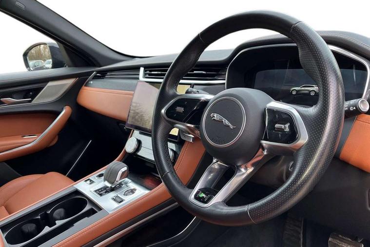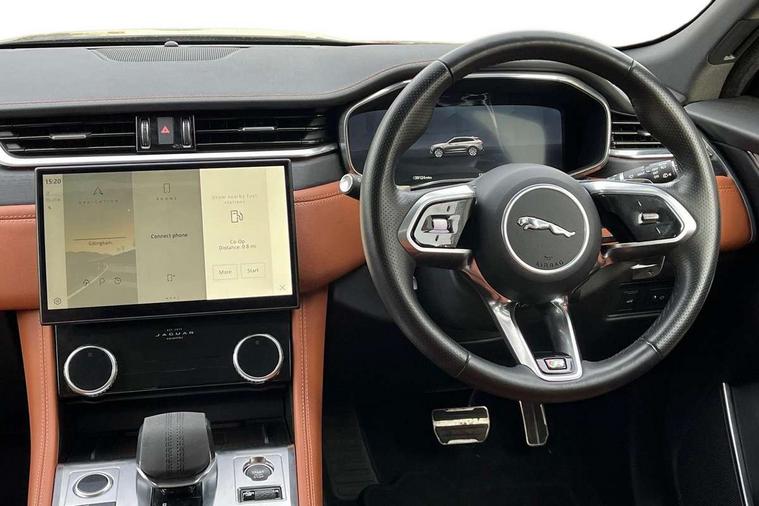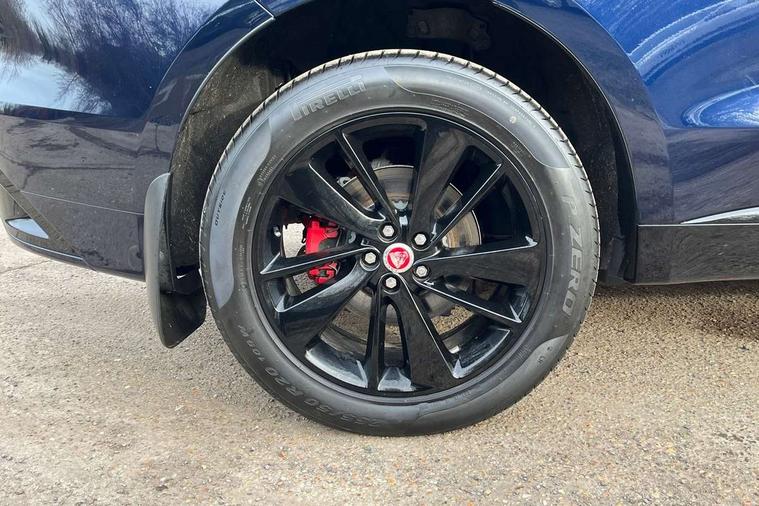 11.4" touchscreen, Android Auto, Apple car play, Bluetooth connectivity, Driver alert system, Driver condition monitor, eCall emergency call system, Eco driving style assistant, Electric power assisted steering, InControl remote, Jaguar Toggle shift selector, Lane departure warning system, Lane keep assist, Outside temperature gauge, Personalisation profile management, Pivi pro connected navigation system with app interface and media storage, Pro services and wifi hotspot, Push button starter, Service interval indicator, Speed proportional steering, Start up sequence with movement in dials and lighting, Traffic sign recognition with adaptive speed limiter, Trip computer, Voice control system, 8 speed automatic transmission, All terrain progress control, All Wheel Drive (AWD), Open differential with torque vectoring by braking, AM/FM radio, Bluetooth streaming, DAB Radio (Digital Audio Broadcasting), Dynamic volume control, InControl apps, InControl protect, iPod integration, 3 flash lane change indicators, Animated directional indicators, Approach Illumination, Auto dimming rear view mirror, Automatic headlights, Electric windows with one touch open/close and anti trap, F-Pace and R Dynamic badge, Gloss black door mirrors, Gloss black roof rails, Green tinted glass, Heated front windscreen + heated washer jets, Heated rear window with timer, Jaguar script and leaper, LED High level third brake light, LED tail lights, Non acoustic front windscreen, Privacy glass, R Dynamic badge on side door, Rain sensor windscreen wipers, Rear fog lights, Rear metal tread plates, Rear side wing doors, Rear wiper, Trailer stability assist, Variable front intermittent wipers, 12V power point front, 3 rear headrests, 3 seat bench in 2nd row, Air distribution speed, Bright metal foot pedals, Centre armrest console, Centre console with side storage, Deletion loadspace storage rails, Door sill tread plates, Fold flat front seats, Front centre armrest with storage compartment, Front door storage space, Glovebox finisher with jaguar script, Heated steering wheel, Hooks in loadspace, Illuminated glovebox, Interior front door handles with separate locking switches, ISOFIX on outer rear seats, Jaguar sense, Luggage tie downs in loadspace, Mist sensing, Multifunction steering wheel, Overhead lighting console, Overhead stowage for sunglasses, Passive front head restraints, Premium cabin lighting, Premium carpet mats, R-Dynamic branded leather steering wheel, Rear air vents, Rear armrest with twin cupholders, Rear centre headrest, Rear door storage space, Reversible boot floor, Satin chrome gearshift paddles, Shopping bag hook, Single front passenger seat, Sunvisors with illuminated vanity mirrors, Twin front cupholders with cover, Black Exterior pack - F Pace R-Dynamic/Sport, Exterior pack - F Pace R-Dynamic, Online Pack with data plan - F-Pace, 355mm front brakes and 325mm rear brakes, 3x3 point rear seatbelts, ABS, All surface progress control (ASPC), Brake pad warning light, DSC - Dynamic Stability Control, Electric parking brake (EPB), Emergency brake assist, Front airbags with passenger seat occupant detector, Front and rear seatbelt reminder, Front side airbags, Full length side window curtain airbag, Hill launch assist, Power operated child locks, Torque vectoring brake, Traction control, Tyre pressure monitoring system, Immobiliser, Keyless Start, Locking wheel nuts, Perimeter alarm, Remote central locking, Valet mode,
