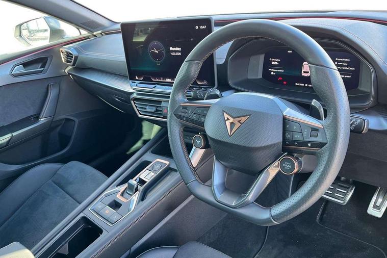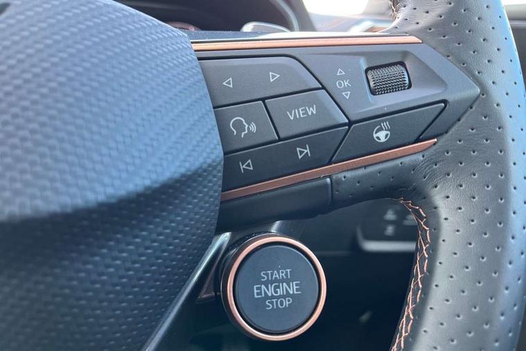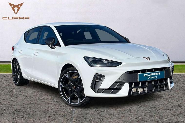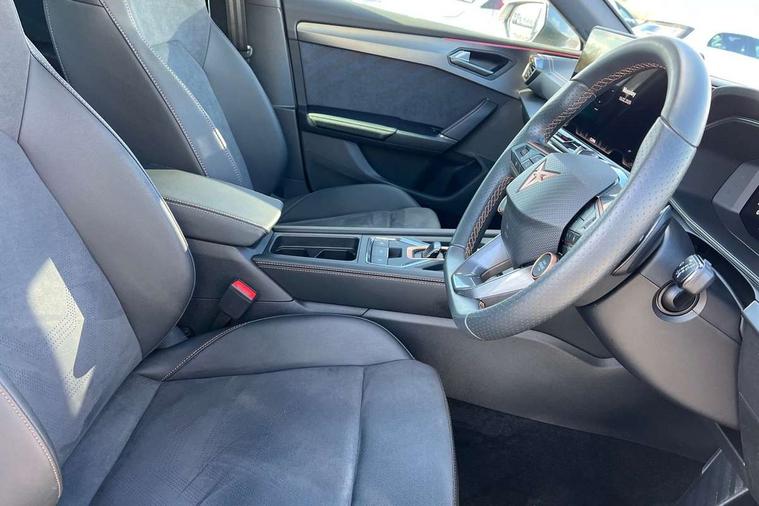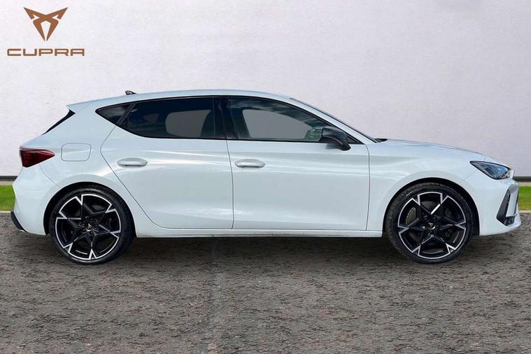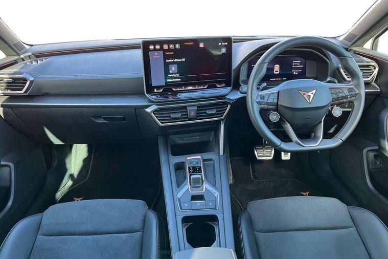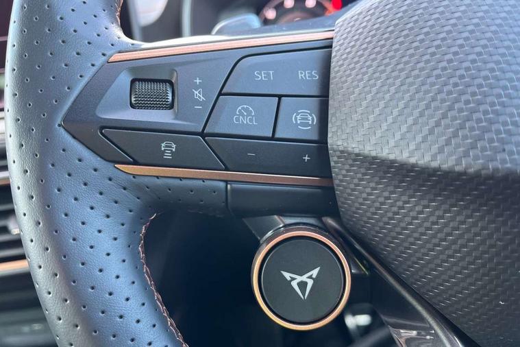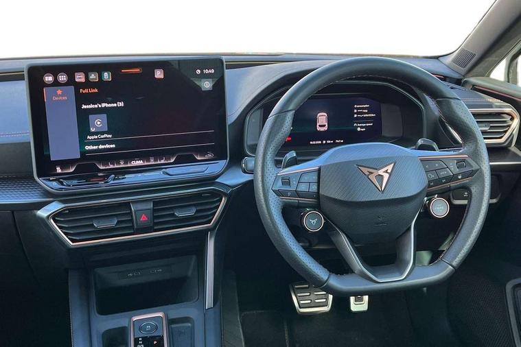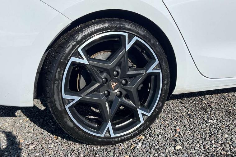 Adaptive cruise control with follow-to-stop and speed limiter, CUPRA mode drive profile selection with throttle response and gearshift mode, Digital cockpit, Driver alert system, Dynamic road sign display, E-call, Front and rear parking sensors, Front assist with forward collision warning braking reaction to vehicles, pedestrians and cyclists, Front cross traffic assist, Full link smartphone integration with Mirror Link, wireless Apple CarPlay and wired Google Android Auto, Lane assist, Lockable tailgate, Rear view camera, RPM, trip computer, outside temp gauge, instrument light brightness, low fuel warning light, lights on reminder, gearshift indicator, Service interval indicator, Start/stop system with regenerative braking, Wireless phone charger, 10 amp mode 2 charging cable, 16 amp mode 3 charging cable, Auxiliary input socket, Auto dimming rear view mirror, Body colour door handles, Body coloured bumpers, Cupra matrix LED ultra headlight with variable light distribution, high definition LED w/signature w/ceremony, Cupra sports bumpers, Dark tinted rear windows, Electric front/rear windows, Electrically adjustable, heated and folding door mirrors, High beam assist, High-resolution matrix beam plus digital projection, LED front fog lamps with cornering function, LED rear fog lamp, Rain sensing wipers, Rear diffuser with copper simulated exhaust pipes, Rear side wing doors, Rear wash/wipe, Separate daytime running light with automatic headlight control and coming home feature, Third brake light, Welcome light with logo projector in door mirrors, 12v power supply in centre console, 3 seat bench in 2nd row, 5 headrests, 60/40 split rear bench seat with armrest, Ambient lighting (glovebox, footwell, ambient lighting multicoloured), Black headlining, Cupra sports pedals, CUPRA Supersports, heated steering wheel with satellite buttons, Dinamica cloth upholstery, Electrically adjustable driver seat and lumbar support with memory function + manually adjustable passenger seat, Folding boot cover, Four x USB Type C ports (2 in front and 2 in rear), Front and rear reading lights X 4, Front centre armrest, Heated front seats, Height/reach adjust steering wheel, Illuminated interior front door sills, Interior wraparound lighting, ISOFIX points in outer rear seats with top tether anchorage points, Single front passenger seat, Storage pockets on rear of front seats, Sunvisors with illuminated mirror, Three zone climate control, Dynamic and comfort pack - Leon Cupra, Media system plus with 12.9" display + navigation pack - Leon Cupra, 3 point seatbelts on all rear seats, ABS, Brake control system - ESC and brake booster, Child proof door locks, Cupra black brake calipers, Disc brakes in front, Driver and front passenger airbags with front passenger airbag de-activation, front side and curtain airbags, Electronic parking brake, Hill hold control, Rear disc brakes, Seat belt reminder for front and rear seats, Tiredness recognition system, Tyre pressure monitoring system, Anti theft alarm system with interior monitoring in cab, backup horn and towing protection, KESSY Advanced - Keyless start, keyless entry, Locking wheel bolts, Chrome and copper interior detailing, 19" Polar machined sport black and silver alloy wheel with 91Y tyres, Breakdown kit, Tool kit,