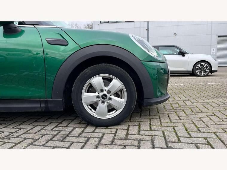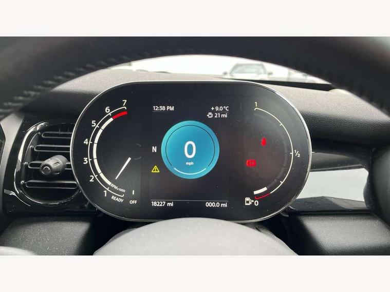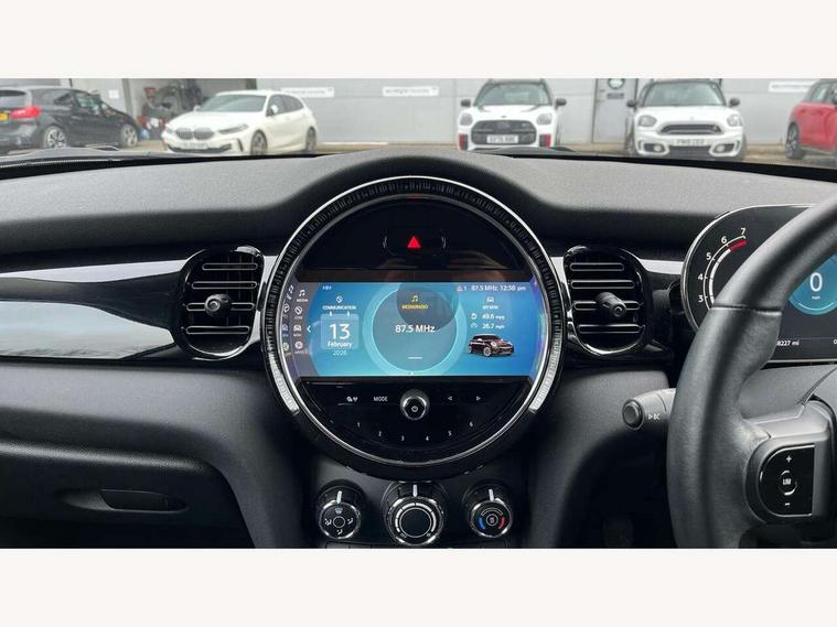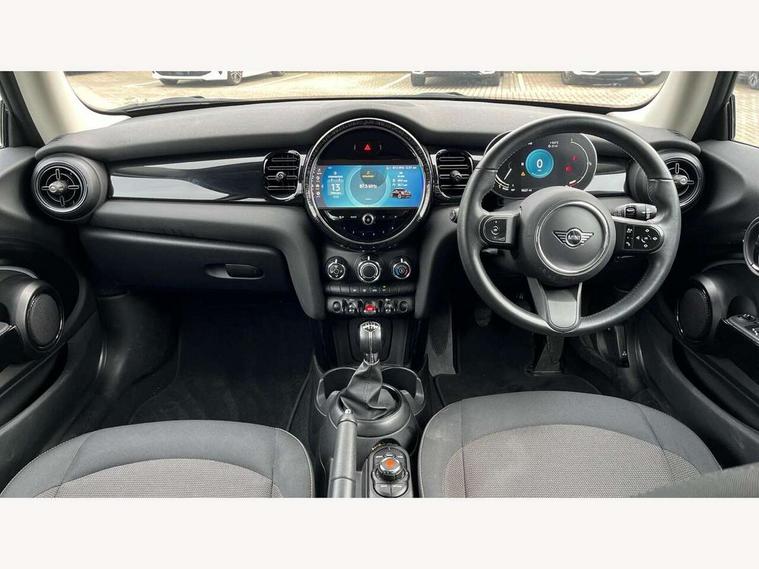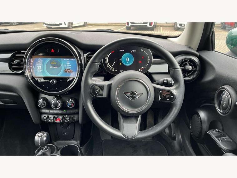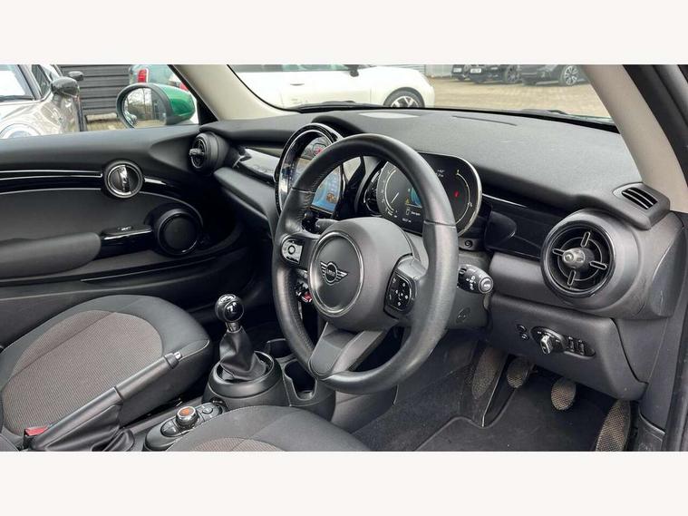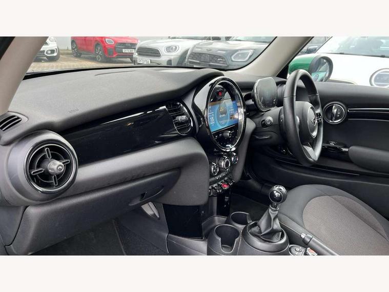 Automatic start/stop function with brake energy recuperation, Compatible mobile phone bluetooth with audio streaming, Digital instrument cluster, Electro-mechanical speed dependant steering assistance, Mini E-call, MINI TeleServices, On board computer, Service interval indicator, 6 Speed manual transmission including gear change indicator display, Double Vanos system, Fully variable valve control, High precision injection, Performance Control, 8.8" touchscreen with LED ring, FM tuner and DAB digital radio, Automatic headlight activation switch, Body colour fuel filler cap, Chrome border high gloss black slats radiator grille, Dynamic brake lights, Electric front windows, Exhaust tailpipe on left with chrome finisher, Heated rear window, Heated windscreen washer jets, LED headlight with closed ring and daytime driving lights, Metal door sill strips with MINI imprint, Model logo Cooper on right of tailgate, Rain sensor window wipers, Rear fog lights, Rear LED lights with union jack design, Rear window wiper, Side scuttle panel with integrated indicator, Sun/heat protection glass, White indicator lenses, 12V Accessory socket in centre console, 4 lashing eyes in luggage compartment, 60/40 split folding rear seat, Carbon black colour line - Knee roll and door armrest, Chrome interior highlights, Cupholders, Front and rear head restraints, Front and rear isofix with front passenger airbag deactivation, Glove compartment, Height and length steering column adjustment, Interior lighting with 12 basic colours selectable via toggle switch in roof, Leatherette gearshift lever and handbrake gaiters, LED reading lights, vanity mirror lights, front foot well light and spotlight on front seats, Manual air conditioning, Mechanical seat adjustment - forward/back & backrest for front seats and driver seat height adjust, Multifunction steering wheel, Passenger seat height adjuster, Satellite grey headlining including grab handles and clothes hooks, Sport leather steering wheel with speed limiter and audio/communication controls, Storage compartments in doors, Sunvisors with vanity mirrors, Velour floor mats, 3 point seatbelts on all four seats, 6 Airbags - front, side, head and seat belt tensioners, Anti-lock braking system (ABS), DSC - Dynamic Stability Control, Front and rear disc brakes, Single tone fanfare horn, Tyre pressure monitoring system, Alarm system with tilt sensor, monitoring doors, bonnet interior and tailgate, Electronic vehicle immobiliser, Start/stop toggle with keyless go, Piano black interior trim, Tool kit, Tyre repair kit,