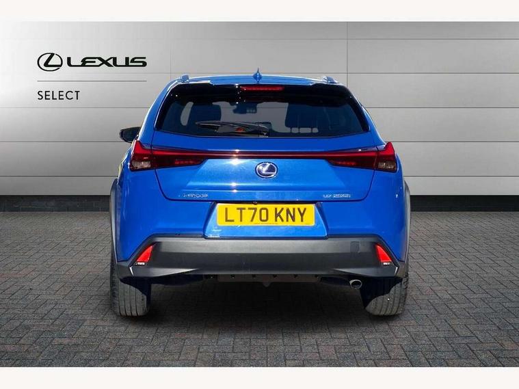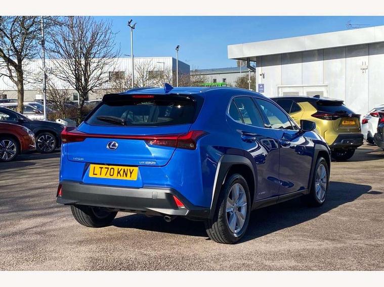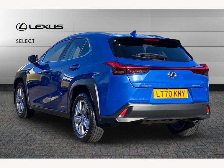 4 driving modes EV/Eco/Normal/Sport, 7" Lexus media display, 7" TFT instrument cluster, Analogue clock with GPS function, Apple car play/Android Auto, Compatible mobile phone bluetooth with audio streaming, E-call, Electric power steering (EPS) with speed sensitive features, Lane change flasher function, Lexus link connected services, Lexus safety systems + includes dynamic radar cruise control, pre collision system day and night, lane tracing assist, road sign assist, Push button start, Remote touch interface, Reversing camera with back guide lines, Trip computer, Vehicle Dynamics Integrated Management (VDIM), Vehicle Stability Control (VSC), 2 front USB and 2 rear USB charging points, 6 speakers, AM/FM and DAB radio, AUX socket with VTR compatibility, CD player, Acoustic windscreen, Aero stabilising arch mouldings, Aero stabilising rear lights, Aero ventilated wheels, Aluminium roof rails, Bi-LED (low and high beam) headlights with Auto High Beam (AHB), Body adhesive, laser screw welding and laser brazed roof structure, Electric adjustable/heated door mirrors, Front and rear one touch power windows, with anti-jam protection, Headlight cleaners, LED daytime running lights, LED front and rear fog lights, LED tail lights, Light green UV glass, Rain sensor windscreen wipers, Rear wiper, Shark fin roof aerial, Single hidden exhaust pipe, Towing preparation, 12V accessory port centre console and luggage compartment, 2 cup holders in the front and rear centre console, 2 x folding shopping bag hooks in boot, 2 x sun visors with vanity mirror and lamp, 4 x tie down hooks in the boot, 5 headrests, 6 way driver and passenger manually adjustable front seats, 60/40 split folding rear seat, Card holder installed in driver and passengers sun visors, Centre armrest with storage, Driver and passenger door pocket, Dual zone electronic climate control + Nano-E humidity sensor, Glovebox, Leather gear lever, Leather steering wheel, LED interior illumination, Map pockets in the rear of passenger's front seat, Premium fabric upholstery, Rear air vents with 2 USB chargers, Rear armrest with 2 cupholders, Storage tray under audio panel, Textile carpet mats, Tilt/reach adjustable steering column, Under deck storage, Under desk side storage, 2 x Isofix child rear seat restraints, 3x3 point rear seatbelts, Anti-lock braking system (ABS), BAS (Brake Assist System), Driver and front passenger 2 stage airbag, Driver and front passenger knee airbag, Driver/front passenger side airbags, EBD - Electronic brakeforce distribution, ECB (Electronically Controlled Brake System), Electric parking brake, Front adjustable seatbelt anchor points, Front and rear curtain shield airbags, Front outer seatbelt+pre-tensioners, force limiter+tension reduction: 3-point with active safety link to PCS, Hill start assist control (HAC), Passenger airbag cut-off device, Rear outer seatbelt+pre-tensioners, force limiter+tension reduction: 3-point with active safety link to PCS, Centre belt w/o pre tensioner+force limiter, Secondary Collision Brake (SCB), TRC (Traction Control), Tyre pressure warning, 2 x remote key fobs, Anti theft system : Alarm instruction sensor, glass breakage sensor and engine immobiliser, Locking wheel nuts, Remote central door locking, Speed sensitive auto door locking, Two motion door lock with double lock, VIN Window etching, 17" Alloy wheels, Tyre repair kit,