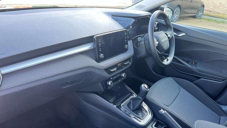 8" Digital instrument display, Advanced driver attention and drowsiness monitor, Bluetooth connection, Electromechanical power steering, Exterior temperature gauge, Service interval indicator, Traffic sign recognition, Wireless SmartLink for Apple CarPlay and Android Auto, 6 Speakers (4 in front and 2 in rear), 8.25" Skoda infotainment touchscreen display, Auxiliary socket for external MP3 player, DAB digital radio reception, Auto dimming rear view mirror, Body colour door mirrors, Body coloured bumpers, Door mirror integrated indicators, Front and rear electric windows, Front window wiper intermittent control, Headlight range control - Automatic, Ice scraper in fuel cap, LED 3rd brake light, LED daytime running lights with coming and leaving home feature, LED rear lights, Rear LED fog light, Rear side wing doors, Rear window wiper with washing nozzles, Roof mounted spoiler, SKODA tailgate lettering in chrome, Unique dark chrome design logo on alloy wheels, 2 reading lights in front and 2 reading lights in rear, 3 rear headrests, Backrest split and folding, Central console with removable cup holder and storage box, Chrome handbrake release button, Dual zone air conditioning with climatronic electronic control, Fabric upholstery, Front centre armrest, Gearshift knob/handle in leather, Grain satin black interior door handles, Hand brake lever handle in leather, Height adjustable front headrests, Height adjustable front seats, Height adjustable steering wheel, ISOFIX and TopTether anchorage points to the outer rear seats, ISOFIX and TopTether on the front passenger seat, Luggage compartment lighting, Manually adjustable lumbar support in front seats, Pollen filter, Rear seat bench unsplit, Single front passenger seat, Skoda lettering on steering wheel, Storm grey headlining, Sun visors with mirror and airbag label on passenger side, Textile floor mats, Ticket holder, Umbrella in drivers door, 3-point height adjustable front seats belts with pretensioner and force limiter, Automatic warning lights in case of crash, Driver and passengers airbag with switch off function, e-Call+, ESC including ABS, MSR, ASR, EDS, HBA and XDS, Front and rear seat belt warning, FRONT ASSIST (AEB City and AEB Inter Urban), Front side airbags, Head airbags, One tone horn, Pedestrian protection, Three rear 3-points safety seat belts with pretensioner and force limiter including stop function for outer rear seat belts, Tyre pressure monitoring system, Anti-theft alarm system including immobiliser, interior monitoring, backup horn, and towing protection, Central locking with radio remote control, interior controls, SAFE function and 2 foldable keys, Black painted air vents, Grain satin black central console cover, Metallic grey upper decorative trim, Satin black door and side trim panel in front, Textile Kota grey lower decorative inserts, Anti-theft wheel bolts protection, Super-low rolling resistance tyres,