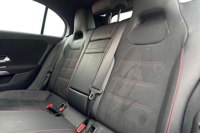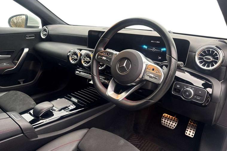 10.25" Digital instrument cluster display screen, 180 degree rear view camera with parking guidelines, Active lane keep assist, Active park assist with parktronic system including front and rear parking sensors, Attention assist, Brake pad wear indicator warning light, Direct steering, DYNAMIC SELECT with a choice of driving modes (ECO, Comfort, Sport and Individual), ECO start/stop function, Fluid level warning indicator for fuel, oil, coolant and washer fluid, Hard-disk navigation, Hey Mercedes Voice activation, Lamp failure indicator, Mercedes me connect including emergency call system, accident recovery, breakdown management and maintenance, Outside temperature gauge, Radio aerial integrated into roof spoiler, Service indicator (ASSYST), Speed sensitive power steering, Trip computer, Lowered comfort suspension, DAB Digital radio, Dual bluetooth interface, 2 USB ports (type C), MBUX multimedia system with DAB digital radio and touchpad including satellite navigation, Mid-range sound system, 4 Electric Front and Rear windows, Active aerodynamics with AIRPANEL in the front apron, Adaptive brake lights, AMG front, rear apron and side skirts, Blue tinted glass, Body colour bumpers, Body colour door handles, Body colour side skirt, Body coloured door mirrors, Chrome beltline trim, Diamond radiator grille with chrome pins and silver louvre + chrome insert, Electric adjustable and heated door mirrors with integrated LED side indicators, Exhaust system - Twin trapezoidal tailpipes in polished stainless steel, Headlamp assist automatic headlamp activation, Heated glass rear windscreen + timer control, LED high performance headlamps with integrated LED daytime running lights, LED tail lamp, LED third brake light, Privacy glass, Rain sensor windscreen wipers, Rear fog lights, Rear wiper, 12V socket, 3 Spoke flat bottom leather multi function steering wheel with perforated leather in grip area, 40:20:40 split folding rear seats, Air vents surround and cruciform nozzle in silver chrome, AMG floor mats with red stitching, Artico man-made leather/Microfibre Dinamica upholstery with red contrast stitching, Auto Mercedes-Benz child seat recognition sensor, Black roof lining, Brushed stainless steel sports pedals with rubber studs, Controller on centre console with chrome surround, Cup holder and stowage compartment lighting, Freight packaging without tie-down hooks, Front centre armrest with storage compartment, Front door sills with Mercedes Benz lettering, Front footwell lights, Front reading lamps in left and right console downlighter, Front seat backs luggage nets, Front seat cushion length adjustment, Front signal exit lamp, Front vanity lights, Gearshift paddles on steering wheel, Handle recess/closing light, Heated front seats, Height/reach adjustable steering column, Illuminated door sills, Illuminated glove compartment stowage, Interior lighting - 64 colour Ambient lighting, ISOFIX Child seat top tethers and anchor fixings, Luggage compartment cover, Manual height adjustable front seats, Oddments tray lighting, Rear armrest, Rear head restraints, Rear Reading Lamps, Seat occupancy sensor for front passenger seat, Spectacles compartment for driver, Sports seats with integrated headrests, Storage compartment under load area floor, Stowage compartment in centre console with retractable cover, Sunvisors with illuminated vanity mirrors, Touchpad, Touchpad illumination, Twin front cupholders, Two zone thermotronic luxury automatic climate control, Light and sight pack - A Class, Mirror package - A Class, Seat comfort pack - A Class, 3 rear 3 point seatbelts, ABS with Brake Assist, Active bonnet, Adaptive brake assist with hold function and hill start assist, Black seatbelts, Childproof locks manually operated for rear doors and electrically operated for rear power windows, Crash responsive emergency lighting, Driver and passenger head and side airbags, Drivers knee airbag, Dual stage driver/passenger airbags, Electronic parking brake, ESP curve dynamic assist, ESP with ASR, Front and rear seatbelt reminder, Front brake callipers with Mercedes Benz lettering, Tyre pressure monitoring system, Warning triangle and first aid kit, Window airbags, Alarm system/interior protection/immobiliser, Keyless entry lock/unlock, Remote central locking and crash sensor with emergency opening function, 18" AMG 5 twin spoke light alloy wheels in titanium grey with highsheen finish, Summer tyres, Tirefit sealant kit,