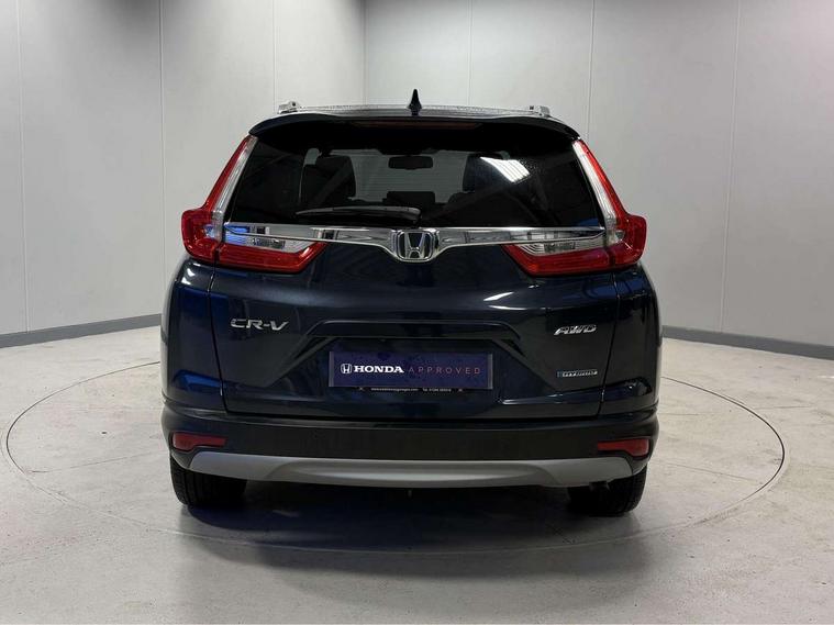 Adaptive cruise control, Agile handling assist, BLIS (Blind Spot Information System) with dual power heated blind spot mirrors, Bluetooth hands free telephone connection, Economy mode, Electric power steering, Emergency stop signalling system, Forward collision warning, Front and rear parking sensors, Hands free tailgate, Head up Display, Honda CONNECT with GARMIN Navigation + 7" touchscreen, DAB radio, Apple CarPlay, Android Auto, Aha app integration and internet browsing, Intelligent multi info display, Lane departure warning system, Lane keep assist system, Low speed following, Rear view camera, Road departure mitigation, Speed limiter, Traffic sign recognition, Vehicle stability assist, 2 USB sockets in rear, 2x USB sockets in front, 8 Speakers, DAB Digital radio, Steering wheel mounted controls, Subwoofer, Aspheric door mirrors, Auto dimming rear view mirror, Automatic headlights with dusk sensor, Body colour bumpers, Body colour door handles, Cornering light, Door mirrors tilt when reversing, Electric front windows/one touch facility, Electric rear windows + one touch facility, Electrically adjustable and heated door mirrors, Electrically retractable door mirrors, Front windscreen de-icer, High beam assist, LED daytime running lights, LED front fog lights, LED Headlights, LED rear lights, Panoramic opening glass sunroof, Rain sensor, Rear privacy glass, Rear wiper, Roof rails, Shark fin roof aerial, Welcome home function, 60/40 split folding rear seat, 8 way electrically adjustable drivers seat + mirror memory, Accessory sockets, Ambient interior lighting, Ambient light in roof, AWD emblem rear, Cargo hooks, Courtesy lights, Driver's electric adjustable lumbar support, Driver/passenger front seatback pockets, Driver/passenger sunvisors with illuminated vanity mirrors, Dual zone automatic climate control, Electric lumbar adjustment on passenger's seat, Footwell ambient lighting, Front centre armrest, Front map lights, Front passenger seat height adjust, Heated front seats, Heated rear seats, Heated steering wheel, Hybrid emblem, Illuminated glovebox, Instrument panel with garnish wood film, Isofix child seat preparation, Leather steering wheel, Leather upholstery, Paddle shift controls, Rear air vents, Rear centre armrest, Rear headrests, Rear reading lights, Silver interior door handles, Sunglasses holder with mirror, Tilt/telescopic adjustable steering wheel, Tonneau cover, Trunk light, 5 x 3 point seatbelts, ABS/EBD, Anti-whiplash front headrests, Brake assist function, Collision mitigation braking system, Deflation detection system, Driver airbag, Electronic parking brake with auto hold, Front and rear curtain airbags, Front side airbags, Hill start assist, Passenger airbag deactivate switch, Honda super locks, Immobiliser, Remote keyless entry, Security alarm, Ultrasonic sensor and tilt sensor, Tyre repair kit,