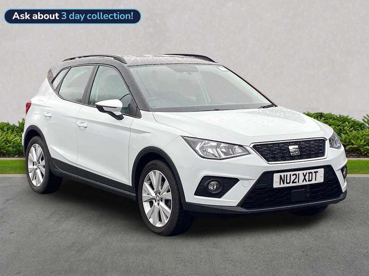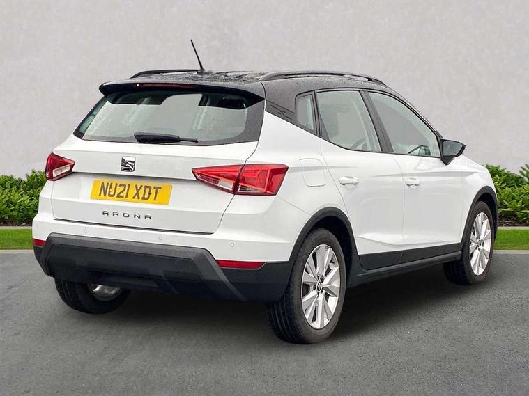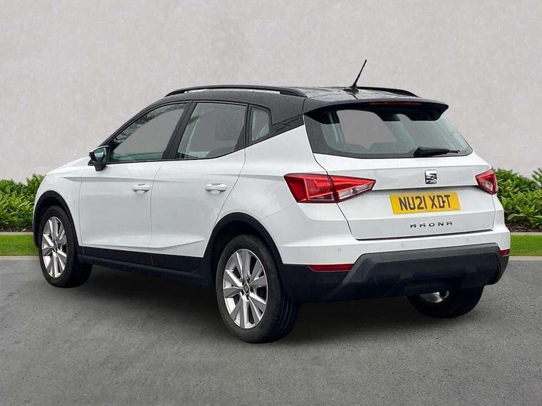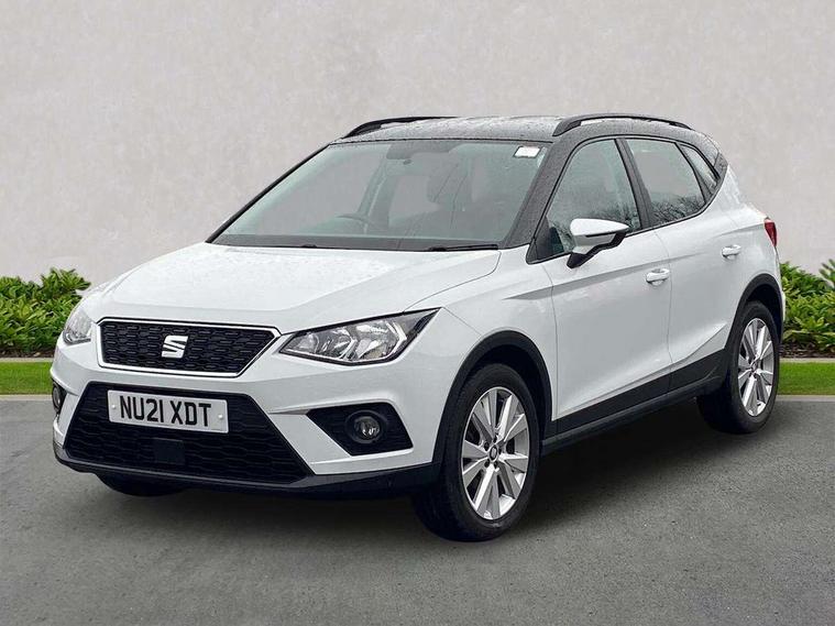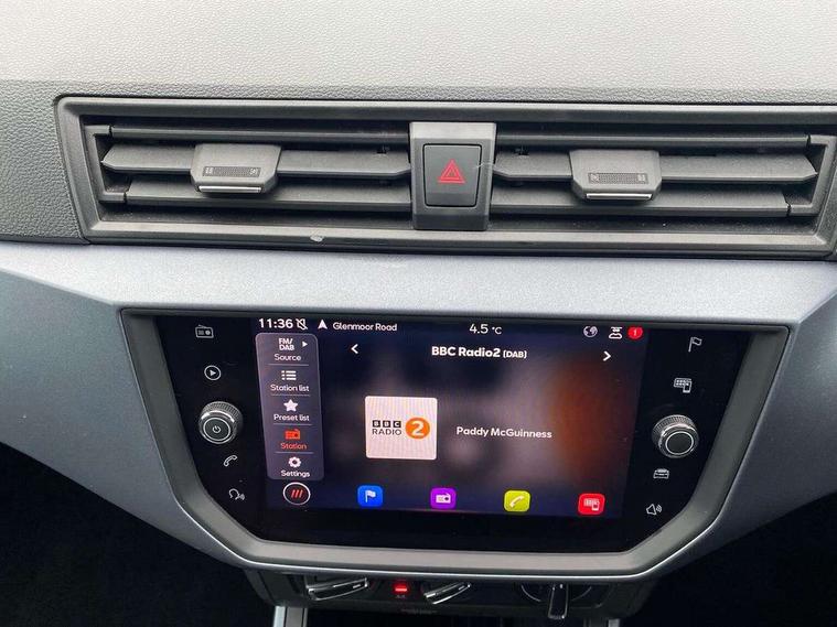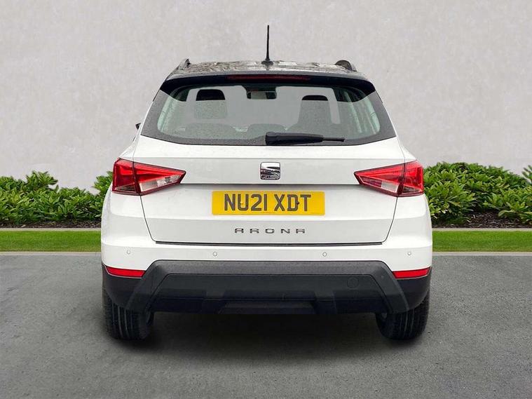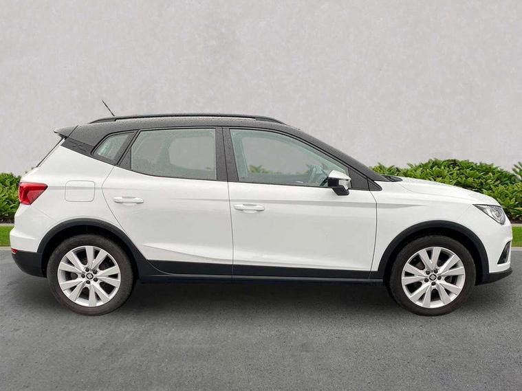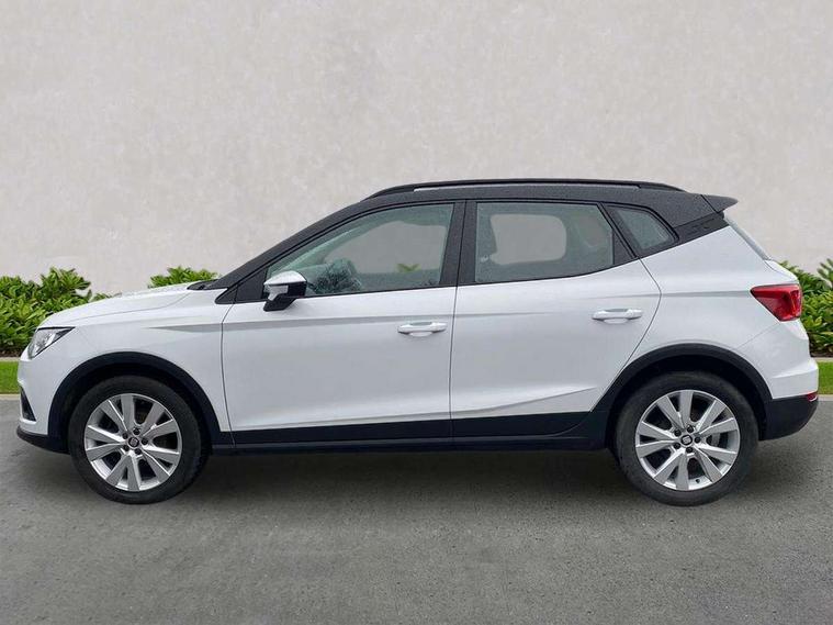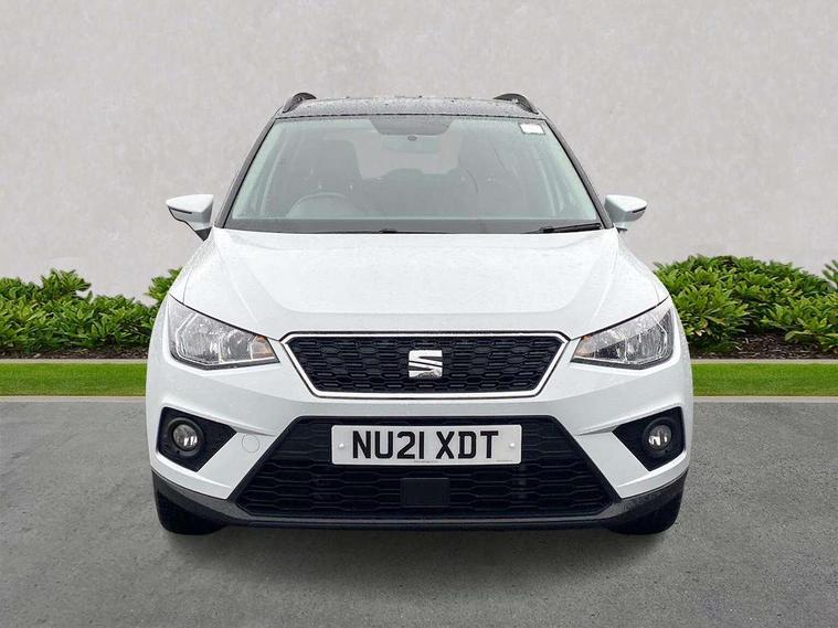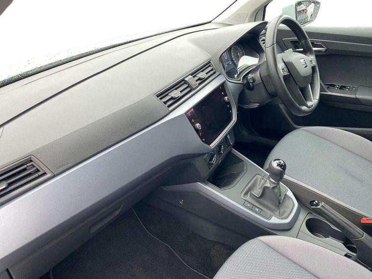 'Lights On' Reminder warning buzzer, Cruise control and speed limiter, Digital clock, Electric speed sensitive power steering, Full Link Smartphone Integration with Mirror Link, Apple Car Play, Google Android Auto with USB Type C cable for Apple and Android compatibility, Low fuel warning light, Outside temperature display, Rear parking sensor, RPM counter, Seat connect with safety, service, remote and online, Trip computer, Comfort suspension, 6 speakers, Bluetooth interface for hands free and audio streaming, DAB digital radio and AM/FM radio, Steering wheel mounted audio controls, Anti theft roof antenna, Automatic activation of hazard warning lights, Automatic headlights, Black roof rails, Black window trims, Body coloured bumpers, Body coloured door handle inserts, Body coloured door mirrors, Dimming rear view mirror, Electric adjustable door mirrors, Electric front/rear windows with one touch/auto up/down, Electric headlight adjustment, Front fog lights with cornering function and rear fog light, Halogen tailights, Hidden exhaust pipe, LED daytime running lights, LED licence plate lighting, Protective side mouldings, Rear window wash/wipe, Twin halogen headlights, Visible VIN plate, Windshield wiper with intermittent control and potentiometer, 2 cupholders, 60/40 split folding rear seat, Air conditioning, Cloth upholstery, Double boot floor, Driver sunvisor with covered mirror + card holder, Dust/pollen filter, Front courtesy light with front reading lights, Gear shift indicator, Grey interior roof, Height adjustable front seats, Height/reach adjustable steering column, Illuminated boot, Instrument lighting with brightness control, ISOFIX points in outer rear seats with top tether anchorage points, Leather steering wheel/gear knob/handbrake, Passenger sunvisor with vanity mirror, Two front and three rear height adjustable headrests, Connectivity pack plus - Arona, Interior chrome pack - Arona, 3 point seatbelts on all rear seats, ABS, Active front headrests, Child locks on rear doors, Driver and front passenger airbags with front passenger airbag de activation, front side and curtain airbags, Electronic stability control, Emergency Brake Assist (EBA) and front assist, Front and rear seatbelt reminder, Hill hold control, Multi-Collision braking, Tiredness recognition system, Traction control, Tyre pressure monitoring system, 2 folding remote keys with window open/close function, Electronic engine immobiliser, Locking wheel bolts, Remote central locking + deadlocks, Interior chrome line trim, Plastic grey dashboard, 17" Dynamic alloy wheels,