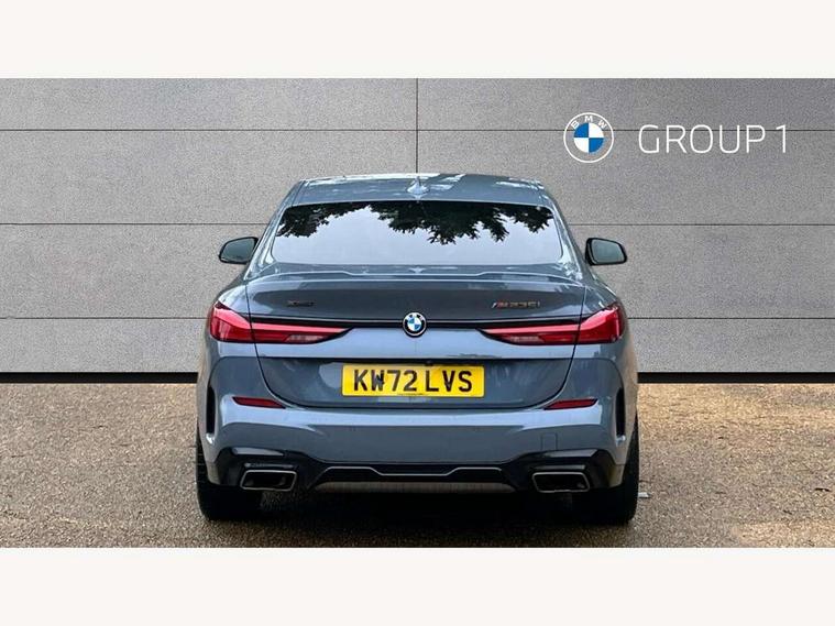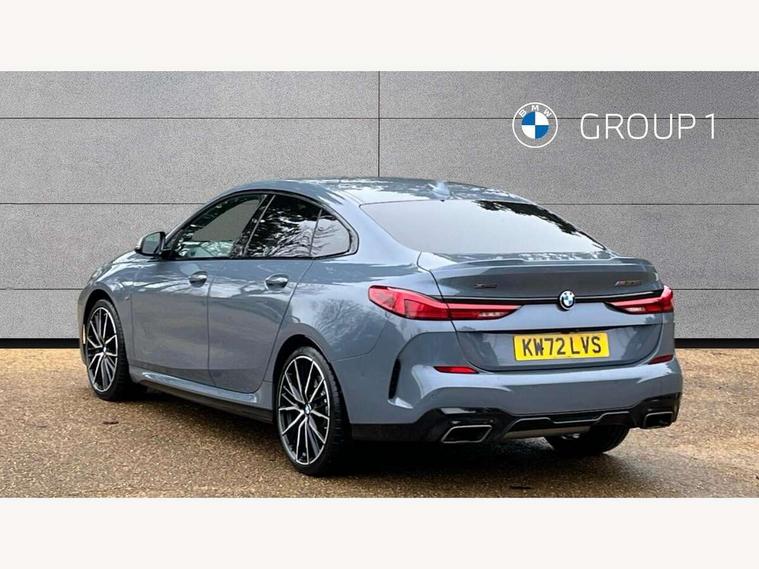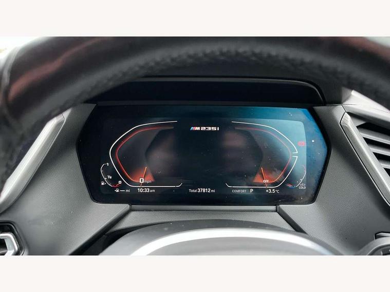 Active guard plus, Attentiveness assist, Auto start-stop, BMW ConnectedDrive online services, BMW Intelligent Personal Assistant, BMW Live Cockpit Professional with 10.25" high resolution instrument and control display, BMW Online services, BMW operating system with 7.0 mid interface, BMW Teleservices, Check Control warning system for monitoring of lights and door/luggage compartment open warning, Cruise control with braking function, Electro hydraulically controlled multi plate clutch in rear axle, Energy efficient operating strategy, iDrive controller with 7 short cut favourite buttons on centre console, Integrated navigation data with map data via USB +features such as 3D landmarks and micro city models, Integrated owners handbook, Intelligent voice assistant, Lane departure warning system, M Sport steering with M235i xDrive M performance specific settings, On board computer - average speed+fuel consumption, service interval, clock/date, odometer/trip meter, outside temperature display and ice warning, Optimum shift indicator, Personal Profile, Pull away assistant, Speed limiting function, 2 balance shafts, 8 speed sport automatic transmission with electronic selector lever, auto P function, coasting idle, race track, sport, gearchange display manual mode, Aluminium lightweight construction, BMW TwinPower twin-scroll Turbo four-cylinder petrol engine, Double VANOS, Drive performance control with ECO PRO comfort + sport mode, Electronic differential lock, Engine cover with M performance designation, High precision injection, Larger fuel tank capacity (50 litres), Launch control, M235i specific heavily de-throttled engine intake air guide, M235i specific high-performance cooling package, M235i specific larger turbocharger with integrated divert-air valve, Performance Control, Petrol Particulate Filter, Power transmission of front wheel drive on the rear axle via angle transmission on the front axle differential and two part cardan shaft, VALVETRONIC engine management, Variable, stepless and infinitely adjustable distribution of drive torque between the front and rear axles, xDrive intelligent all wheel drive with M235i specific reinforced components, 2x USB Type C ports (for charging and data transfer), 4G LTE Connectivity with hard wied 4G network sim card, DAB digital radio, MP3 players and RDS double tuner, Auto wipers, Automatically dimming rear view mirror, Body colour door handles, Direction indicator side lights integrated exterior mirrors, Electric windows - front and rear, with open/close fingertip control and trap release, Exterior mirrors - electrically folding with anti-dazzle, Fading support, Follow me home headlights, Front and rear bumper system with replaceable deformation elements, Front door sill finishers in black plastic with M235i designation, Heated, electrically adjustable exterior mirror aspheric on driver side, convex on passenger side, High gloss black B pillar finish, High gloss shadow line exterior trim, High level third brake light, LED daytime running lights, Lightweight engineering, M Performance exhaust system with valve control and minimised exhaust back pressure, M rear spoiler, Model designation on right side of tailgate includes xDrive designation onleft handside for M235i xDrive, Preparation for high beam assistant, Rain sensor with automatic headlight activation, Rear boot, Rear fog lights, Rear side wing doors, Reinforced crank drive, new pistons and adapted con rods, Reversing light in rear light cluster, Welcome lighting, 12V power socket in centre console, 2 cupholders in front centre console, 3 rear seat head restraints, 3 rear seats, 3 spoke M sports design leather steering wheel finished in nappa leather with specific M badge, Additional under floor storage in luggage compartment, Anthracite finished floor mats with contrasting surround, Anthracite headlining, Automatic two zone climate control air conditioning, Child seat ISOFIX attachment for two outer rear seats and front passenger seat with anchorage points, Conditioned based service, Driver and front passenger seat heating, Front and rear door pockets including bottle trays, Front and rear side armrests integrated into door trim, Front armrest foldable with integrated storage compartment, Front centre interior light over interior mirror and rear centre automatic interior light when door is opened/ignition switched off or via remote key, Front head restraints, Front M Sport seats, Front passenger seat, Glove compartment, Glovebox with light, Luggage compartment lighting, Manually adjustment steering wheel column, Multi-function controls for steering wheel, Shift-by-wire selector shift, Steering wheel paddles, Sun visors with vanity mirrors and insert tab, Through loading system with 40/20/40 split folding rear seat, Two lashing eyes, Additional interior lighting pack - 2 Series Gran Coupe, Connected pack professional - 2 Series Gran Coupe, Extended storage pack - 2 Series Gran Coupe, M Sport exterior styling aerodynamics pack - 2 Series Gran Coupe 235i, 2 tone horn, Airbag - Front driver and passenger, front and rear head, front side, curtain head protection, manual deactivation of front passenger airbag possible, Anti lock braking system (ABS) with cornering brake control, BMW emergency call, Brake drying, Braking readiness, City braking function, Crash sensor activating of airbags, Unlocking doors, hazard warning lights, interior light, safety battery terminal, Dynamic stability control + (DSC+), Dynamic Traction Control - DTC, Electrically operated hand brake, Integrated torsen mechanical limited slip differential on front axle, M Sport braking system in blue high gloss + blue painted brake calipers with M designation, M sport seatbelt, Rear brake discs, Rear child proof door locks, Seat belt security check for driver and front passenger, Seatbelt warning, Side impact protection, Three point seat belts on all seats including front belt stopper, pyrotechnic belt tensioners and belt forc