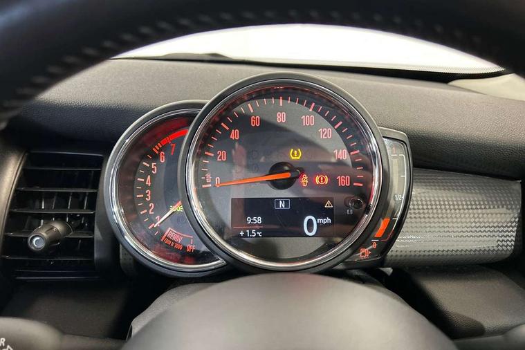 Drive away door locking, Locking wheel bolts, Remote central locking/doors+fuel cap+tailgate, Second remote key, Thatcham category 1 alarm + immobiliser, Auxiliary input socket, DAB digital radio module, 3 point seatbelts, 3x3 point rear seatbelts, ABS/EBD, ASC+T, CBC - (Cornering brake control), Crash Sensor - activates hazard/interior lighting + unlocks doors, Driver and passenger airbags, Driver/front passenger side airbags, DSC - Dynamic Stability Control, Fuel cut off safety device, Head airbags, Hill start assist, Passenger airbag deactivation system, Seatbelt pretensioners, Tyre pressure warning, Ventilated front disc brakes, 2 speed wipers+intermittent wipe, Anti dazzle mirror, Anti trapping/one touch open close front windows, Body coloured bumpers, Chrome bezels around rear lights and headlights, Chrome door handles, Chrome exhaust tailpipe, Chrome grille surround, Chrome plated trim on bottom edge of window, Chrome strip on lower grille, Electric front windows, Electric rear windows, Electrically adjustable door mirrors, Flared wheel arches, Follow me home headlights, Green tinted heat insulating glass, Heated door mirrors/heated windscreen washers, Heated rear window with auto timer, High gloss black tailgate, LED fog lights, LED rear lights, Rear wiper, Side scuttles, White indicator lights, 2 rear head restraints, 4 boot load lashing points, 4 way manually adjustable passenger seat with height, reach, tilt, backrest and headrest, 6-way manually adjustable driver's seat, Active carbon filter, Adjustable front seats backrest, Air recirculation system, Auxiliary socket in centre console storage compartment, Centre console storage, Driver's seat height adjuster, Driver/passenger sunvisors, Easy entry seats, Front and rear cupholders, Front head restraints, Front passenger grab handle, Gear/selector and handbrake in artificial leather, Internal chrome door handles, Isofix child seat preparation, Luggage compartment lighting, Multifunction steering wheel, Reach + rake adjustable steering column, Rear grab handles, Rear storage trays, Split folding rear seats, Storage compartments in doors, Toolkit in luggage compartment, Acoustic seat-belt warning, Basic bluetooth function with USB audio, Brake fluid level warning light, Brake pad wear indicator warning light, DTC - Dynamic traction control, Exterior temperature gauge, Intelligent emergency call, MINI TeleServices, Oil level indicator, On board computer, Push button starter, Service interval indicator, Servotronic PAS, Electronic differential lock,