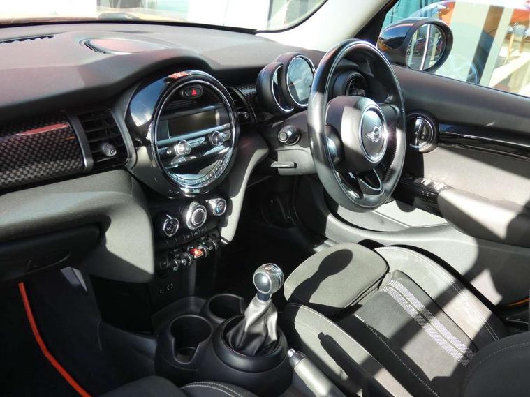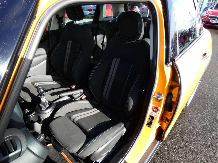 Acoustic seat-belt warning, Brake fluid level warning light, Brake pad wear indicator warning light, DTC - Dynamic traction control, Exterior temperature gauge, Intelligent emergency call, MINI TeleServices, Oil level indicator, On board computer, Push button starter, Service interval indicator, Servotronic PAS, Diesel particulate filter, Electronic differential lock, Performance Control, Auxiliary input socket, DAB digital radio module, 2 speed wipers+intermittent wipe, Anti dazzle mirror, Anti trapping/one touch open close front windows, Body colour scoop integrated into engine- compartment lid, Body coloured bumpers, Chrome bezels around rear lights and headlights, Chrome door handles, Chrome plated fuel cap, Chrome plated trim on bottom edge of window, Chrome strip on lower grille, Electric front windows, Electrically adjustable door mirrors, Flared wheel arches, Follow me home headlights, Green tinted heat insulating glass, Heated door mirrors/heated windscreen washers, Heated rear window with auto timer, High gloss black tailgate, Honeycomb radiator grille, Metal look door sill finishers, Rear wiper, Twin chromed exhaust pipes, White indicator lights, 2 rear head restraints, 4 boot load lashing points, 4 way manually adjustable passenger seat with height, reach, tilt, backrest and headrest, 6-way manually adjustable driver's seat, Active carbon filter, Air recirculation system, Auxiliary socket in centre console storage compartment, Centre console storage, Driver's seat height adjuster, Driver/passenger sunvisors, Front and rear cupholders, Front head restraints, Front interior light, Front passenger grab handle, Front seat backrest storage nets, Front sports seats, Gear/selector and handbrake in artificial leather, Internal chrome door handles, Isofix child seat preparation, Luggage compartment lighting, Reach + rake adjustable steering column, Rear grab handles, Rear storage trays, Split folding rear seats, Storage compartments in doors, Toolkit in luggage compartment, Vanity mirrors, 3 point seatbelts, ABS/EBD, ASC+T, Cornering brake control (CBC), Crash Sensor - activates hazard/interior lighting + unlocks doors, Driver and passenger airbags, Driver/front passenger side airbags, DSC - Dynamic Stability Control, Fuel cut off safety device, Head airbags, Hill start assist, Manual passenger airbag deactivation function, Seatbelt pretensioners, Tyre pressure warning, Ventilated front disc brakes, Drive away door locking, Locking wheel bolts, Remote central locking/doors+fuel cap+tailgate, Second remote key, Thatcham category 1 alarm + immobiliser,