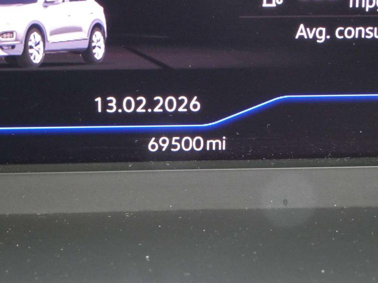 2 USB connection charging sockets, Active Info Display, 10.3" high resolution TFT dash display screen with customised information, Adaptive cruise control, App-Connect, Automatic start/stop system, Bluetooth telephone and audio connection for compatible devices, Car information display, Car-Net Security and Service, Discover navigation, 8" touch screen navigation/infotainment system with Car-Net, European map, CD/radio, 2D/3D map and speed limiter, Driver alert system with audible and visual fatigue detection system, Driver profile selection, Front assist, radar sensor controlled distance monitor, city emergency braking + predictive pedestrian protection, Lane assist, Multifunction computer with visual gear change recommendation for fuel consumption, Power assisted speed sensitive steering, Service interval indicator, Think blue trainer driver tips and journey analysis, Voice activation, Warning sound and light for doors and tailgate open, Warning sound and light for front seatbelts unfastened, Battery regeneration during braking, Bluetooth - Simultaneous pairing of 2 compatible mobile devices, DAB Digital radio, Dynamic navigation based on TMC+, Multi device interface (MDI) with USB connection, Music playback - MP3, WMA and AAC files, Premium USB cable in choice of either Apple or Android smartphone compatibility, SD card slot, SMS functionality - read, compose and send SMS messages using touch-screen display, Three route options - Fast, Short, Eco, Title and cover art display, Auto dimming interior rear view mirror, Automatic hazard lights activation under emergency braking, Black grained lower door protectors, Black grained wheel arches, Body colour bumpers with silver metallic underbody fascia, Body colour door handles, Chrome effect left and right trapezoid exhaust tailpipe fascia surround, Chrome trim on upper and lower radiator grille, Door mirror integrated indicators, Dusk sensor, Electrically foldable, adjustable and heated door mirrors with puddle lights and reverse activated kerb-view adjustment on passenger's door mirror, Front and rear electric windows, Front fog lights with static cornering function, Front windscreen wiper with intermittent wipe and 4 position delay, Fully galvanised body, Heated rear window, High level 3rd brake light, LED darkened rear light clusters, LED dipped and main beam headlights with automatic range adjustment including signature LED daytime running lights, LED rear number plate lights, Manual coming/automatic leaving home lighting function, Rain sensor, Rear tinted glass from B-pillar backwards approx 65% tinted, Rear windscreen washer and wiper with interval delay, 12V socket in centre console storage area, 2 LED front and rear reading lights, 3 rear head restraints, 4 load lashing points in luggage compartment, Ambient lighting in front footwell and light strips below trim in front doors, Climate control - 2 zone electronic air conditioning with automatic air recirculation and allergy filter, Drawer under drivers seat, Front centre armrest with storage compartment, longitudinal and height adjustable and two rear air vents, Front cupholders x 2, Front footwell illumination, Front seat back storage pockets, Glovebox, Height adjustable front seats, Height/reach adjust steering wheel, Illuminated vanity mirrors, Instrument lighting, white adjustable panel illumination, Interior light delay, Isofix easy fit child seat preparation for 2 outer rear seats, Load through provision with single cup holder when folded down, Luggage compartment cover, removable, Luggage compartment lighting, Split folding rear seat backrests with centre armrest, Storage compartment in left and right luggage area, Storage compartment in rear doors, Storage compartments in driver and front passenger doors, 3 rear three point seatbelts, ABS, Driver and front passenger safety-optimised head restraints, Electronic parking brake with auto hold, ESC with EDL, ASR, EDTC and trailer stabilisation function, Front and rear curtain airbags, driver and front passenger airbags with passenger deactivation switch and front side impact airbags, Rigid safety cell with front and rear crumple zones, Three point height adjust front seatbelts + pretensioners, Tyre pressure loss indicator, Ventilated front and rear disc brakes, Volkswagen roadside assistance, Alarm with remote central locking and interior protection, Electronic engine immobiliser, Remote central locking with 2 remote folding keys, Caribou grey decorative inserts in dash and door panel, Steel space saver spare wheel,