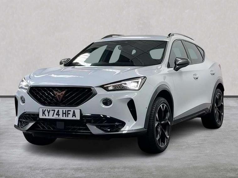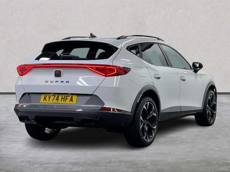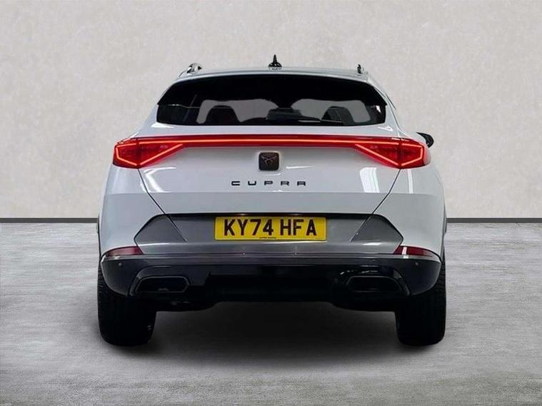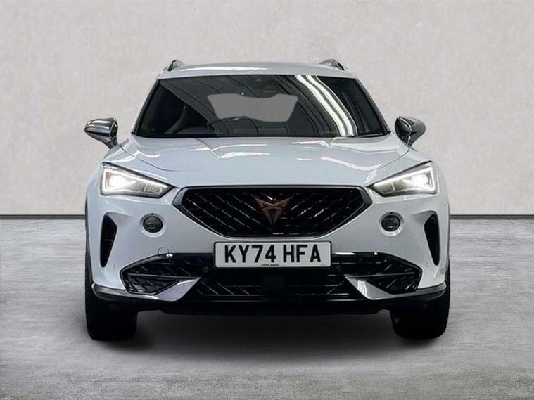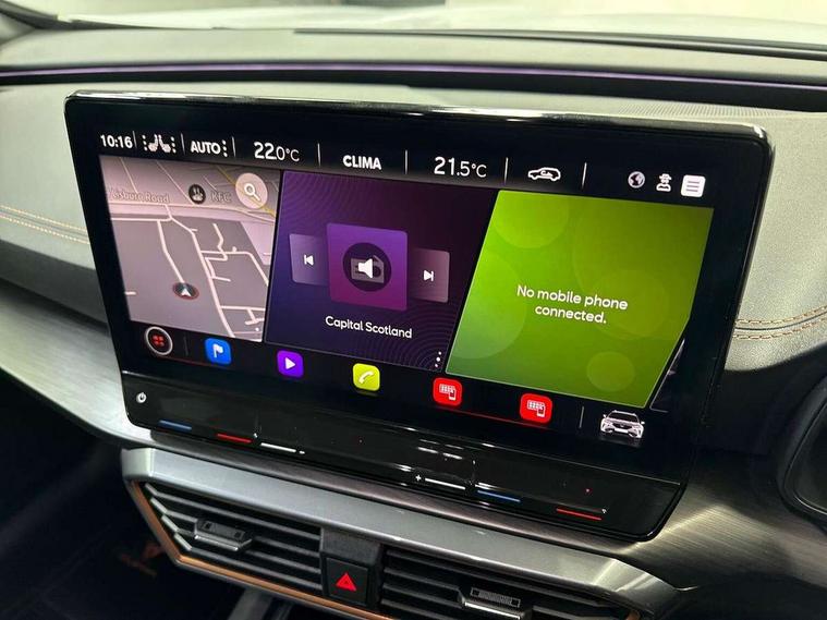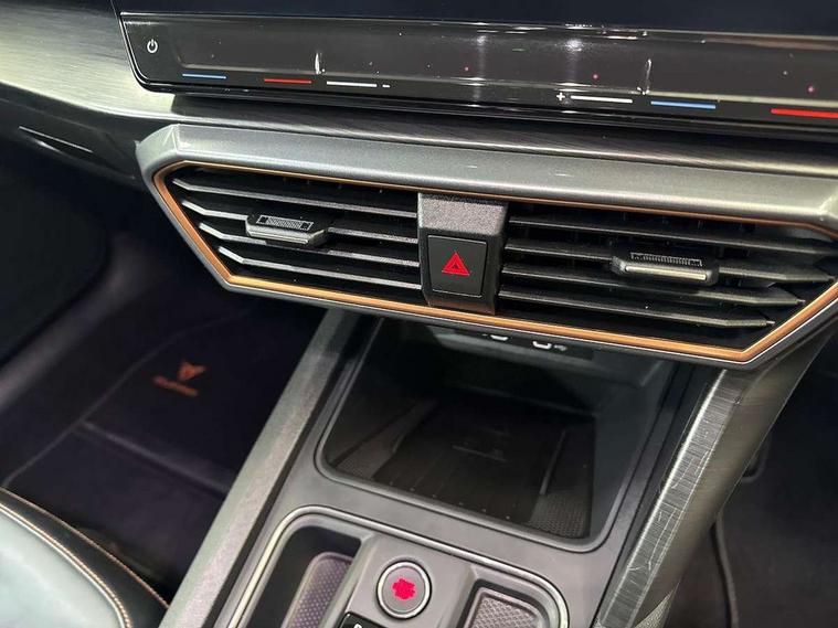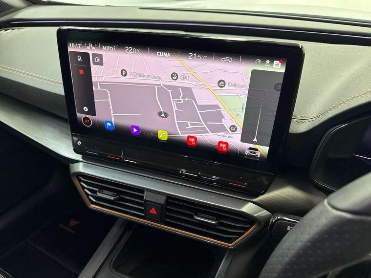 Digital cockpit and configurable dashboard, Driver alert system, Driving profile selection, Forward collision warning with automatic braking, Lane assist, Navigation system with 12'' Touchscreen Display, Park assist (inc front/rear parking sensors), PAS, Predictive adaptive cruise control with speed limiter, Rear view camera, RPM, trip computer, outside temp gauge, instrument light brightness, low fuel warning light, lights on reminder, gearshift indicator, Service interval indicator, Start/stop system with regenerative braking, Voice control system, Wired Android Auto, Wireless apple carplay, Wireless phone charger, Electronic locking differential and dynamic traction support, Standard suspension, 2 front and 2 rear USB type C sockets, Auxiliary input socket, DAB radio, Auto dimming rear view mirror, Body colour door handles, Body coloured bumpers, Dark grey wing mirror, Daytime running light with automatic headlight control and coming home feature, Dynamic headlight range control, Electric front/rear windows, Electrically adjustable heated and folding door mirrors with memory function, Front fog lamps with cornering function, Gloss black roof rails and window surrounds, LED Headlights, LED Taillights with dynamic indicator, Rain sensing wipers, Rear diffuser with black simulated exhaust pipes, Rear side wing doors, Rear wash/wipe, Third brake light, Tinted rear windows, Welcome lights, 12v power supply in centre console, 12V socket, 12v socket in loadspace, 2 front and 2 rear reading lights, 230V socket, 3 seat bench in 2nd row, 60/40 split rear bench seat with armrest and mechanical seat release, Black headlining, Dust/pollen filter, Front and rear head restraints, Front centre armrest, Height/reach adjust steering wheel, Illuminated interior front door sills, Illuminated sunvisor with mirror, Isofix, Leather multi function heated steering wheel with gear shift paddles, Luggage tie-down hooks, Single front passenger seat, Three zone climate control with control panel in rear, Variable luggage/load compartment floor, Wraparound lighting, Genuine Nappa leather Pack - Cupra, 3 point seatbelts on all rear seats, ABS, Brake control system - ESC and brake booster, Child proof door locks, Driver and front passenger airbags with front passenger airbag de-activation, Electronic parking brake, Front and rear disc brakes, Front side curtain airbags, Hill hold control, Public e-call, Seat belt reminder for front and rear seats, Tyre pressure monitoring system, Anti theft alarm system, Keyless entry and start system (KESSY), Locking wheel bolts, Copper and aluminium interior detailing, 19" 'Exclusive' machined sport matte black and silver alloy wheels,
