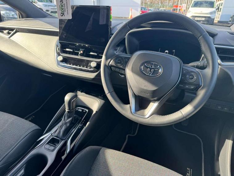 10.5" Multimedia display screen, 12.3" multi information screen, Adjustable speed limiter, Bluetooth telephone connectivity, Colour multi information display with 3D, Connected car functionality upgrade, tracker, remote status and e-care, Drive mode select (Eco, Normal), E-call, Electrically assisted power steering, EV drive indicator, Front and rear parking sensors, Full Digital 12.3" TFT Digital Combimeter, Gear position indicator with meter, Hybrid system indicator, Intelligent parking assist, Key reminder warning, Lane Departure Alert (LDA) switch on steering wheel, Lane departure alert - LDA, Memory on adjustable speed limiter, MyT connected services, Proactive driving assist (PDA), Reversing camera, Smart entry and push button start, Smartphone integration with Apple CarPlay and wired android auto, Speedometer, Toyota remote services, Toyota smart connect multimedia system, Toyota smart connect navigation, Wireless charger, Catalytic converter, Double wishbone rear suspension, Electric accelerator pedal, Front and rear stabilizers, Front differential 2.834, Gasoline particulate filter, MacPherson front suspension, Vehicle Stability Control (VSC), 6 speakers, DAB Digital radio, Smart voice assist/ Voice recognition, USB connector, 20% privacy rear side and quarter glass, A - Pillar garnish, Adaptive automatic high beam system (AHS), Aluminium roof rails, Anti-jam protection on power windows, Auto dimming rear view mirror, Auto headlights, Auto up and down function on all power windows, Automatic folding mirrors, B - Pillar in Black, Black door moulding, Black metallic meshed front grille, Black side air vents, Black toyota logo in front, Body colour rear roof spoiler, Body coloured door mirrors, Body coloured front spoiler, Body coloured outside door handles, Body coloured rear bumpers, Electrochromatic mirror, Ethanol washer fluid, Follow me home headlights, Front and rear fender high liner, Front bumper, Fuel caution label, Gloss black diffuser, Gloss black upper front grille, Height memory opening on power tailgate, LED daytime running lights, LED dual beam projector headlights, LED front fog lights, LED High mounted stop light, LED rear combi lights with LED lightguide, Light remind warning with auto cut off, Lower back and back door plated garnish, Manual headlight levelling system, New grille pattern, Noise reduction layer on front windows, Noise reduction layer on windscreen, Paint protective wrap guard, Power adjustable heated door mirrors, Power front windows, Power rear windows, Power tailgate with kick sensor, Rain sensing wipers, Rear bumper decoration with chrome plated inserts, Rear privacy windows, Rear side wing doors, Rear under guard with chrome ornament, Rear window defogger, Rear window wiper, Remote tailgate release on key, Reverse tilting door mirrors, RHD aimed headlight levelling system, Satin chrome insert on front door assist grips, Satin chrome inserts on rear passenger air vents, Satin chrome surround on lower front grille, Shark fin antenna, Single exhaust tailpipe, Tailgate release with push button, Tailgate remote release in cabin, Time adjustment on intermittent wiper, Turning signal integrated indicators in door mirrors, Unique lower skirt, UV-filter on driver and passenger windows, 12v power outlet - front, 12v power outlet - luggage side, 2 Shopping bag hooks in luggage compartment, 3 rear height adjustable headrests, 3 seat bench in 2nd row, 3 spoke steering wheel with satin insert, 4 tie down hooks in luggage compartment, 60/40 split folding rear seat, Adaptive cruise control (ACC) switch on steering wheel, Adjustable speed limiter switch on steering wheel, Aluminium door scuff plates with corolla batch, Audio, multi-info and telephone switches on steering wheel, Automatic light control system, Black armrest on centre console box, Black out with door sash and wheel house, Boot underfloor storage, Center console cover, Clean air filter, Driver and front passenger personal light, Driver and passenger sun visor with mirror and light, Dual level deckboard, Dual mike in roof, Dual sided boot floor, Dual zone automatic air conditioning with ECO mode switch, Electric lumbar support for passenger, Fabric upholstery, Forward tilting 2nd row seats, Front and rear bottle holders, Front and rear door pockets, Front console box with stitching, Front floor mats, Front head restraints, Front overhead assist grips, Front passenger seat, Front sliding synthetic leather armrest, Gear knob, Gloss black gear shift console, Heated front seats, Illuminated entry system in room lamp, ISOFIX child restraint system, Leather gear shift with satin chrome on gear shift console, LED boot light, Manual height adjustable for driver and front passenger seat, Manual tilt and telescopic steering wheel, Manually sliding driver seat, Manually sliding front passenger seat, Matt black front door assist grip, Nanoe-X air purifier, Passenger seat back pocket, Pollen filter, Power adjustable lumbar support on driver seat, Power window switches with satin chrome inserts, PVC door armrest, Rear air vents, Rear armrest with 2 cupholders, Rear fabric floor mats, Rear overhead assist grips, Rear passenger coat hooks (2), Rear passenger personal lights, Refrigerant correspondent hf01234f, Regulation compliancy wvta label +, Remote air conditioning, Remote controlled Toyota easy flat system, Retractable tonneau cover with luggage partition net, Satin chrome inserts on centre air vents, Satin chrome inside door handles, Satin chrome surround on heater control panel, Satin chrome surround on multimedia, Satin chrome surround on speedometer, Side storage in boot, Slow opening glovebox with lights, Soft touch front and rear door trim, USB charger front, Voice recognition switch on steering wheel, Whiplash Injury Lessening (WIL) feature (active headrest) for seats, White ambient lighting on open tray and front cup holder, Toyota safety sense 3 pack - Corolla, 15" Front brakes, 3x3 point rear seatbe