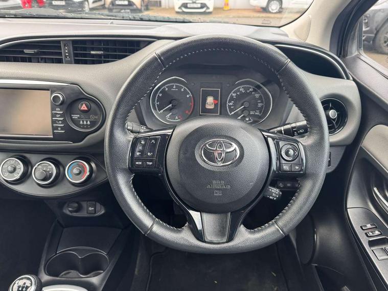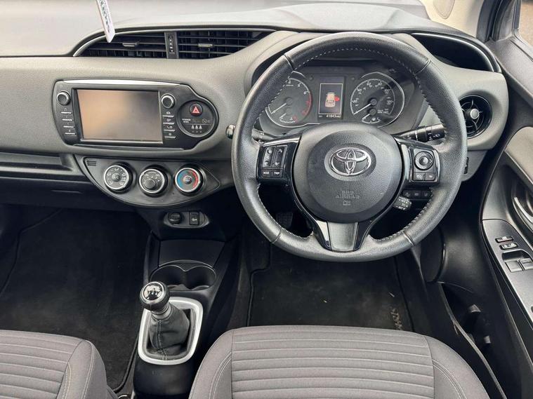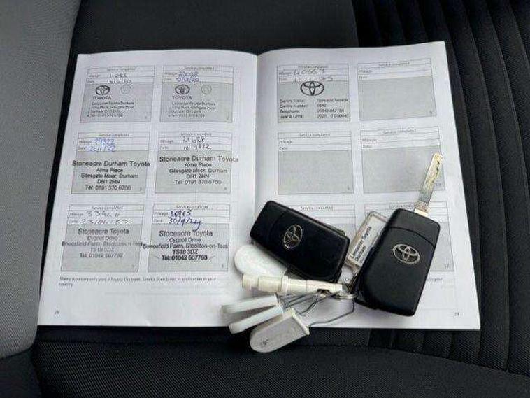 Bluetooth system, Cruise control, External temperature gauge, Fuel indicator with low level warning, Lane departure warning system, Lights on warning, Multi-information display, Power Steering, Rear parking sensor, Rear view camera, Road sign assist - RSA, TFT display screen, Touch 2 Go navigation system, Trip computer, 6 speakers, Auxiliary input socket, DAB Digital radio, Steering wheel mounted audio/telephone controls, Touch 2 touchscreen Radio with iPod connectivity, USB connection, 2 speed front wipers + intermittent wipe, Auto high beam, Auto up and down function on drivers window, Body colour bumpers, Body colour door handles, Body coloured door mirrors, Chrome fog light surround, Daytime running lights, Door mirror integrated indicators, Drivers window one touch up/down, Electric adjustable heated door mirrors, Electric front windows, Follow me home headlights, Front fog lights, Green tinted glass, Heated rear windscreen, Projector headlights, Rain sensitive windscreen wipers, Rear wiper, Turning signal integrated indicators in door mirrors, 3 spoke leather steering wheel, 60/40 split folding rear seat, Boot light, Cloth upholstery, Driver seat height adjust, Driver/passenger vanity mirrors with covers, Front cupholders x 2, Front map reading lights, Front seats with lumbar support, Glovebox, Height adjustable front head restraints, Height adjustable rear seat head restraints (x3), Isofix system on outer rear seats, Leather gear knob, Manual air conditioning, Rear cupholder, Removable rear parcel shelf, Sliding front seats, Tilt/telescopic steering column, 3 point seatbelts on all rear seats, ABS+EBD+Brake assist, Active headrests, Collision mitigation braking system, Curtain airbags, Driver and passenger airbags, Drivers knee airbag, Emergency brake light system (EBS), Front passenger airbag on/off switch, Front seatbelt reminder, Front side airbags, Height adjustable front seatbelts with pre-tensioners and load limiters, Hill start assist control (HAC), Passenger airbag deactivate switch, Rear child proof door locks, Rear seat belt reminder, Road sign information display, Seatbelt warning lamp and buzzer, Toyota safety sense including Road sign assist, Pre collision system, auto high beam and lane departure alert), Tyre pressure monitoring system, Vehicle stability control VSC + traction control, Engine immobiliser, Remote central locking, Instrument panel in grey, Space saver spare wheel,