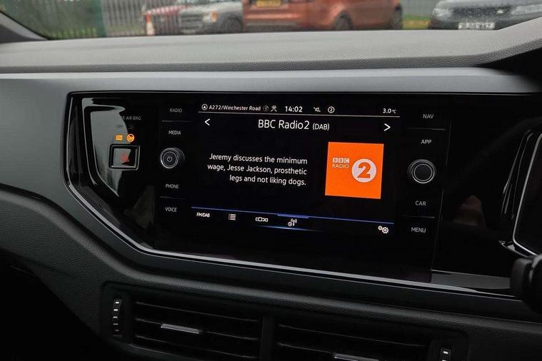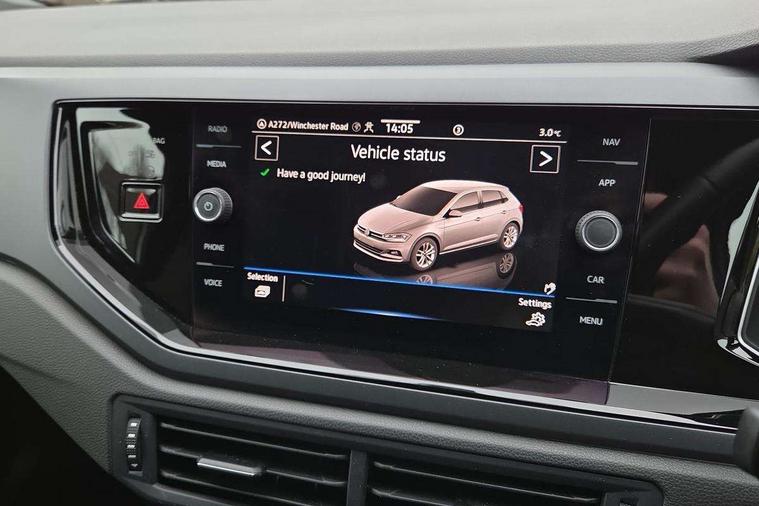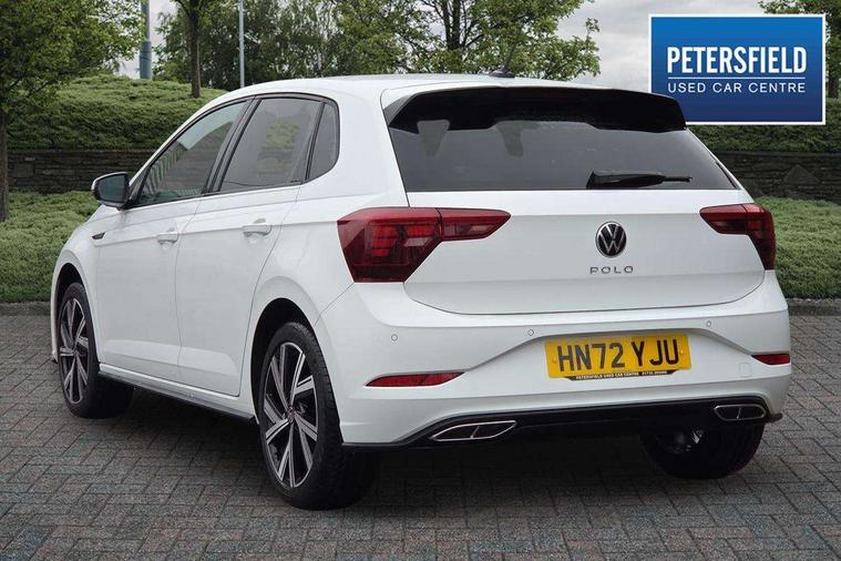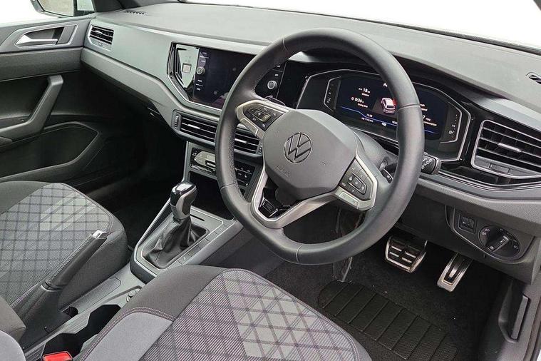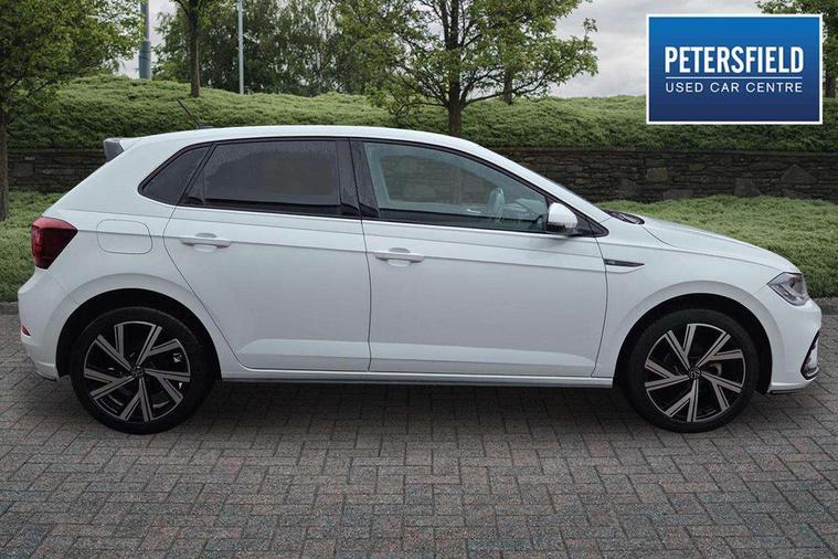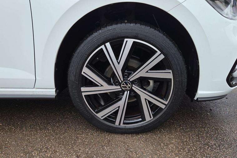 Adaptive cruise control with follow-to-stop and speed limiter, Bluetooth mobile phone interface, Digital Cockpit Pro with 10.25" Display, Driver alert system, Dynamic road sign display, Emergency call service, Power assisted speed sensitive steering, Preparation for We connect and We connect plus, Speedo and rev counter, electronic odometer, trip, service interval display and fuel gauge, Standard rear axle, Travel Assist - Lane keeping system and traffic jam assist, Travel assist including emergency assist, Trip computer, Warning signal and warning light for front and rear seatbelts not fastened, Washer fluid level indicator, Wireless app connect, Front wheel drive, Rear shock absorpion, Start-stop system with battery regeneration (recuperation - energy recovery during braking), DAB Digital radio, Diversity antenna for FM reception, Front and rear 6 speakers, Body colour bumpers, Body colour door handles, Electric front windows, Front scuff plates with R-Line logo, Heat insulating darkened glass in side and rear windows, Heat insulating glass windscreen, Power folding adjustable/heated exterior mirrors and front passenger exterior mirror lowering function, Rear electric windows, Rear fog light, Rear side wing doors, Rear windscreen washer and wiper with interval delay, Third brake light, 12V power socket in centre console, 2 USB-C ports in the front, 2 USB-C charging sockets on the center console in the rear, 3 rear head restraints, 60/40 split folding rear seat and rear seat bench not split, Air care climatronic air conditoning system with active combination filter and 2-zone temperature control, Black roof lining, Chrome plated radiator grille inserts, air vent surrounds and light switch surrounds, Door and side trim panel, Driver and front passenger seat height adjustment, Driver/passenger sunvisors with illuminated vanity mirrors, Front + rear carpet mats in recycled material, Front centre armrest, Front footwell illumination, Front seat backrest storage pockets, Front sports comfort seats, Handbrake lever handle in leather, Headliner in recycled material, Isofix child seat preparation easy-fit (for two outer rear seats, and front passenger seat) compatible with I-size, Karoso artvelours cloth upholstery, Leather trimmed gear knob, LED interior light with switch off delay and dimmer, 2 reading lights front and rear, Luggage compartment cover, Luggage compartment floor, Luggage compartment lighting, Lumbar adjustment for front seats, Single front passenger seat, Stainless steel pedals, Standard pedal cluster, Three spoke leather wrapped multifunction steering wheel with shifting paddles, Light and sight pack - Polo R-Line/Black Edition, 3 point height adj front seatbelts + pretensioners, 3x3 point rear seatbelts, ABS, Driver and front passenger airbag with front passenger airbag deactivation, Drivers and front passengers safety optimised head restraints, ESC (Electronic stability control) + EDL (Electronic Differntial lock) and ASR (Traction control), Extended and predictive pedestrian/ cyclist protection, Front curtain and side airbags with center airbag, Hill hold control, Manual child lock in rear doors, Single tone horn, Tyre pressure loss indicator, Alarm with interior protection, Anti-theft alarm system with interior monitoring, backup horn, and towing protection, Anti-theft wheel bolts, Electronic engine immobiliser, Chrome applications on rotary light, mirror adjustment, window regulator switches, outlet with frame in black, Dark grey anodised matt decorative inserts in dash and front door panels, Low rolling resistance tyres,