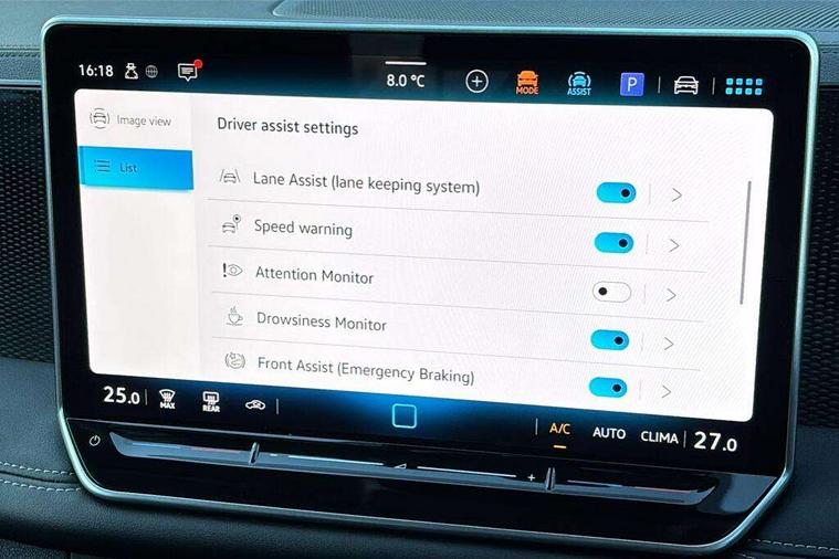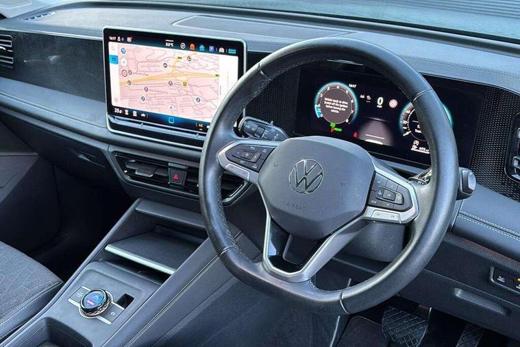 Adaptive cruise control (ACC), Advanced driver attention and drowsiness monitor, Bluetooth mobile phone interface, Digital Cockpit Pro - 10.25" high resolution dash display screen with customisable menus and information, Dynamic road sign display, E-Sim card for online connectivity, eCall emergency call service, Front Assist - Autonomous emergency braking with pedestrian and cyclist monitoring, Lane change system, Side assist, Rear traffic alert and Exit warning system, Lane keeping system Lane Assist, Multifunction front facing camera, Oncoming vehicle braking when turning including swerve support, Park assistance plus with front and rear parking sensors, Power assisted steering with speed sensitive, Start/stop system with regenerative braking, Warning signal and warning light for front and rear seatbelts not fastened, Wireless App-Connect, Front wheel drive, Digital radio reception (DAB), Diversity antenna for FM reception, Ambient lighting with logo projection, Auto dimming interior rear view mirror, Automatic headlight control system, Body coloured bumpers and air intake with chrome trim, Body coloured door handles, Body-coloured exterior mirror housings, Coming/leaving home lighting function, Heat insulating glass in side and rear windows, Heat insulating windshield, Heated rear window, High level 3rd brake light, Illuminated door handle recesses, Illuminated lightline between headlamps, Rain sensor windscreen wipers, Rear fog light on one side, reversing light on both sides, Rear side wing doors, Rear wiper, 12V outlet in center console rear and in luggage compartment, 12V socket in centre console, 3 bench rear seats in 2nd row, Air care climatronic 3 zone air conditioning system with rear air conditioning control panel, Carpet mats, front and rear, Centre console with illuminated storage compartment with sliding cover and two drinks holders, Ceramique headlining, Door and side trim panel in foam film and woven fabric, Front centre armrest, ISOFIX anchors for child seats on outer rear seats and front passenger seat. Compatible with i-Size, Mechanical rear seat release, Power adjustable lumbar support in front, Rear bench seat, split folding, longitudinally movable and folding with load-through hatch and centre armrest, Safety optimised front head restraints, Single front passenger seat, Sun visors with illuminated vanity mirrors, Three rear head restraints, Variable luggage compartment floor, Comfort package incl. Memory feature for Park assist and Safelock - Tiguan, Design package - Tiguan, 3 point seat belt for centre rear seats, 3 Point seat belts in front with pretensioners, 3 point seatbelts in outer rear with ECE label, Driver and front passenger airbag with front passenger airbag deactivation, Electronic parking brake with auto hold, Front and rear curtain airbags, Front and rear side airbags, Front centre airbag, Front disc brakes, Manual child proof rear door locks, Rear disc brakes, Two tone horn, Warning triangle, Anti theft wheel bolts, Soul instrument panel, Airstop tyres,