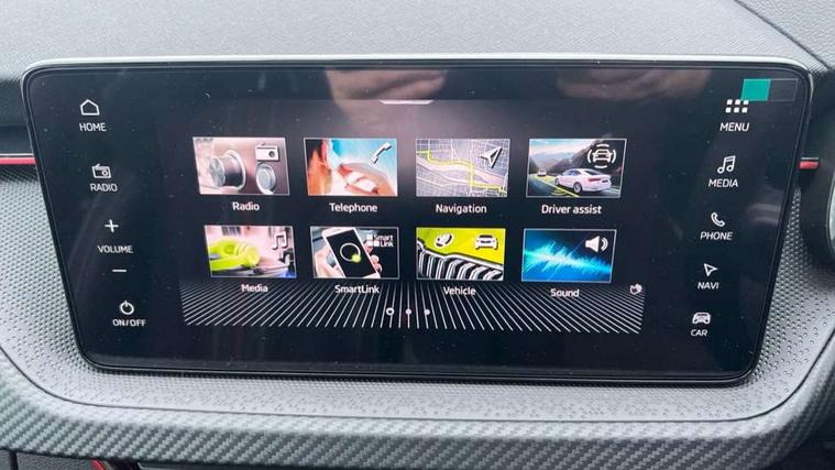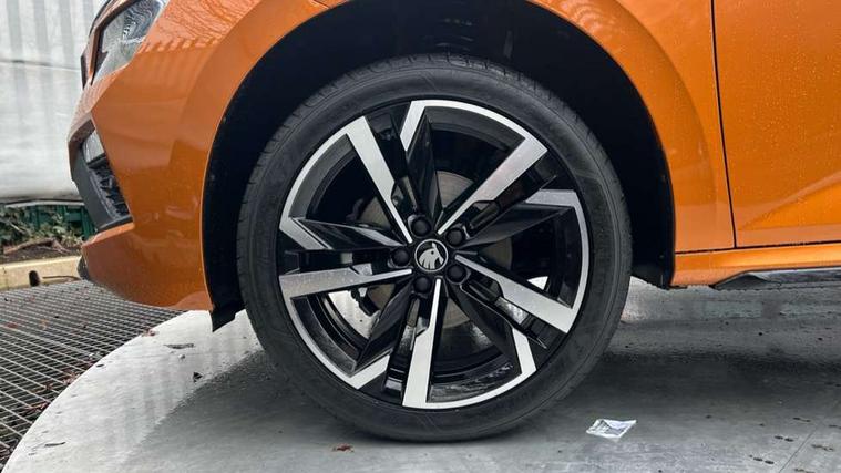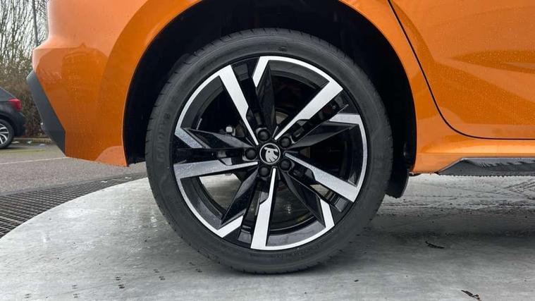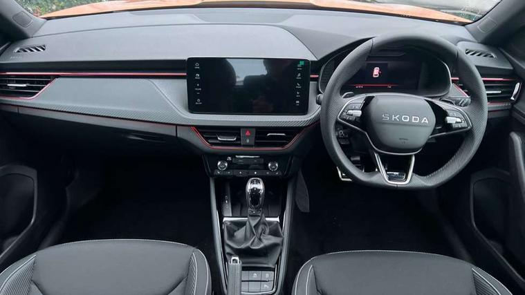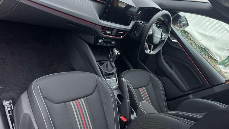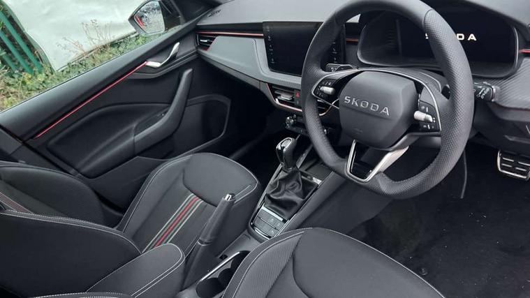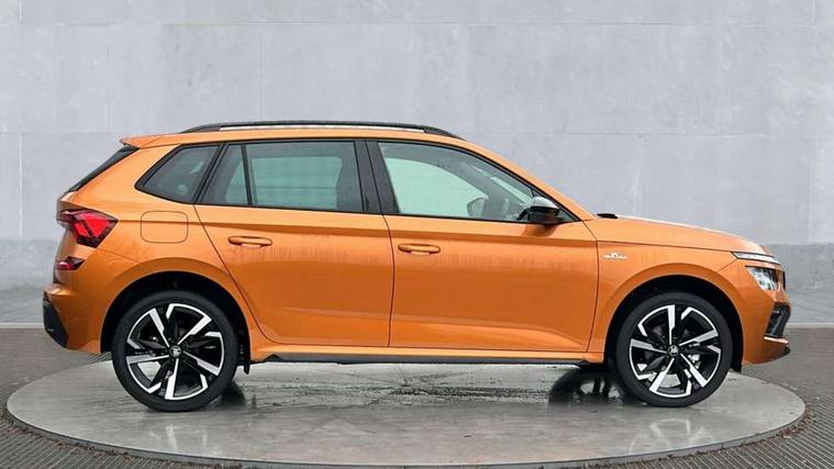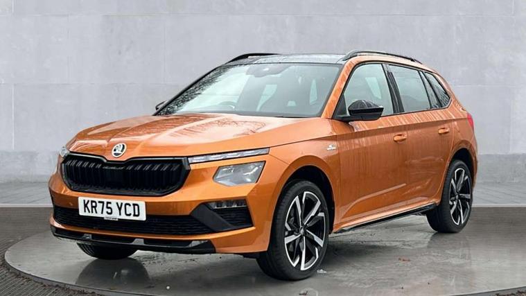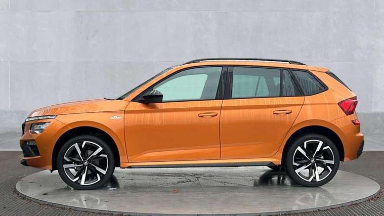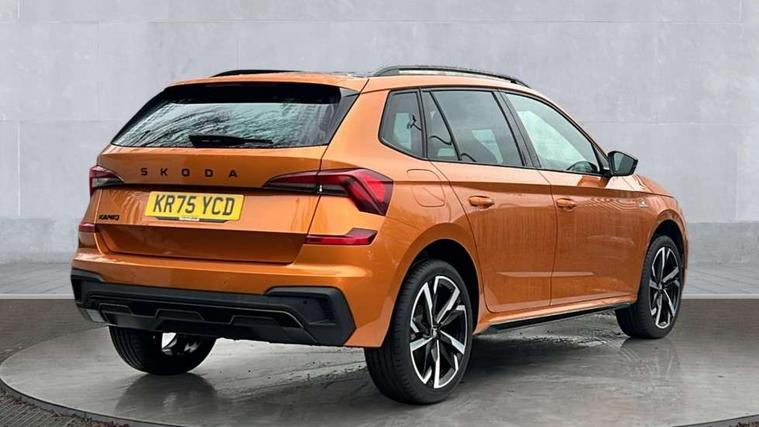 Advanced driver attention and drowsiness monitor, Bluetooth system, E-call, Front assist system, PAS, Rear parking sensors, Rear view camera, Service indicator, Speed limiter, Traffic sign recognition, Virtual cockpit with 10.25" display, Voice control system, Wireless smartlink, 4 USB C ports, 8 Speakers, 9.2" Skoda navigation display, DAB Digital radio, Auto dimming rear view mirror, Automatic headlight control with coming home and leaving home feature, Black door mirrors, Black radiator grille, Black rear diffuser, Black roof spoiler, Body colour bumpers, Body colour door handles, Boot lettering in black, Extended tailgate glass, Fixed panoramic sunroof with black roof rails, Front and rear electric windows, Heated rear window, LED daytime running lights, LED high beam, LED low beam, LED third brake light, Light sensors, Monte carlo plaque, Privacy glass, Rear side wing doors, Rear wiper, Ticket holder inside windscreen, 12V socket in luggage compartment, 3 seat bench in 2nd row, Aluminium pedals, Ambient lighting in white/red, Art leather carbon decor inserts, Art leather carbon door inserts, Black roof lining, Cargo elements, Chrome inner door handles, Driver and passenger sun visors with vanity mirror, Dual zone climate control, Front and rear roof lights, Front centre armrest, Front head restraints, Glove compartment with illumination, Height adjustable driver seat, Height adjustable front passenger seat, Ice scraper, Inner circulation control with pollen filter, ISOFIX on front passenger seat, Isofix preparation for back seats, Leather gearknob and handbrake lever, Manual lumbar support for front seats, Monte Carlo cloth upholstery, Net package and top tether hooks in boot space, Net under rear shelf, Pocket on the back of both front seats include mobile phone pockets, Rake/reach adjustable steering wheel, Reading lights, Rear centre armrests, Red hotstamping, Single front passenger seat, Sports seats, Textile floor mats, Third rear headrest, Top tether for front passenger seat, Umbrella in driver's door, Light and view plus package - Kamiq, 3x3 point rear seatbelts, Airbags - driver and front passenger, Disc brakes, ESP, Extended and predictive pedestrian/cyclist protection, Front passenger airbag deactivation switch, Front side airbags with curtain airbags, Hill hold control, Manual leather parking brake, Manual rear child locks, One tone horn, Seatbelt reminder for driver an co-driver, Traction control, Tyre pressure monitor, Anti-theft alarm system with interior monitoring, backup horn, towing protection and remote central locking with SAFE system, Anti-theft wheel bolts, Electronic engine immobilizer, 18" Ursa black diamond cut alloy wheels,