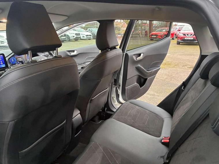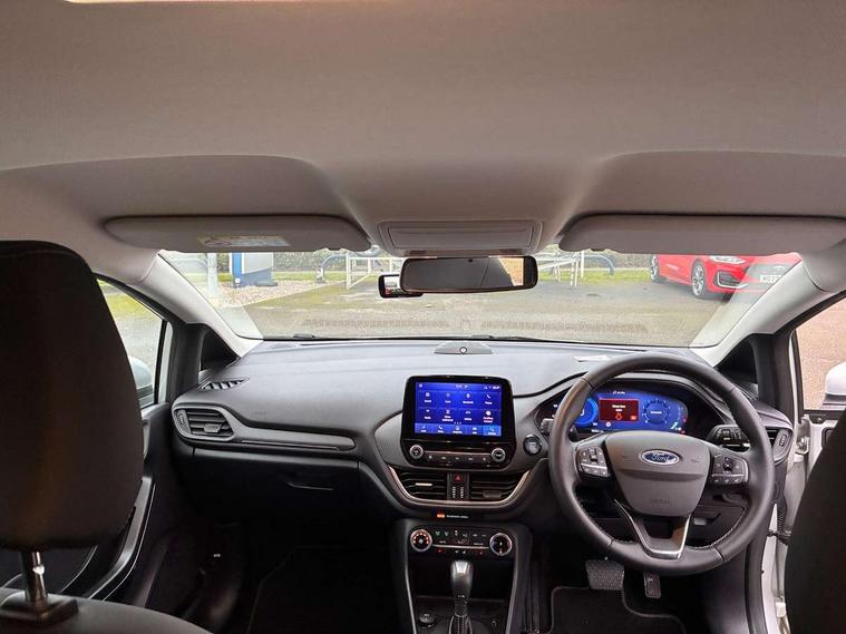 12.3" Full digital cluster, Driver alert system, Electric power steering, Ford easy fuel, Ford SYNC 3 Nav with DAB radio, 8" touch screen, voice control, emergency assist, Apple CarPlay/Android auto, 2x USB, 6 speaker, Ford pass connect, Rear parking distance sensors, Rear view camera, Selectable drive modes (Normal, Sport, Track), Speed sign recognition, Trip computer, Wrong way alert, Standard suspension, Auto high beam, Body colour bumpers, Body coloured electrically operated with side indicators, Electric front windows/one touch facility, Front titanium scuff plates, High gloss chrome surround with satin grille insert, LED Night signature to rear lights, LED third brake light, Quickclear heated windscreen, Rain sensing wipers and auto dimming rear view mirror, Rear privacy glass, Rear side wing doors, Rear wiper, 3 seat bench in 2nd row, 4 way manually adjustable passenger seat, Adjustable head restraints, Centre console with opening armrest, 2x cupholders, 12v and USB, Drivers and Passenger lumbar support, EATC - Electronic Auto Temperature control, Front floor mats in velour, Leather gear knob, LED ambient lighting (Ice blue), Manual 4-way driver seat adjust, Sensico partial premium leather upholstery with metal grey stitching, Sensico wrapped steering wheel, Single front passenger seat, NCAP Pack - Fiesta, Winter pack [GTBAB]- Fiesta, 3 point seatbelts on all rear seats, Electronic stability control with hill start assist, Tyre pressure monitoring system, Ford keyfree system with Keyless entry and keyless start, MyKey system, Remote central locking, Thatcham alarm with power door dead locks, 17" 10 spoke alloys with pearl grey machined finish,