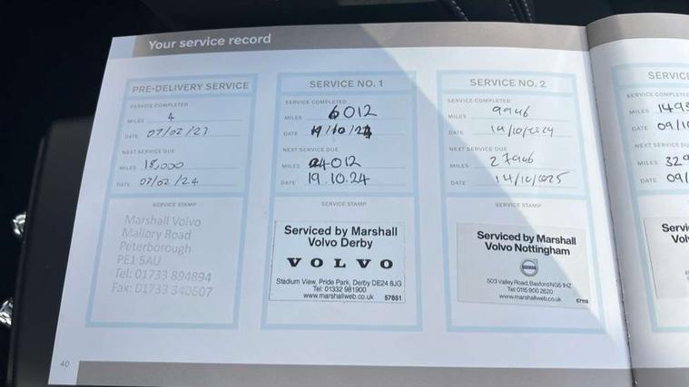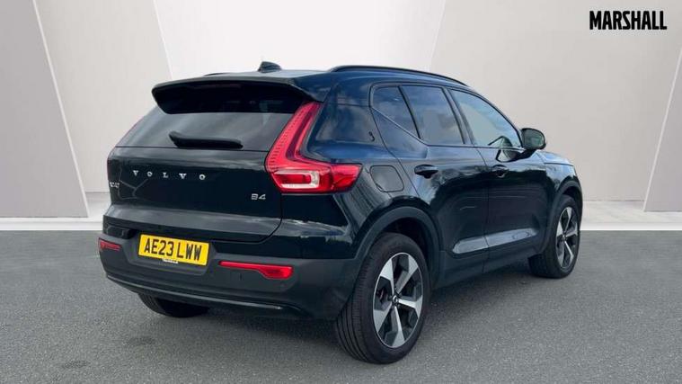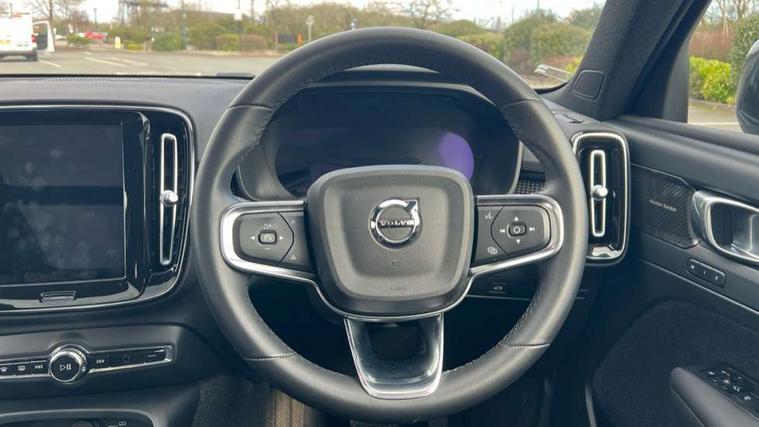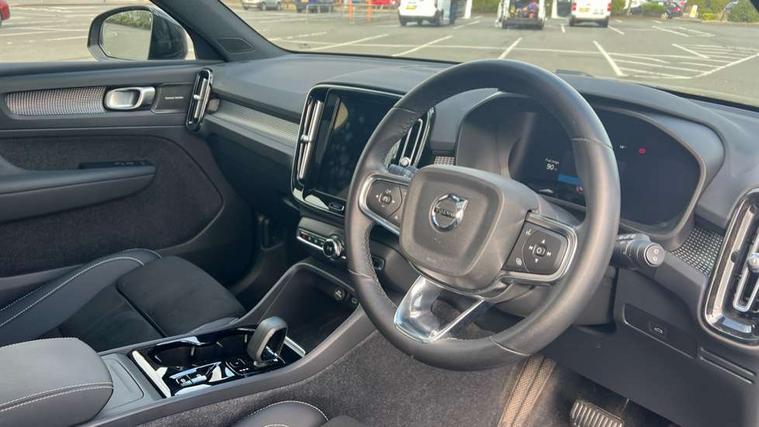 12.3" Progressive Driver Display, 360 degree surround view parking camera with side proximity sensors, 9" centre console portrait touch screen, Adjustable steering wheel force, Bluetooth hands free telephone kit, E-call, Front park assist, Google automatic services - Nav with google maps, apple carplay/android auto, voice recognition with google assistant, Hands free power tailgate, Lane keep assist with driver alert control, Oncoming Lane Mitigation, Rear park assist, Speed limiter, Speed sensitive steering, Wireless/Inductive Mobile Phone Charging, Dynamic chassis, DAB Digital radio, Premium Sound by Harman Kardon, Dolby Pro Logic II Surround Sound, Dirac Unsion, 12 speakers/600W and subwoofer, Steering wheel mounted remote controls, Active bending pixel LED headlights with adaptive shadow technology, Active high beam incorporating daytime running lights, Adaptive brake lights with high level LED brake lights, Auto dimming interior mirror, Automatic headlamp levelling, Dark tinted windows for rear door side windows and cargo compartment, Front aluminium tread plates, Front and rear electric windows, Headlight cleaning system, High gloss black front and rear skid plate, High gloss black mesh front grille with high gloss black surround, High gloss black window trim, Home safe and approach lighting, Integrated roof rails in high gloss black, LED front fog lights, Power glass tilt and slide panoramic sunroof with sun curtain, Puddle lights, Rain sensor with automatic windscreen wiper activation, Rear side wing doors, Rear wiper, Roof antenna, Roof spoiler, Visible VIN plate, 12V socket in front tunnel console and cargo compartment, 2 zone electronic climate control with clear zone air quality system and pollen filter, 3 seat bench in 2nd row, 3 Spoke tailored steering wheel with chrome trim, 60/40 versatile split folding rear seat, A-pillar parking ticket holder, Ambient front door and instrumental panel lighting, Centre console cupholders and storage, Flexible load floor and grocery bag holder, Floor mats, Front door pocket and front cupholder illumination, Front footwell illumination, Front headrests, Front reading light and theatre lighting, Front seat cushion extensions, Front tunnel pocket, Glovebox bag hook, Heated front seats, Height adjustable passenger seat, Height/reach adjustable steering column, High gloss centre tunnel deco, Illuminated glovebox, Illuminated luggage compartment, Illuminated tailgate, Illuminated vanity mirrors, Integrated waste bin, Isofix attachments on rear seats, Load protection net, Multi directional lumbar support, Power driver seat with memory + exterior mirrors memory, Power folding rear headrests, Power passenger seat, Rear armrest / integral cup holders / storage tray, Rear reading and courtesy lights, Single front passenger seat, Underfloor cargo storage, Climate pack without heated front seats - XC40, Driver assist pack - XC40, 3x3 point rear seatbelts, City safety with steering support with Pedestrian + cyclist + front collision warning with full auto brake and rear auto brake, Drivers knee airbag, Dual stage driver/passenger airbags, Electronic parking brake with auto hold, First aid kit, Front and outer rear seatbelt reminder and pretensioners, Front seats SIPS airbags, Hill descent control, Hill start assist, Inflatable curtain, Passenger airbag cut-off device, Power child locks on rear doors, Road sign information display, Run off Road Mitigation, Run off Road Protection, SIPS (Side Impact Protection System), Slippery road and hazard light alert, Stability and Traction Control with Spin control, Engine Drag Control and Corner Traction Control, Tyre pressure monitoring system, Vehicle deceleration control with Anti-lock Brake System, Electronic Brake Distribution and Emergency Brake Assist, Warning triangle, WHIPS whiplash protection system - front, Anti-theft alarm including immobiliser/volume sensor + level sensor, Key integrated remote control central locking + fuel flap with deadlocking system and auto open/close power windows, Keyless drive includes keyless entry and keyless start, Locking wheel nuts,