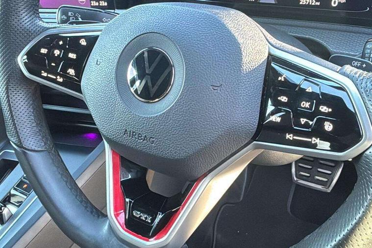 Black metal chrome decorative inserts in dash and front door trim panels, Soul dashboard, Alarm with interior protection and deactivation via infotainment system, Electronic engine immobiliser, Keyless entry with start/stop button on centre console, Premium USB cable in choice of either Apple or Android smartphone compatibility, 3 point height adj front seatbelts + pretensioners, 3 rear three point seatbelts, ABS, Driver and front passenger airbag with front passenger airbag deactivation, Drivers and front passengers safety optimised head restraints, Electronic parking brake with auto hold, ESC (Electronic Stability Control), Extended pedestrian protection measures, Front and rear passengers curtain airbag system including front side airbags, Front disc brakes, Rear disc brakes, Two tone horn, Tyre pressure monitoring system, Advanced high beam control dynamic light assist for LED matrix headlamps, Auto dimming rear view mirror, Automatic headlamp activation with Coming home and Leaving home feature, Body colour bumpers, Body colour door handles, Body colour door mirrors with integrated indicators, Body colour rear roof spoiler, Chrome plated tailpipes (1 either side), Front and rear electric windows, GTI style bumpers, Heat insulating glass windscreen, Heated rear windscreen, High level 3rd brake light, Highway light, Illuminated front grille, IQ.Light - LED Matrix headlights, dynamic headlight control with advanced high beam control matrix dipped main beam + LED DRL + 22 LED lights, LED front fog lights with 5 honeycomb design, LED License plate illumination, LED rear combination lamp inlcuding dynamic turn signal, Rain sensor, Rear fog light on one side and reversing lights on both sides, Rear tinted glass 65% light absorbing from B pillar backwards, Rear windscreen washer and wiper with interval delay, Remote electrically heated, adjustable and foldable door mirrors, including door mirror puddle lights and reverse activated kerb-view adjustment on pa, Welcome light, 12V socket in front centre console, 12V socket in luggage compartment, 3 rear head restraints, 3 zone climate with controls in the rear, Aluminium gear knob, Ambient lighting - Customisable 30 colour ambient lighting, Ambient lighting, exterior illuminated styling elements at the sides, Black roof lining, Brushed stainless steel pedals, Centre console, Chrome plated surround to electric mirror button, window switch and air vent surrounds, Drivers and front passengers sun visors with vanity mirrors, Front + rear carpet mats, Front centre armrest with storage compartment, Front cupholders x 2, Front reading lights x 2 incorporating LED technology, Front seat lumbar support adjuster, Front sports seats, Glovebox, Height adjustable front seats, Height and reach adjustable steering wheel, Isofix child seat preparation for 2 rear child seats and front passenger seat, Leather wrapped multifunction sports heated steering wheel with paddle shift, Luggage compartment lighting, Removable luggage compartment cover, Split folding backrest with centre armrest and unsplit rear seat bench, Woven fabric storage compartments in front and rear doors, Adaptive cruise control (ACC) with speed limiter and front assist (reacting to vehicles pedestrians and cyclists), Car2X communication, Digital cockpit pro - 10.25" high resolution TFT dash display screen with customizable menus and information, Driver alert system, Driver profile selection, Dynamic road sign display, eCall - Emergency call service for SOS calls to emergency response, Lane assist, Lane change assistant, Mobile phone interface with wireless inductive charging function, Progressive steering, Speedo, rev counter, electronic odometer, trip, service interval display, exterior temperature and fuel gauge, Start/Stop function, Travel assist with emergency side assist with electrically foldable door mirrors, Warning buzzer and light for front seatbelts unfastened, Wireless app connect, Front differential lock, Petrol Particulate Filter, XDS electronic differential lock for improved traction and handling,