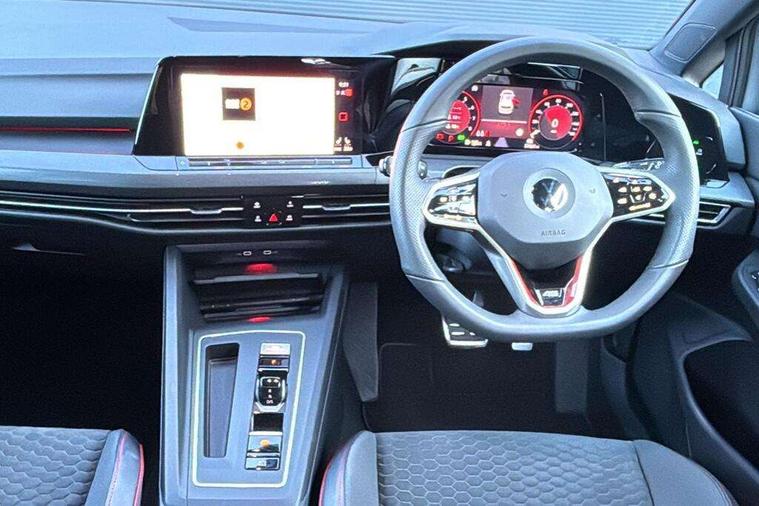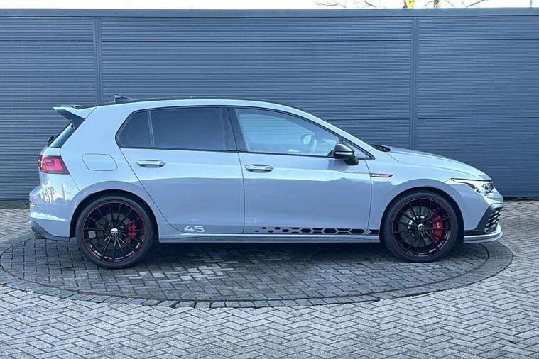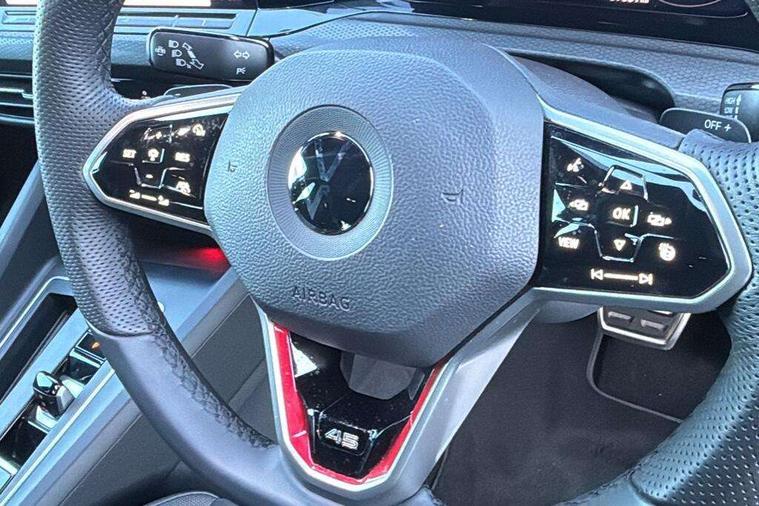 Adaptive cruise control (ACC) with speed limiter and front assist (reacting to vehicles pedestrians and cyclists), Car2X communication, Digital cockpit pro - 10.25" high resolution TFT dash display screen with customizable menus and information, Driver alert system, Driver profile selection, Dynamic road sign display, eCall - Emergency call service for SOS calls to emergency response, Lane assist, Lane change assistant, Mobile phone interface with wireless inductive charging function, Progressive steering, Speedo, rev counter, electronic odometer, trip, service interval display, exterior temperature and fuel gauge, Start/Stop function, Travel assist with emergency side assist with electrically foldable door mirrors, Warning buzzer and light for front seatbelts unfastened, Wireless app connect, Front differential lock, Petrol Particulate Filter, XDS electronic differential lock for improved traction and handling, Premium USB cable in choice of either Apple or Android smartphone compatibility, '45' lettering on the side sill panel and on the boot lid, Advanced high beam control dynamic light assist for LED matrix headlamps, Akrapovic titanium sport exhaust system, Ambient lighting, exterior illuminated styling elements at the sides, Auto dimming rear view mirror, Automatic headlamp activation with Coming home and Leaving home feature, Black painted roof, upper shell of the spoiler and door mirror covers, Body colour bumpers, Body colour door handles, Front and rear electric windows, GTI Clubsport styled bumpers, Heat insulating glass windscreen, Heated rear windscreen, High level 3rd brake light, Highway light, Illuminated front grille, IQ.Light - LED Matrix headlights, dynamic headlight control with advanced high beam control matrix dipped main beam + LED DRL + 22 LED lights, LED front fog lights with 5 honeycomb design, LED License plate illumination, LED rear combination lamp inlcuding dynamic turn signal, Performance rear spoiler, Rain sensor, Rear fog light on one side and reversing lights on both sides, Rear tinted glass 65% light absorbing from B pillar backwards, Rear windscreen washer and wiper with interval delay, Remote electrically heated, adjustable and foldable door mirrors, including door mirror puddle lights and reverse activated kerb-view adjustment on pa, Welcome light, 12V socket in front centre console, 12V socket in luggage compartment, 3 rear head restraints, 3 zone climate with controls in the rear, 45 decal and badge on steering wheel, Aluminium gear knob, Ambient lighting - Customisable 30 colour ambient lighting, Black roof lining, Brushed stainless steel pedals, Centre console, Chrome plated surround to electric mirror button, window switch and air vent surrounds, Door insert in Artvelours, Drivers and front passengers sun visors with vanity mirrors, Front + rear carpet mats, Front centre armrest with storage compartment, Front cupholders x 2, Front reading lights x 2 incorporating LED technology, Front seat lumbar support adjuster, Front sports seats, Glovebox, GTI lettering on the backrests of the front sport seats, Height adjustable front seats, Height and reach adjustable steering wheel, Isofix child seat preparation for 2 rear child seats and front passenger seat, Leather wrapped multifunction sports heated steering wheel with paddle shift, Luggage compartment lighting, Removable luggage compartment cover, Side trim panel and arm support in leatherette, Split folding backrest with centre armrest and unsplit rear seat bench, Woven fabric storage compartments in front and rear doors, 3 point height adj front seatbelts + pretensioners, 3 rear three point seatbelts, ABS, Driver and front passenger airbag with front passenger airbag deactivation, Drivers and front passengers safety optimised head restraints, Electronic parking brake with auto hold, ESC (Electronic Stability Control), Extended pedestrian protection measures, Front and rear passengers curtain airbag system including front side airbags, Front disc brakes, Rear disc brakes, Two tone horn, Tyre pressure monitoring system, Alarm with interior protection and deactivation via infotainment system, Electronic engine immobiliser, Keyless entry with start/stop button on centre console, Black metal chrome decorative inserts in dash and front door trim panels, Soul dashboard, 19" Scottsdale alloy wheels with anti theft wheel bolts, Tyre mobility kit Includes 12V compressor and tyre sealant,
