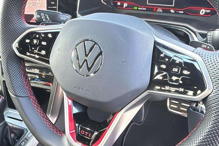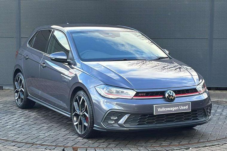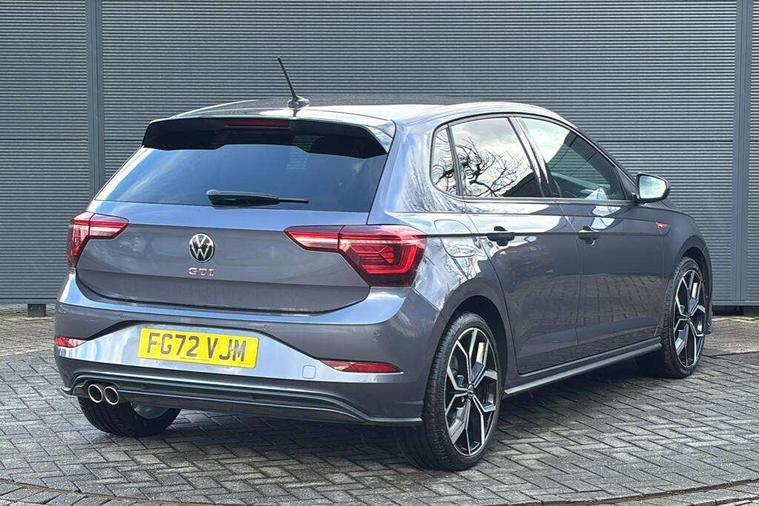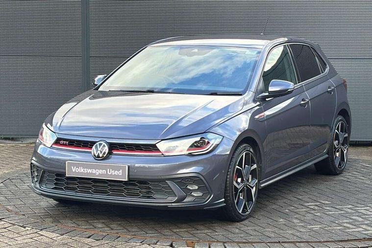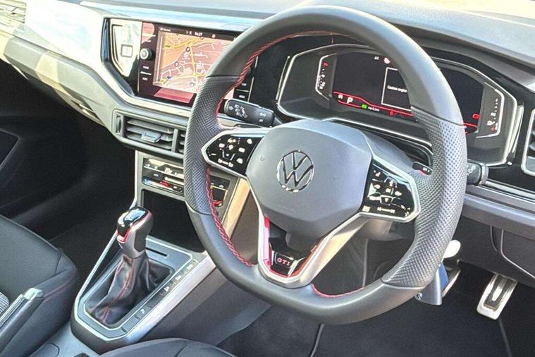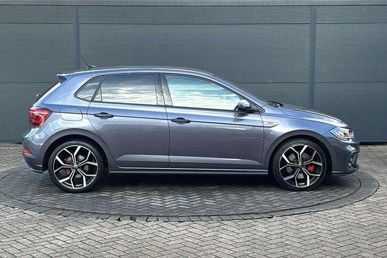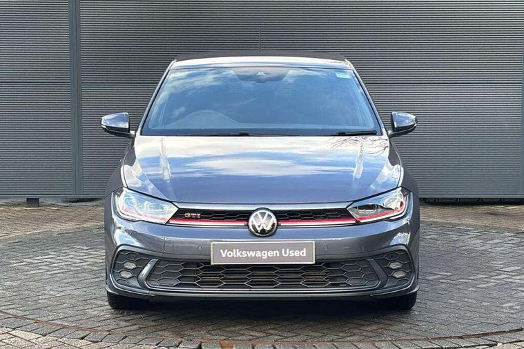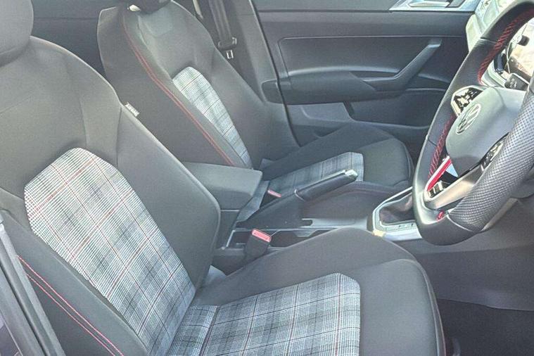 Adaptive cruise control with follow-to-stop and speed limiter, Bluetooth mobile phone interface, Digital Cockpit Pro with 10.25" Display, Driver alert system, Dynamic road sign display, Eco mode, Emergency call service, Power assisted speed sensitive steering, Preparation for We connect and We connect plus, Speedo and rev counter, electronic odometer, trip, service interval display and fuel gauge, Travel Assist - Lane keeping system and traffic jam assist, Travel assist including emergency assist, Trip computer, Warning signal and warning light for front and rear seatbelts not fastened, Washer fluid level indicator, Wireless app connect, Adaptive chassis control, Front wheel drive, Heavy duty rear axle, Rear shock absorpion sports version, Sports select suspension lowered by 15mm, Start-stop system with battery regeneration (recuperation - energy recovery during braking), DAB Digital radio, Diversity antenna for FM reception, Front and rear 6 speakers, Body colour bumpers, Body colour door handles, Electric front windows, Front scuff plates in aluminium with GTI logo, Heat insulating darkened glass in side and rear windows, Heat insulating glass windscreen, Power folding adjustable/heated exterior mirrors and front passenger exterior mirror lowering function, Rear electric windows, Rear fog light, Rear side wing doors, Rear windscreen washer and wiper with interval delay, Sport bumpers with air intakes with honeycomb structure, Third brake light, Twin chrome exhaust tailpipes, 12V power socket in centre console, 2 USB-C ports in the front, 2 USB-C charging sockets on the center console in the rear, 3 rear head restraints, 60/40 split folding rear seat and rear seat bench not split, Air care climatronic air conditoning system with active combination filter and 2-zone temperature control, Black roof lining, Ceramique headliner, Chrome plated radiator grille inserts, air vent surrounds and light switch surrounds, Door and side trim panel, Driver and front passenger seat height adjustment, Driver/passenger sunvisors with illuminated vanity mirrors, Front + rear carpet mats, Front centre armrest, Front footwell illumination, Front seat backrest storage pockets, GTI sports gearshift knob in aluminium leather, Handbrake lever handle in leather, Isofix child seat preparation easy-fit (for two outer rear seats, and front passenger seat) compatible with I-size, LED interior light with switch off delay and dimmer, 2 reading lights front and rear, Luggage compartment cover, Luggage compartment floor, Luggage compartment lighting, Single front passenger seat, Stainless steel pedals, Standard pedal cluster, Three spoke leather wrapped multifunction sports steering wheel with shifting paddles, IQ LED matrix headlights pack - Polo, Light and sight pack - Polo GTI, Sports suspension pack - Polo, 3 point height adj front seatbelts + pretensioners, 3x3 point rear seatbelts, ABS, Driver and front passenger airbag with front passenger airbag deactivation, Drivers and front passengers safety optimised head restraints, ESC (Electronic stability control) + EDL (Electronic Differntial lock) and ASR (Traction control), Extended and predictive pedestrian/ cyclist protection, Front and rear disc brakes with red brake calipers, Front curtain and side airbags with center airbag, Hill hold control, Manual child lock in rear doors, Two tone horn, Tyre pressure loss indicator, Alarm with interior protection, Anti-theft alarm system with interior monitoring, backup horn, and towing protection, Anti-theft wheel bolts, Electronic engine immobiliser, Chrome applications on rotary light, mirror adjustment, window regulator switches, outlet with frame in black, Low rolling resistance tyres,