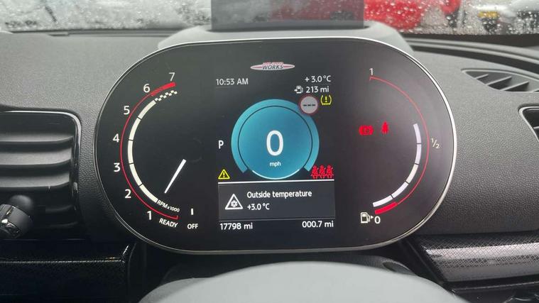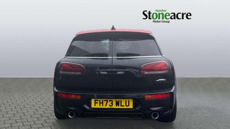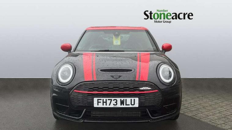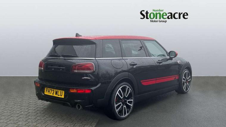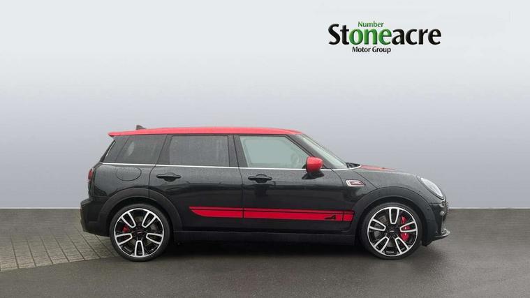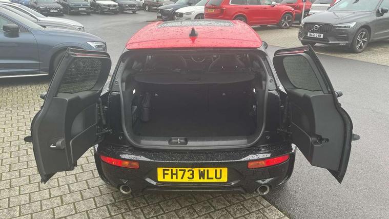 Automatic start/stop function with brake energy recuperation, Cruise control with brake assist, Digital dashboard display, Electro-mechanical speed dependant steering assistance, Instrument cluster, On board computer, 8 Speed steptronic sport transmission including electronic gear shifter and steering wheel paddles, All Wheel Drive (AWD), Double Vanos system, Fully variable valve control, High precision injection, Performance Control, Sports suspension, Chrome fuel filler cap, Dynamic brake lights, Electric windows, Heated rear window, Heated windscreen washer jets, John Cooper Works - aerodynamic kit (front and rear apron, spoiler), front and rear sport bumpers and part-painted side sills with door sill finishers, John Cooper Works entry sills, John Cooper Works rear spoiler, LED headlights with closed ring as daytime driving lights, LED rear light with union jack design, Radiator grille piano black border with honeycomb structure in matt black with John Cooper Works logo above an individual grille struct in chilli red, Rain sensor with auto headlights, Rear fog lights, Rear side wing doors, Rear window wiper, Rear wing door, Side scuttle panel with integrated indicator, Side scuttle with MINI John Cooper Works logo in high gloss black with red border, Split rear doors, Sun/heat protection glass, Third brake light, Twin exhaust tailpipe, White indicator lenses, 12V Accessory socket in centre console, 3 seat bench in 2nd row, 360L luggage compartment capacity, 4 lashing eyes in luggage compartment, 60/40 split folding rear seat, Anthracite headlining with grab handles and clothes hooks, Chrome interior highlights, Cupholders, English handbook, Floor mats, Front and rear head restraints, Glove compartment, Height and length steering column adjustment, Interior lighting with 12 basic colours selectable via toggle switch in roof, John Cooper Works leather gearshift lever and handbrake gaiter, John Cooper Works sports seat with integrated headrest, adjustable thigh support and John Cooper Works logo, LED reading lights, vanity mirror lights, front foot well light and spotlight on front seats, Manual passenger seat height adjustment, Mechanical seat adjustment, driver seat height adjust, forward/back and front seats backrest, Multifunction steering wheel, Nappa leather steering wheel with JCW badge, Paddle shifts, Rubberised stainless steel pedals, Single front passenger seat, Storage compartments in doors, Sunvisors with vanity mirrors, Toolkit, Driving Assistant pack - Mini Clubman, Piano black exterior pack - Clubman JCW, Premium plus pack - Clubman JCW, 17" front sport brake with 4 piston fixed calliper, 2 tone horn, 3 point seatbelts on all seats, 6 Airbags - front, side, head and seat belt tensioners, Anti-lock braking system (ABS), Child locks on rear doors, DSC - Dynamic Stability Control, Electronic handbrake, Front and rear disc brakes, Red brake callipers with John Cooper Works logo, Torsen mechanical limited slip differential, Tyre pressure monitoring system, Alarm system with tilt sensor, monitoring doors, bonnet interior and tailgate, Auto drive away locking, Deadlocking function, Electronic vehicle immobiliser, Locking wheel bolts, Remote central locking, Start/stop toggle with keyless go,