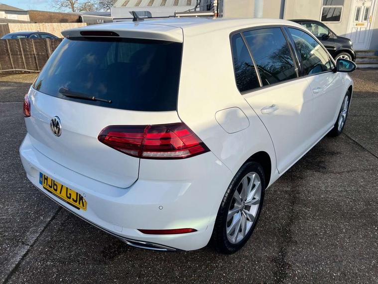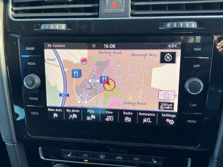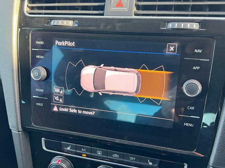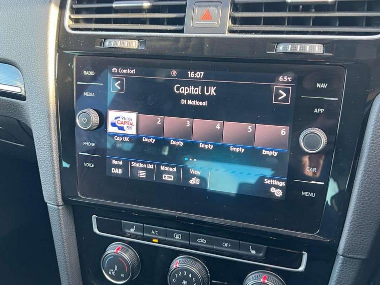 'Lights On' Reminder warning buzzer, 8" touch screen, Adaptive Cruise Control with pedestrian detection and speed limiter, App-Connect, Bluetooth hands free telephone connection, Brake pad wear indicator warning light, Driver alert system, Driver profile selection, Exterior temperature gauge, Front assistant collision mitigation, Instrument cluster in white, Multifunction computer, PAS - speed related, Rev counter, Trip and service interval display, Ultrasonic front and rear optical and audible parking sensors, Warning buzzer and light for front seatbelts unfastened, Lowered sports suspension, XDS electronic differential lock, CD/MP3/WMA, USB and SD card reader, aux-in, Composition media system, DAB Digital radio, Auto dimming rear view mirror, Automatic coming/leaving home lighting function, Automatic headlights, Black front air intake and radiator grille with chrome insert, Black rear diffuser, Body colour bumpers, Body colour door handles, Body colour door mirrors, Chrome grille surround, Electric front windows, Electric rear windows, Electrically adjustable and heated door mirrors, Heat insulated tinted glass 65% light absorbing from B pillar back, Heated rear windscreen, LED daytime running lights, LED front fog lights with static cornering light function, LED rear lights, Rain sensor, Rear roof spoiler, Rear windscreen washer and wiper with interval delay, 12V socket in luggage compartment, 3 rear headrests, 3 spoke steering wheel, 60/40 split folding rear seat, Bag hook in luggage compartment, Boot lashing points, Cooled glovebox, Courtesy light delay, Cover for storage compartment in centre, Dust/pollen filter, Front + rear carpet mats, Front centre armrest with storage box and rear air vents, Front passenger drawer stowage, Front passenger seat height adjust, Front seat back storage pockets, Grab handles, Height/reach adjust steering wheel, Illuminated vanity mirrors, Isofix preparation for 2 rear child seats, Load through provision with rear centre armrest and cupholders x2, Luggage compartment cover, Luggage compartment lighting, Multifunction leather steering wheel with leather gear knob/handbrake grip, Overhead storage box, Pearl grey headlining, Storage box in luggage compartment, Storage compartments in doors, Sun visors, Variable boot floor, height adjustable and removable, Ambient lighting pack - Golf, Mirror pack - Golf, 3 point height adj front seatbelts + pretensioners, 3 rear 3 point seatbelts, ABS, Automatic post collision braking, Child locks on rear doors, Driver/Front Passenger airbags, Driver/Passenger whiplash optimised head restraints, Drivers knee airbag, Electronic parking brake with auto hold, ESP with EDL + ASR, Front and rear curtain airbags, Front passenger airbag deactivation, Front side airbags, Pre crash system, Tyre pressure monitor, Alarm with interior protection, Electronic engine immobiliser, Remote central locking with 2 remote folding keys, Chrome-plated light switch surround, Piano black centre console, Tumbler decorative inserts, Steel space saver spare wheel,