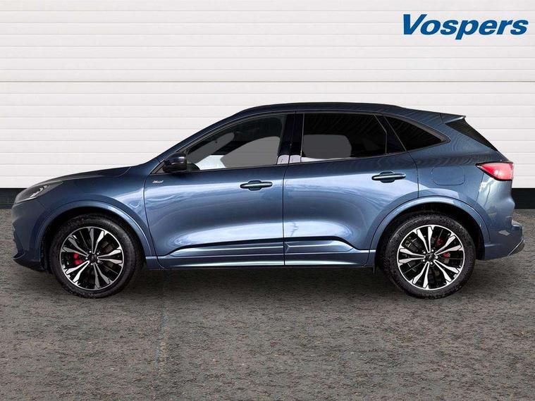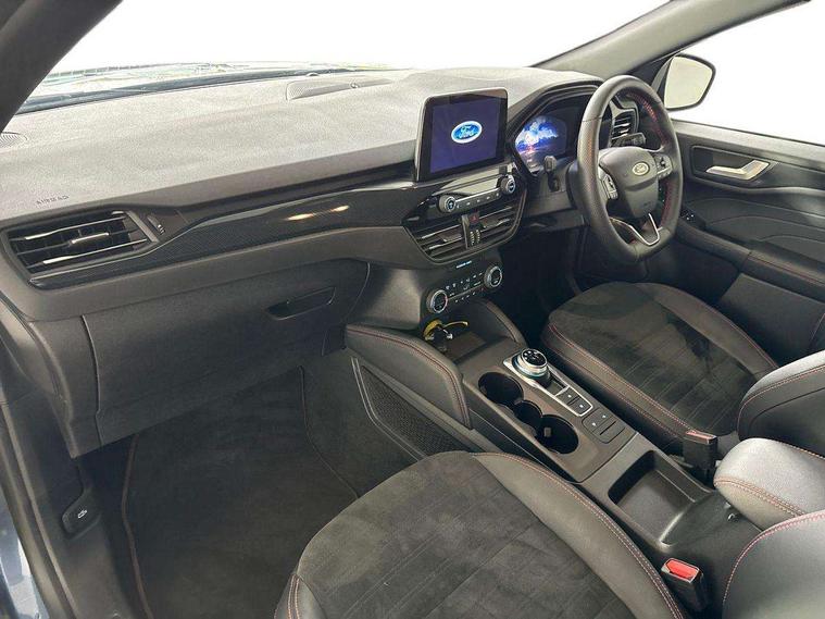 12.3" digital colour instrument cluster, Ford easy fuel, Ford SYNC 3 with 8" TFT LCD touchscreen, App Link, andriod auto/apple carPlay, emergency assistance and navigation with Ford pass connect, Front and rear parking sensors, Hands free power tailgate, Lane keeping aid with lane departure warning, Power assist steering, Rear view camera, Selectable drive modes, Service interval indicator, Sports suspension, Twist beam rear suspension, B&O premium audio system with 10 speakers and subwoofer, 2 USB ports, DAB radio/CD, Auto headlamps with high and low beam, Black roof rails, Day/night rear view mirror, Front LED fog lamps, Large rear spoiler, LED daytime running lights, LED rear lights, Power folding heated door mirrors with puddle lights, Power front/rear windows with global close, Power opening panoramic roof, Privacy glass, Quickclear heated windscreen, Rear side wing doors, Rear wiper, ST Line body styling kit with unique front and rear fascia and bumper, rear painted diffuser, front painted skid plates, dark mesh upper grille, ST Line front scuff plates, Third brake light, Twin exhausts, 10 way power adjustable drivers seat, 2nd row sliding seats with 60:40 split, 8 way manual passenger seat including lumbar support and height adjust, Alloy pedals, Centre console with electronic parking brake, Dark headlining and pillars, Electronic automatic temperature control (EATC), Flat bottomed leather steering wheel in sensico with red stitching, Front and rear head restraints, Heated passenger and driver seats, Heated rear seats, Heated steering wheel, Partial premium touch sensico leather upholstery with black cloth inserts and red stitching, Rear charging point, Single front passenger seat, Sports seats, ST Line front and rear floor mats, 3x3 point rear seatbelts, Airbags - front driver/passenger, front and rear curtain, Drivers knee airbag, Electronic stability control (ESC) and ABS, Ford MyKey Gen 2 safety system, Manual child proof rear door locks, Post collision braking, Pre collision assist with autonomous emergency braking, Rear seat Occupancy alert, Red brake calipers, Tyre pressure monitoring system, Engine immobiliser, Keyless entry and Ford power start button (Keyless start), Locking wheel nuts, Remote powered central double locking doors, Thatcham category 1 alarm,