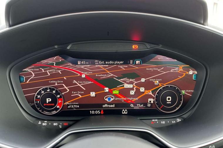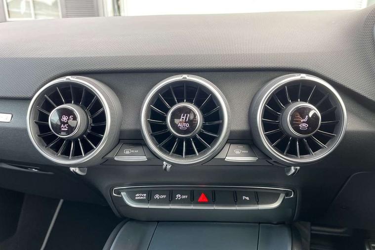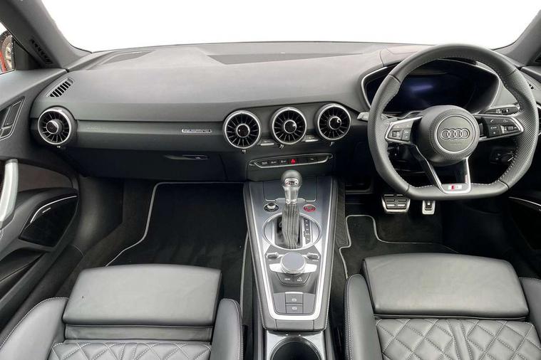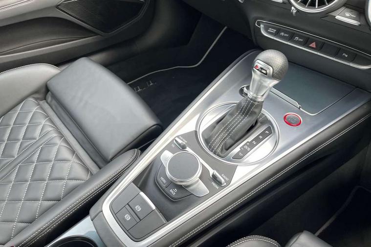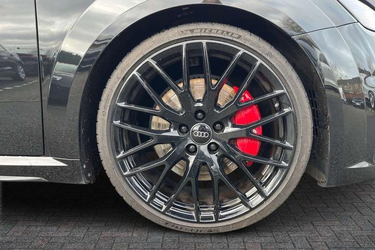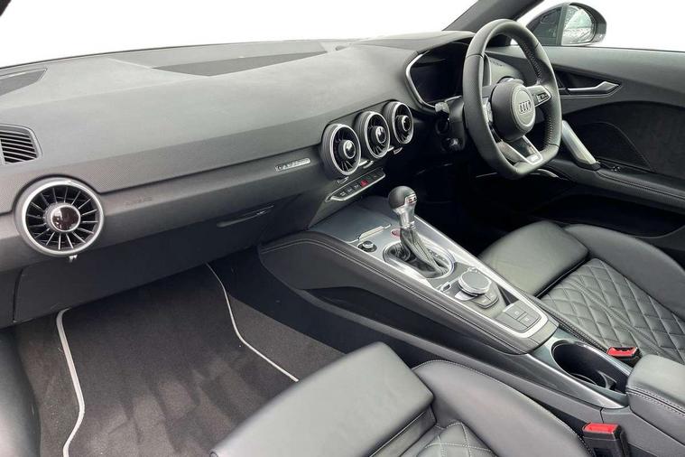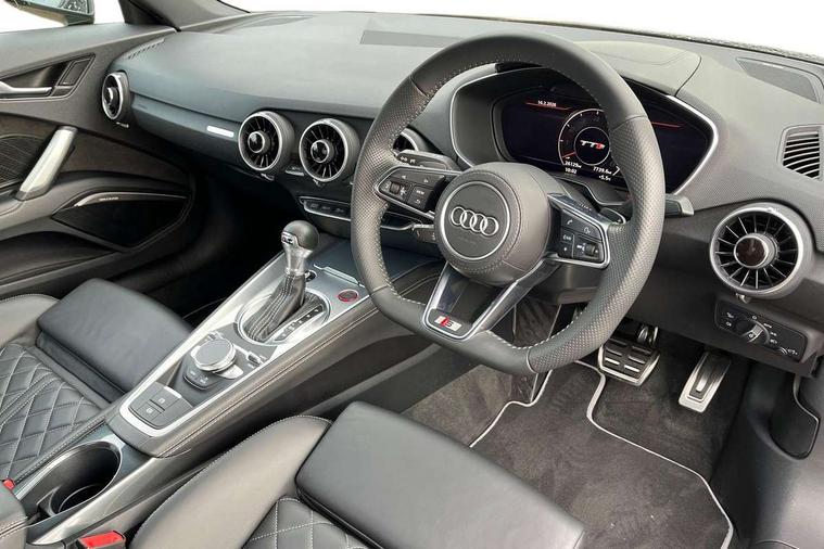 Audi drive select with 4 Pre configured modes, Audi Phone Box with wireless charging - Qi enabled compatible phone and additional bluetooth interface, Audi smartphone interface, Audi Virtual Cockpit with sport gauge, Cruise control + speed limiter, Emergency call service, Mobile phone preparation with bluetooth interface, Progressive power assisted steering, Service interval indicator, Start/Stop system with energy recuperation, TP memo, Audi magnetic ride, TTS suspension, AM/FM radio, Audi Sound System with 9 speakers, Bluetooth audio streaming, DAB Digital radio, MMI Radio with CD player and SD/XC card slot, Audi Beam uses LEDs to project the Audi Sport logo, Auto dimming rear view mirror, Auto headlight range control, Black door mirrors, Dark privacy glass from B-pillar backwards, Electric folding door mirrors, Electric front windows, Electrically adjustable and heated door mirrors with integrated LED side indicators, Green tinted heat insulating glass, LED 3rd brake light, LED daytime running lights, LED headlights with LED rear lights + dynamic rear indicators, Light and rain sensors, Rear boot, Sunband for windscreen, 12V socket, 2 rear seats, 3 spoke flat bottomed contour leather multi-function TTS sport steering wheel and TTS badging, 4 way electric lumbar support for driver and front passenger, Black headlining, Deluxe auto air conditioning with integrated digital display, Door sill trims with aluminium inlay and TTS logo, Front centre armrest, Front passenger seat, Front super sports seats, Heated front seats, Height/reach adjust steering wheel, Integrated head restraints, ISOFIX child seat mounting for front passenger seat with airbag deactivation, Manual adjustment of seat height, fore/aft position, seat angle, seat depth and backrest angle, Perforated leather gearknob in black, Rear head restraints, Rear top tether child seat ISOFIX attachment, Split folding rear seat, Stainless steel pedals, Tool kit, Black styling pack - TT, Leather pack - TTS, LED interior light pack - TTS, Non smoking pack - TT/TT RS, Technology pack without Audi phone box - TT, 3 point front seat belts, ABS, ASR traction control, Curtain airbags, Driver and front passenger airbag with front passenger airbag deactivation, EDL traction control, Electromechanical parking brake, ESP, First aid kit, Front side airbags, Head airbags, Hill hold assist, Seatbelt warning, Tyre pressure loss indicator, Warning triangle, Anti theft alarm, Anti theft wheel bolts, Immobiliser, Keyless Go, Remote central locking, Matt brushed aluminium inlays, Tyre repair kit,