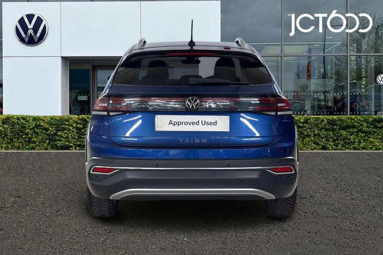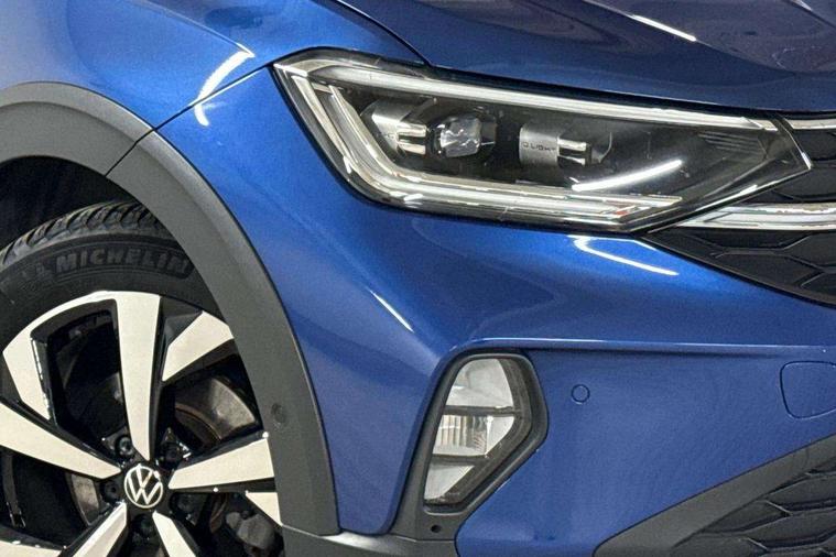 Advanced driver attention and drowsiness monitor, App-Connect including App-Connect Wireless, Digital cockpit pro - 10.25" high resolution TFT dash display screen with customizable menus and information, e-Call (emergency call), Power Steering, Travel assist including emergency assist, Washer fluid level indicator, Wireless Charging including Bluetooth, Rear shock absorption, Start-stop system with battery regeneration (recuperation - energy recovery during braking), Digital radio reception (DAB+), Diversity antenna for FM reception, WeConnect plus, Ambient lighting with logo projection, Aspherical driver's exterior mirror, Auto headlights, Body coloured bumpers and radiator grille with chrome trim and front fog lamps with chrome bezel, Dual chrome twin tailpipes on left and right, Electric windows, External USB type C socket and charging sockets, LED rear combination lamp, LED third brake light, Left convex exterior mirror, Power folding adjustable/heated exterior mirrors and front passenger exterior mirror lowering function, Rear fog light on one side, reversing light on both sides, Rear side wing doors, Rear wash/wipe with intermittent wipe setting, 12V socket in centre console, 2 front reading lights, 3 rear head restraints, 3 seat bench in 2nd row, Air care climatronic air conditoning system with active combination filter and 2-zone temperature control, Black carpets, Child seat anchor for child seat system i-Size, 2x top tether and child seat anchor in front on front passenger side, Chrome bezel for instrument cluster, vents, door handles + gear shift, Driver and front passenger seat height adjustment, Front + rear carpet mats, Front centre armrest, Front footwell illumination, Front sports comfort seats, Height and reach adjustable steering wheel, Interior ambient lighting and surround lighting, Leather trimmed gear knob, Leather wrapped multifunction steering wheel, Luggage compartment floor, Luggage compartment light, Lumbar support for driver's and front passengers seat, Single front passenger seat, Split folding backrest with centre armrest and unsplit rear seat bench, Storage compartment under front seats, Sun visors with illuminated vanity mirrors, Chrome Package - Taigo, Drivers assistance pack - Taigo, IQ.LIGHT - LED matrix headlights pack - Taigo, Light and sight pack - Taigo, 2 x 3-point seatbelts/outer rear seats with ECE label, 3-point seat belts in front with pretensioner and height adjustment, 3-point seatbelt for centre rear seat, Adaptive driver and front passenger airbags with passenger airbag deactivation function, Driver and front passenger safety-optimised head restraints, Electronic stability control, Extended and predictive pedestrian/ cyclist protection, Front and rear disc brakes, Front curtain and side airbags with center airbag, Hill start assist, Manual rear child locks, Single tone horn, Tyre pressure loss indicator, Anti-theft alarm system with interior monitoring, backup horn, and towing protection, Anti-theft wheel bolts, Low rolling resistance tyres,