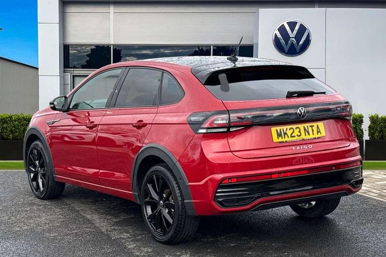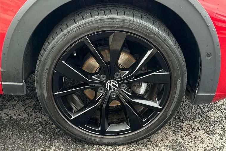 Adaptive cruise control, App-Connect including App-Connect Wireless, Digital cockpit pro - 10.25" high resolution TFT dash display screen with customizable menus and information, Driver alert system, Driving profile selection, e-Call (emergency call), Power Steering, Travel assist including emergency assist, Washer fluid level indicator, Wireless Charging including Bluetooth, Start-stop system with battery regeneration (recuperation - energy recovery during braking), XDS electronic differential lock for improved traction and handling, Digital radio reception (DAB+), Diversity antenna for FM reception, WeConnect plus, Ambient lighting with logo projection, Aspherical driver's exterior mirror, Auto headlights, Body coloured bumpers, Body coloured exterior mirror housings and door handles, Bumpers in R-Line style, Electric windows, External USB type C socket and charging sockets, Front fog lamps with cornering function, Front scuff plates with R-Line logo, Headlight range control, LED headlamps, LED rear combination lamp, LED third brake light, Left convex exterior mirror, Power folding adjustable/heated exterior mirrors and front passenger exterior mirror lowering function, Rear fog light on one side, reversing light on both sides, Rear side wing doors, Rear wash/wipe with intermittent wipe setting, 12V socket in centre console, 2 front reading lights, 3 rear head restraints, 3 seat bench in 2nd row, Air care climatronic air conditoning system with active combination filter and 2-zone temperature control, Black carpets, Black roof lining, Child seat anchor for child seat system i-Size, 2x top tether and child seat anchor in front on front passenger side, Chrome bezel for instrument cluster, vents, door handles + gear shift, Driver and front passenger seat height adjustment, Front + rear carpet mats, Front centre armrest, Front footwell illumination, Front sports comfort seats, Height and reach adjustable steering wheel, Interior ambient lighting and surround lighting, Karoso artvelours cloth upholstery, Leather trimmed gear knob, Leather wrapped multifunction steering wheel, Luggage compartment floor, Luggage compartment light, Lumbar support for driver's and front passengers seat, Seat covers in grey + titanium black, Single front passenger seat, Split folding backrest with centre armrest and unsplit rear seat bench, Stainless steel pedals, Storage compartment under front seats, Sun visors with illuminated vanity mirrors, Chrome Package - Taigo, Drivers assistance pack - Taigo, Light and Sight pack including High beam assist - Taigo, 2 x 3-point seatbelts/outer rear seats with ECE label, 3-point seat belts in front with pretensioner and height adjustment, 3-point seatbelt for centre rear seat, Driver and front passenger airbags with front passenger airbag de-activation, front side and curtain airbags, Driver and front passenger safety-optimised head restraints, Electronic stability control, Extended and predictive pedestrian/ cyclist protection, Front and rear disc brakes, Front curtain and side airbags with center airbag, Hill start assist, Manual rear child locks, Single tone horn, Tyre pressure loss indicator, Anti-theft alarm system with interior monitoring, backup horn, and towing protection, Anti-theft wheel bolts, Grey anodised matte decorative inserts in dash and front door panels, Low rolling resistance tyres,