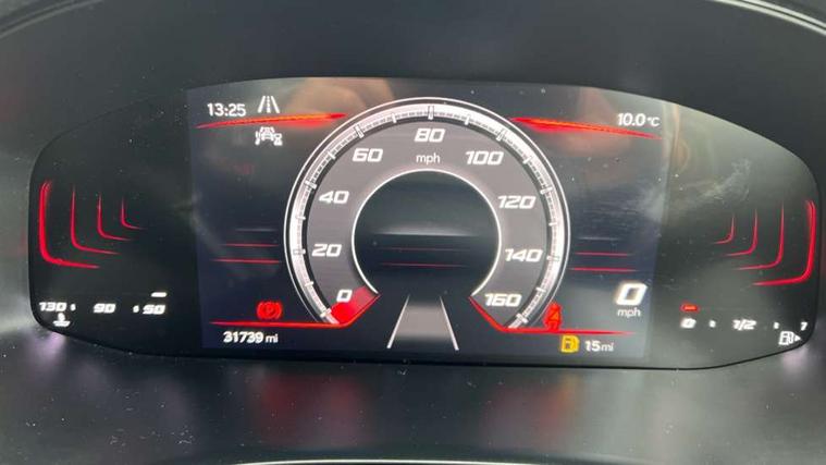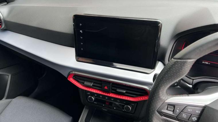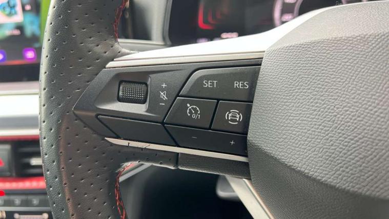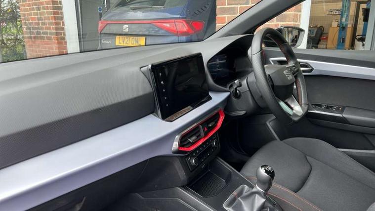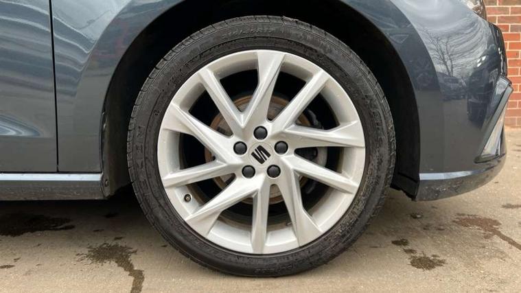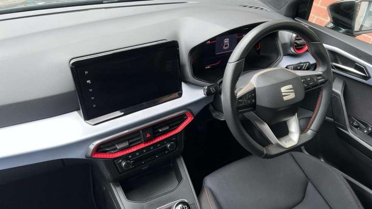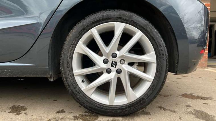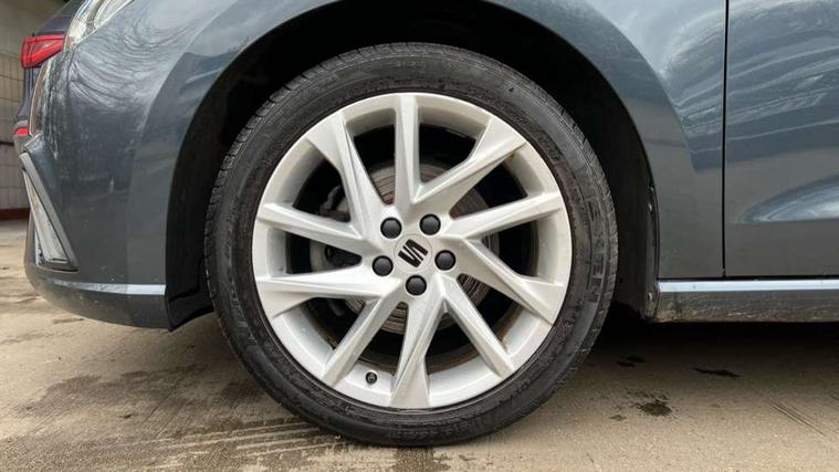 'Lights On' Reminder warning buzzer, 8" Digital cockpit, 9.2" touchscreen navigation system with type C USB socket, Voice control and DAB/AM/FM radio, Auto start and stop system, Bluetooth audio streaming with handsfree system, Digital clock, E-call, Full link smartphone integration with mirror link, wireless apple carplay, Google android auto + USB Type C cable for apple and android devices, Lane assist, Low fuel warning light, Outside temperature gauge, Power Steering, Seat connect with safety, service, remote and online, SEAT drive profiles and ECO function, SEAT logo boot release, Speed limiter, Trip computer, Sports suspension, Auxiliary input socket, Radio/MP3 player, SD card slot, Steering wheel mounted controls, Anti theft roof antenna, Auto dimming rear view mirror, Automatic rain sensing wipers, Black door mirrors, Body colour bumpers, Body colour door handles, Brilliant black window surrounds, Dark tinted rear windows, Electric adjustable/heated/folding door mirrors, Electric front windows, Electric headlight adjustment, Electric rear windows, Front/rear fog lights, FULL LED automatic headlights with dynamic headlight range control, coming and leaving home, LED daytime running lights, LED tail lights, Rear roof spoiler with FR twin exhausts, Rear side wing doors, Rear wiper, Third brake light, 3 seat bench in 2nd row, 60/40 split folding rear seat, Ambient interior lighting, Chrome detailing and black headlining, Cloth upholstery, Dual zone climate control with combination filter, Front courtesy lights, Front cupholders x 2, Front reading lights, Gear shift indicator, Glovebox, Height adjustable front and rear headrests (five), Height adjustable front seats, Height/reach adjust steering wheel, Illuminated air vent surrounds, Illuminated boot, Instrument lighting with brightness control, Isofix, Leather multifunction flat bottomed sports steering wheel, Passenger sunvisor, Single front passenger seat, Sports seats, Sunvisors with mirror and driver side card holder, 3 point seatbelts on all 3 rear seats, ABS, Active front headrests, Child locks on rear doors, Electronic stability control, Energy recovery system, Front assist forward collision warning and autonomous emergency braking, Front driver and passenger side airbags with curtain airbag and front passenger airbag deactivation, Hill hold control, Multi-Collision braking, Seat belt reminder for front and rear seats, Tiredness recognition system, Tyre pressure monitoring system, Electronic engine immobiliser, Locking wheel bolts, Perimeter alarm and interior monitoring with backup horn and tow away protection, Remote central locking + deadlocks, 17" Alloy wheels in Brilliant silver,