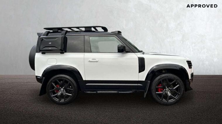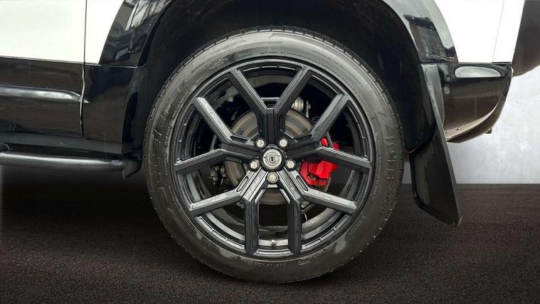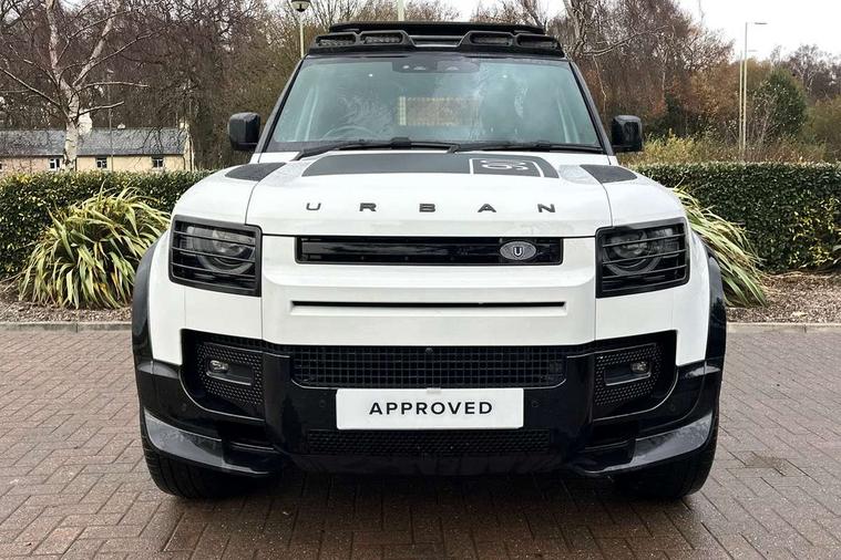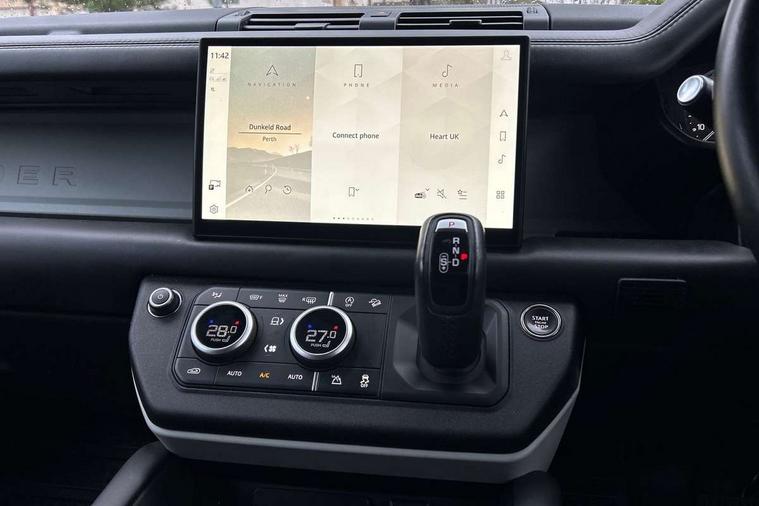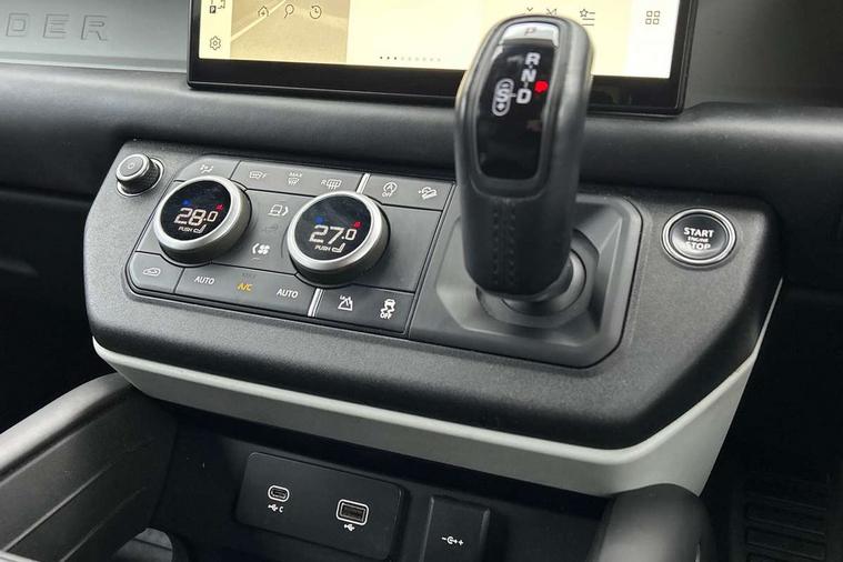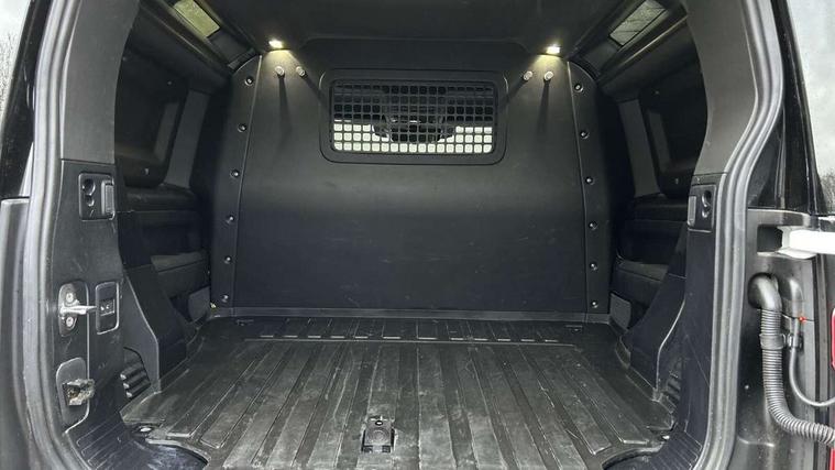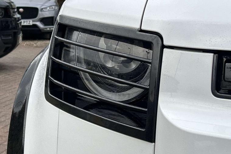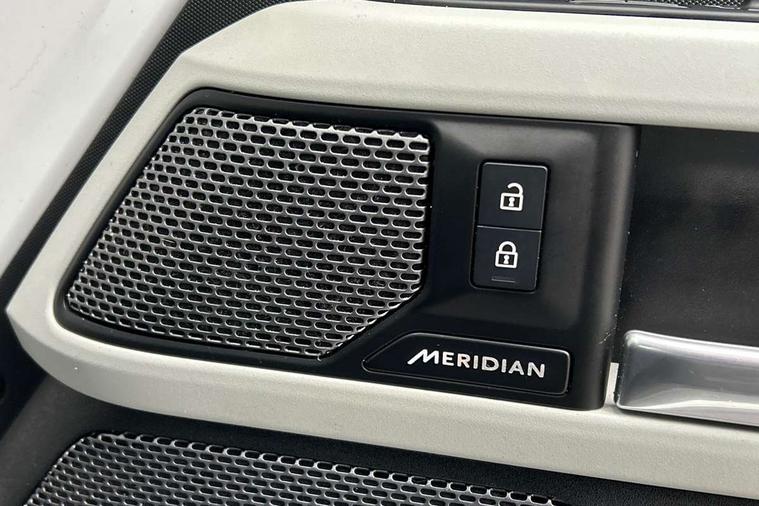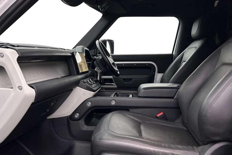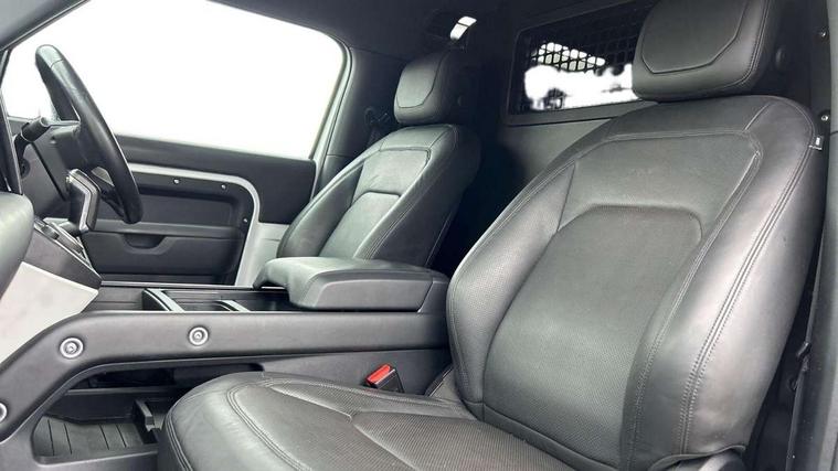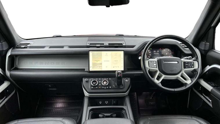 Customer Configurable Autolock, 11.4" touchscreen, 360 parking aid, 3D Surround Camera with 360 View, 180 Rear View, Front Traffic Detection, Forward Vehicle Guidance, Tow Hitch Assist and clear sight Ground View, Adaptive cruise control, Blind spot assist, Brake Hold, Driver condition monitor, Electric power assisted steering (EPAS), Lane keep assist, Low traction launch, Pivi pro connected, Rear collision monitor, Rear traffic monitor, Traffic sign recognition adaptive speed limiter, Trip computer, Tyre pressure monitor, Wade Sensing, Android Auto, Apple CarPlay, DAB Radio (Digital Audio Broadcasting), Meridian 280W sound audio system with 7 speakers with subwoofer, Alpine lights, Assisted tailgate, Auto High Beam Assist, Automatic headlight levelling, Automatic headlights and rain sensitive front wipers, Centre high mounted stop light, ClearSight interior rear view mirror, Electric heated/power fold door mirrors with approach lights and auto dimming driver side, Electric windows with one touch open/close and anti-trap, Exterior signage panel, Follow me home lighting, Front fog lights, Heated rear window with timer, Heated windscreen, LED tail light, Privacy glass, Puddle lights, Rear fog lights, Rear wash wiper, Side-hinged tailgate, Standard roof, Standard tread plates, 14 way heated and cooled electric adjustable memory front seats with 4 way manual headrests, Additional lashing points, Dual zone climate control, Durable rubber cabin flooring, Electric adjustable steering column, Footwell lights, Full height bulkhead behind row 1 seats, Glovebox storage, High sided rubber mats, Loadspace cover, Loadspace hooks, Loadspace rubber mat, Overhead stowage for sunglasses, Rear centre headrest, Rear reading light, Standard seating configuration, Sunvisors with illuminated vanity mirrors, Twin front cupholders with cover, Upgraded loadspace LED lighting, Online pack - Defender with data plan, Brake pad wear indicator, Electronic traction control, Emergency braking, Front airbags, with passenger seat occupant detector, Power operated child locks, Remote for (e-Call, Optimised assistance call, InControl app, Climate, beep and flash and door), Seat belt reminder, Intrusion sensor, Keyless entry system, Locking wheel nuts, 8 speed automatic transmission, ABS and EBA, All wheel drive, CBC - (Cornering brake control), Dynamic stability control, Electronic brake force distribution, Electronic park brake, Gradient acceleration control, Hill Descent Control, Hill start assist, Particulate filter (DPF), Push button start, Roll stability control, Trailer stability assist, Twin speed transfer box (high/low range), Extended leather upgrade,