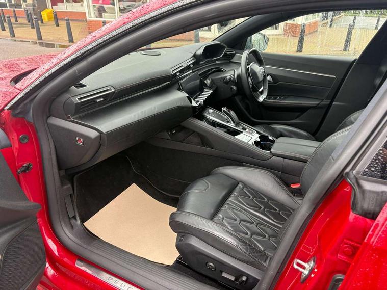 3D connected navigation, Bluetooth telephone facility, Driver attention alert system, Eco coaching, EPAS, Exterior temperature indicator with ice warning, Mirror screen with mirror link, apple carplay and android auto, Multi function trip computer, PEUGEOT i-Cockpit, PEUGEOT i-Cockpit with 10.0" high definition (HD) capacitive touchscreen, PEUGEOT i-Cockpit with configurable 12.3" Head-up digital instrument panel, PEUGEOT SOS and assistance, Push button start, Service interval indicator, Voice recognition, Mode 3 type 2 cable for wallbox charging, 2 USB sockets in rear, 2x USB sockets in front, 8 Speakers, DAB Digital radio, Radio/CD with MP3 compatability, 2 X Rear number plate lights, Auto self levelling headlights, Automatic activation of hazard warning lights, Body colour door handles, Body coloured bumpers, Dark tinted rear side windows + tailgate window, Door mirror mounted LED courtesy approach lights, Electric adjustable heated door mirrors, Electric folding door mirrors with blind spot detection and electrochrome auto dimming function, Front and rear electric windows with one touch/anti pinch, Front windscreen wiper with magic wash cleaning system, Full LED headlights with static cornering light functionality includes rear full LED 3D rear peugeot signature claw effect lights, Gloss black B and C pillar and aerodynamic deflector trim, Gloss black rear cluster connecting strip, Gloss black side window trim, GT model designation badging, Headlights left on audible warning, Heated rear windscreen with integrated antenna, LED daytime running lights, LED front indicators, LED side indicator lights integrated into door mirrors, Memory function for door mirrors, Model designation badges front and rear, Nera black door mirrors, Radiator grille chrome chequered and chrome edge trim, Rear fog lights, Rear lower bumper diffuser effect trim in gloss black, Rear reversing lights, Smart electric tailgate, Stainless steel door sill scuff plates, 1/3 to 2/3 split folding rear seats, 2x Rear coat hooks, 3x Isofix child seat fittings in the front passenger and outer rear seats, Aikinite contrast stitching to armrest, front centre console, door panels and dashboard facia, Aluminium pedals and footrest, Ambient lighting to storage compartments, Automatic gear lever in full grain leather and satin chrome, Blue ambient lighting to front door panels and front centre console, Central front armrest with butterfly wing opening and illuminated storage compartment, Driver and front passenger seat adjustable cushion nose, Driver and front passenger seat electric lumbar adjustment, Dual zone automatic air conditioning, Electric power steering with reach and rake adjustable steering column, Flocked front door pocket interior, Flocked glove box interior with illumination, Front and rear carpet mats in black with copper stitch, Front central console with two cup holders, Front seat back map pockets, Mistral full grain perforated leather steering wheel with aikinite stitch detail and satin chrome 'GT' emblem, PEUGEOT i-Cockpit : compact sports steering wheel, Piano keys chrome plated toggle switches to access touchscreen functions, Rear armrest with ski flap and two cup holders, Rear centre console ventilation system, Roof lining - Mistral black, Drive assist plus pack - 508, Interior LED lighting plus pack - 508, Safety pack - 508, Safety Plus Pack - 508, Visibility pack- 508 GT/GT Premium, ABS/EBFD/EBA, Active bonnet, Adaptive driver and front passenger airbags with passenger airbag deactivation function, Driver and passenger side/thorax airbags, Electric child locking functionality on rear windows and doors, Electronic parking brake + Hill assist, Electronic Stability Programme, Front and rear curtain airbags, Front and rear disc brakes, Front optimised safety headrests and rear retractable headrests (x3), height adjustable, Front three point retractable seatbelts height adjustable with pre tensioners and force limiters, Indirect tyre under inflation detection, Passenger airbag deactivation switch to allow for child seat fitment, Rear three-point retractable seatbelts (x3) with pre-tensioners and force limiters in the outer rear seats, Seatbelt warning, Warning triangle, Automatic door locking when moving off, Driver plip action with isolated unlock function for drivers door, Locking wheel nuts, Perimetric and volumetric alarm with lift and tilt sensor, Peugeot open and go system with keyless entry/stop start button, Remote central locking with 2 remote folding keys, Carbon effect front and rear dashboard and door panel finish, Intricate stitch dashboard facia, 18" Sperone diamond cut two tone alloy wheels, Tyre puncture repair kit,