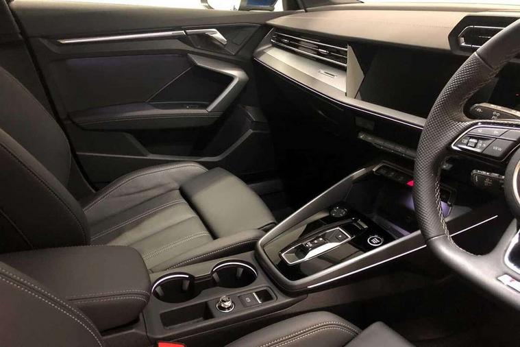 Adjustable speed limiter, Audi drive select, Audi smartphone interface with app store includes wireless Apple carplay, Android auto and Amazon alexa integration, Audi virtual cockpit plus - 12.3" full HD resolution dynamic digital instrument cluster, Automatic start/stop system with recuperation, Bluetooth interface, Camera based traffic sign recognition, Collision avoidance assistant, Cruise control, Distraction and Fatigue warning, e-Call (emergency call), Electromechanical power speed sensitive steering, Emergency assist, Lane departure warning system, MMI Navigation Plus with high resolution 10.1" colour touch screen display, Park Assist with parking system Plus, Service indicator, Trip computer, Voice control system with natural language interaction, Sports suspension, Audi Phonebox light with wireless charging, Audi sound system - 10 loudspeakers including centre loudspeaker and subwoofer, DAB Digital radio, USB ports with charging function in the rear, Acoustic glass windscreen, All weather light, Aluminium window trim, Auto dimming frameless rear view mirror, Automatic dynamic range control, Body colour exterior mirrors, Chrome exhaust tailpipes, Dipped beam, main beam, position light and turning light, Electrically adjustable/heated/folding/auto dimming door mirrors with integrated LED indications + kerb view function for passenger side, Exterior model badging, Front and rear side air inlets in grained matt black with dark liquid chrome frame, Front electric windows, Front radiator grill in high gloss dark chrome, Heat insulating glass windscreen, Illuminated door sills with aluminium inserts at the front with S logo, Intersection light, LED 3rd brake light, LED brake lights, LED daytime running x3, LED headlights with LED rear lights and dynamic rear indicators, LED rear number plate lights, LED reverse light, LED tail lights, Light and rain sensors, Manoeuvring light, Motorway light, Privacy glass - dark tinted rear window, rear door and side windows, Rear boot, Rear diffuser and grill in grained matt black with inlay in dark liquid chrome, Rear electric windows, Rear side wing doors, S line bumpers, Side S line emblems on front wings, Side sill trim in dark liquid chrome, Static cornering light, 12V socket and storage compartment in front centre console, 3 seat bench in 2nd row, 3 spoke flat bottomed leather multifunction sport steering wheel with gear shift paddles, 3-zone deluxe automatic air conditioning, 4 way electrically adjustable lumbar support for driver and front passenger, 40/20/40 split folding rear seat bench, Black cloth headlining, Black front and rear floor mats, Front and rear centre armrest in artificial leather with contrasting stitching on armrests and instrument panel, Front and rear headrests, Heated front seats, Height and reach adjustable steering wheel, Manual boot compartment lid, Manually adjustable front seats, Rear centre armrest with cupholder, S badging on the steering wheel, Seat side bolsters, Single front passenger seat, Stainless steel pedals and front footrest in black, Twin leather upholstery with front sports seats S embossed logo, Aluminium interior elements pack - A3, Multi-coloured LED interior lighting package with Multi-coloured contour lighting of instrument panel - A3, 3x3 point rear seat belts, Driver and front passenger airbag with passenger airbag deactivation, Electronic Stabilisation Control (ESC) including ABS, ASR and EDL, First aid kit with warning triangle and 2 safety vests, Front side airbags with head airbags and interaction airbag, Hill hold assist, Pre-sense front with pedestrian and cyclist detection, Seatbelt monitoring, Tyre pressure loss indicator, Anti theft alarm, Anti-theft wheel bolts, Electronically operated child locks, Immobiliser, Remote central locking with safelock, Black dashboard, Inlay in dark aluminium spectrum,