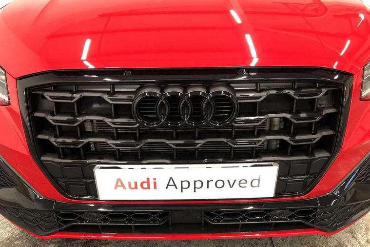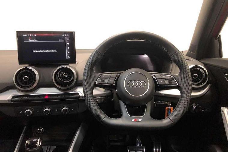 3D map display, Audi connect navigation and infotainment includes innovative services, Audi connect remote and control connects your vehicle to your smartphone, Audi drive select: S tronic - power steering assistance + engine + gearshift (modes: comfort, auto, dynamic, efficiency, individual), Audi smartphone interface - Apple carplay/Android Auto, USB connect, 2xSDXC card readers, voice control for navi, telephone, music and 3rd party apps, Audi virtual cockpit, Automatic start/stop system with recuperation, Bluetooth interface includes bluetooth audio streaming, Camera based traffic sign recognition, Cruise control, Distraction and Fatigue warning, E-call, Jukebox hard drive memory for music (10GB), Lane departure warning, MMI navigation plus with 8.8" touchscreen, Natural voice recognition, Power operated tailgate, Progressive steering, Rear parking sensors, Sport suspension, 6 passive loudspeakers, DAB Digital radio, USB type C port, Audi beam, Auto dimming rear view mirror, Black window trims, Bumper in full body colour paint finish, Electrically adjustable, folding, auto dimming and heated door mirrors with integrated LED side indicators, Front windscreen with grey tinted sunband, LED daytime running lights, LED headlights with dipped beam, high beam, position lights, indicators, LED rear lights, LED third brake light, Privacy glass - dark tinted rear and rear side windows from B-pillar backwards, Rear side wing doors, Rear wiper, Variable front intermittent wipers, Wheel arch trims in manhattan grey, 12V socket in front, 3 seat bench in 2nd row, 3 spoke flat bottomed multi-function leather sport steering wheel with gear shift paddles, 4-way electric lumbar support for front seats including manual seat height adjustment for both front seats, 60/40 split folding rear seat bench, Black carpets, Black cloth headlining, Front and rear head restraints, Front centre armrest, Front sport seats, Front/rear floor mats, Height/reach adjust steering wheel, Illuminated door sill trims with S logo, ISOFIX child seat mounting in front passenger and rear outer seats, Manual air conditioning, Single front passenger seat, Stainless steel pedals, Black styling pack - Q2, 3x3 point rear seatbelts, 6 airbags - Front, curtain and front side airbags, Electromechanical parking brake, Electronic stabilisation control including ABS, ASR and EDL, Front passenger airbag deactivation, Hill hold assist, Pre-sense front with pedestrian recognition, Seatbelt monitoring, Tyre pressure warning light with visual and acoustic warning, Warning triangle and first aid kit, Anti theft wheel bolts, Electronically operated child locks, Remote central door locking, Thatcham category 1 alarm, Aluminium interior element, Black dashboard, Gloss black centre console, Matt brushed aluminium trim inlays, Tool kit,