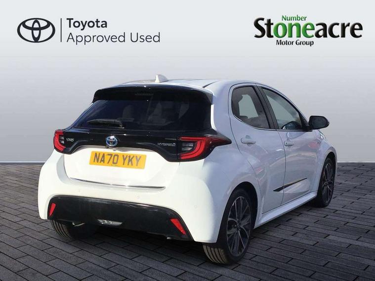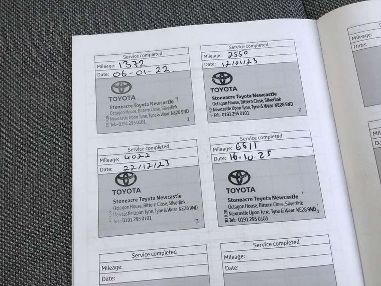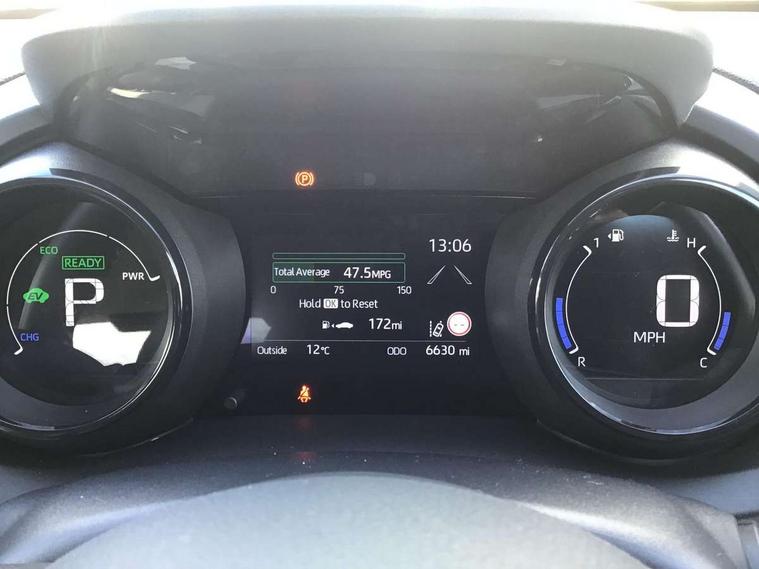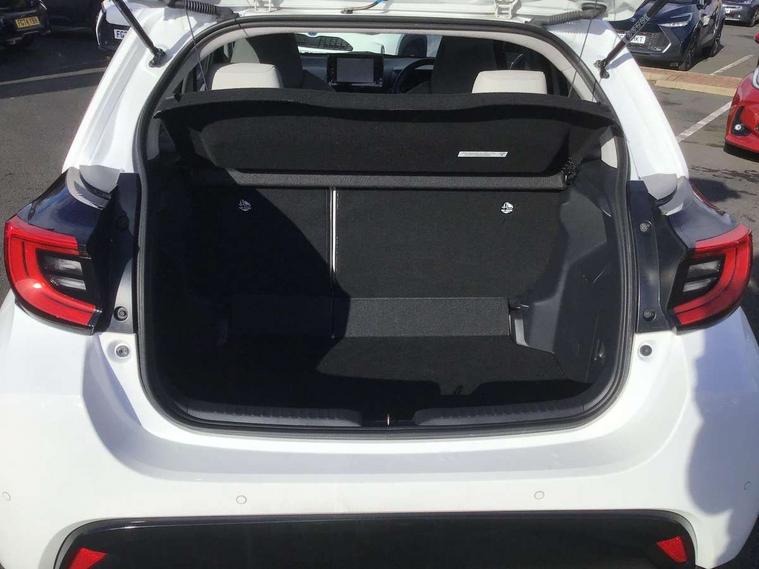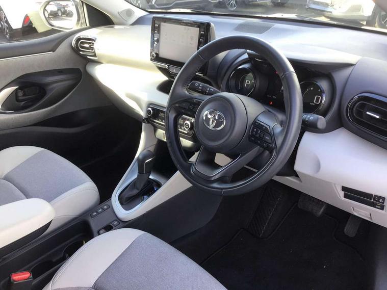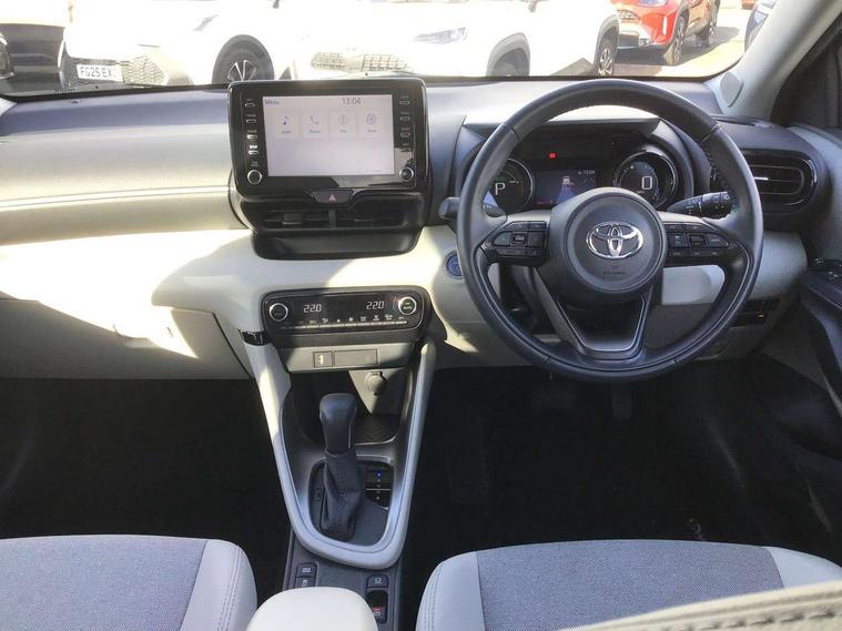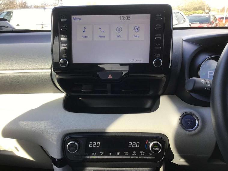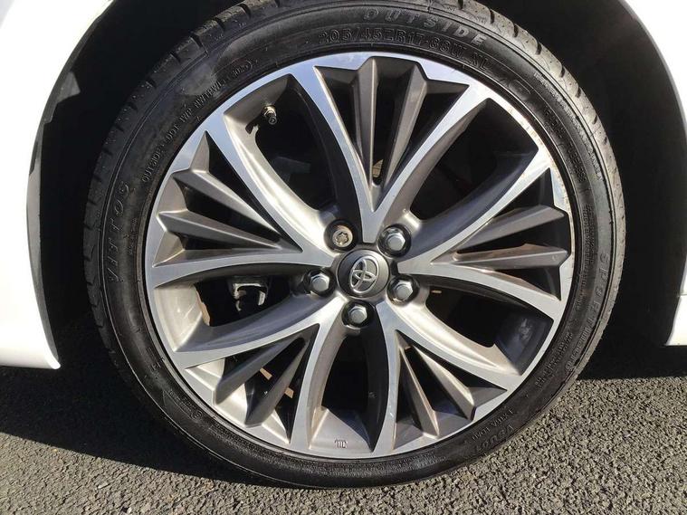 Adaptive cruise control, Adjustable speed limit with speed warning, Blind spot monitoring, Bluetooth connectivity, Colour binocular inspired displays with digital speedometer, E-call, Electric power steering, Front and rear parking sensors with intelligent clearance sonar and automatic braking, Hybrid energy display, Multi information display switches on steering wheel, Reversing camera, Smartphone integration with Apple CarPlay and Android auto, Vehicle Stability Control (VSC), 6 speakers, 8" Multimedia display touch screen, USB connection, Acoustic windscreen glass, Auto windscreen wipers, Automatic headlights, Automatically retractable door mirrors, Body coloured door mirrors, Electric adjustable heated door mirrors, Follow me home headlights, Front auto power windows with anti jam protection, Full LED rear lights, LED daytime running lights, LED front fog lights, LED Headlights, LED High mounted stop lamp, Painted front grille, Rear auto power windows with anti jam protection, Rear privacy glass, Rear spoiler, Satin lower front grille, Shark fin antenna, Turning signal integrated indicators in door mirrors, 3 adjustable rear headrests, 3 spoke leather steering wheel, 60/40 split folding rear seat, Active headrests, Adjustable boot height, Coat hooks in rear grab handles, Cup holders (2 front & door), Data Communication Module (DCM) connected services, Dual zone automatic air conditioning, Fabric seat with partial synthetic leather upholstery, Front armrest, Front sport seats, Glovebox, Height adjustable driver's seat, Height adjustable passenger seat, Isofix seat fixing, Leather gearshift, Map pockets on the backs of the front seats, Pollen filter, Shopping bag hooks, Tilt/telescopic steering column, 3 point seatbelts on all rear seats, ABS+EBD+Brake assist, Electronic parking brake, Emergency brake light system (EBS), Front passenger airbag on/off switch, Front seatbelt reminder, Hill start assist control (HAC), Rear child proof door locks, Rear seat belt reminder, Supplemental Restraint System (SRS) 8 airbags: Driver & passenger's airbags, dual side curtain airbags, side impact airbags, front centre airbag, Toyota Safety Sense 2, Precollison + Night time Pedestrian & Cyclist Detection, Lane Trace Assist, Auto High Beam, Intelligent ACC & Road Sign Assist, Tyre pressure warning system, Alarm/immobiliser, Keyless smart entry with push button start, Remote powered central double locking doors, Satin chrome interior styling, Soft touch instrument panel, Space saver spare wheel,