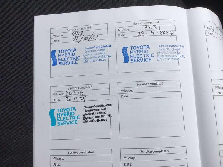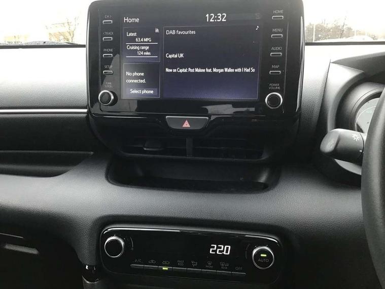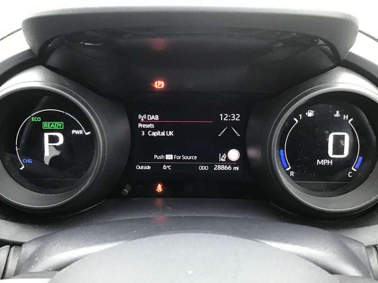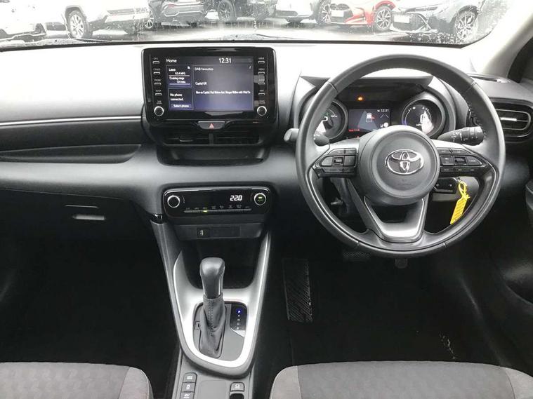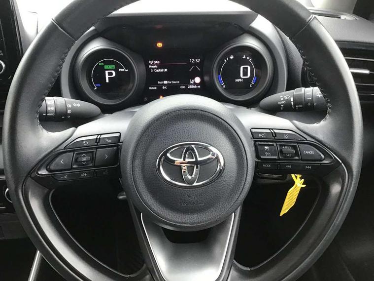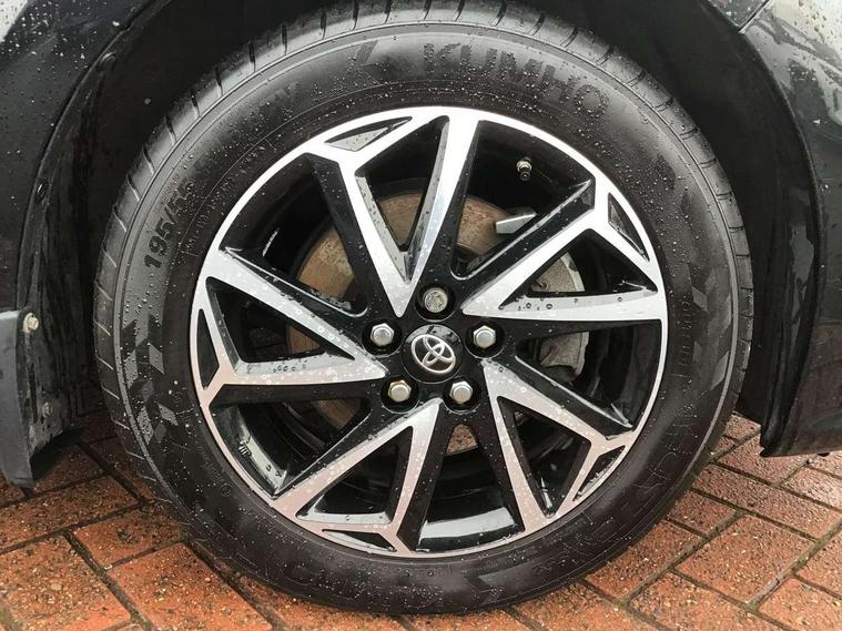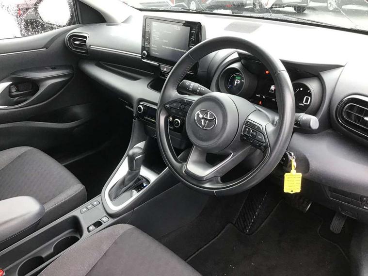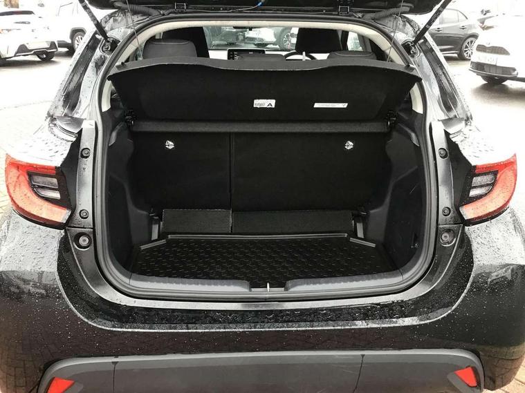 Adaptive cruise control, Adjustable speed limit with speed warning, Bluetooth connectivity, Colour binocular inspired displays with digital speedometer, E-call, Electric power steering, Hybrid energy display, Multi information display switches on steering wheel, Reversing camera, Smartphone integration with Apple CarPlay and Android auto, Tailgate, Voice recognition, Vehicle Stability Control (VSC), 4 speakers, 8" Multimedia display touch screen, USB connection, Acoustic windscreen glass, Auto windscreen wipers, Automatic headlights, Body coloured door mirrors, Electric adjustable heated door mirrors, Follow me home headlights, Front auto power windows with anti jam protection, Full LED rear lights, LED daytime running lights, LED front fog lights, LED front light guide, LED Headlights, LED High mounted stop lamp, LED Indicators, LED rear light guide, Manual headlight levelling, Painted chequered front grille, Rain sensor, Rear auto power windows with anti jam protection, Rear privacy glass, Rear side wing doors, Rear spoiler, Rear wiper, Shark fin antenna, Turning signal integrated indicators in door mirrors, Variable front intermittent wipers, 3 adjustable rear headrests, 3 spoke leather steering wheel, 60/40 split folding rear seat, Active headrests, Adjustable boot height, Auto air conditioning, Coat hooks in rear grab handles, Cup holders (2 front & door), Data Communication Module (DCM) connected services, Fabric upholstery, Front armrest, Glovebox, Grey roof lining, Height adjustable driver's seat, Isofix seat fixing, Leather gearshift, Pollen filter, Shopping bag hooks, Single front passenger seat, Tilt/telescopic steering column, 3 point seatbelts on all rear seats, ABS+EBD+Brake assist, Electronic parking brake, Emergency brake light system (EBS), Front passenger airbag on/off switch, Front seatbelt reminder, Hill start assist control (HAC), Rear child proof door locks, Rear seat belt reminder, Supplemental Restraint System (SRS) 8 airbags: Driver & passenger's airbags, dual side curtain airbags, side impact airbags, front centre airbag, Toyota Safety Sense 2, Precollison + Night time Pedestrian & Cyclist Detection, Lane Trace Assist, Auto High Beam, Intelligent ACC & Road Sign Assist, Tyre pressure warning system, 2x Master key, Alarm/immobiliser, Remote powered central double locking doors, Soft touch instrument panel, Space saver spare wheel,