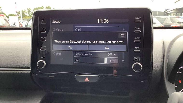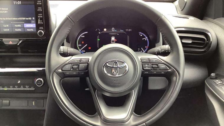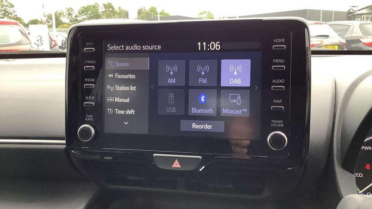 Tyre repair kit, Keyless smart entry with push button start, 6 speakers, DAB Digital radio, USB connection, 3x3 point rear seat belts, ABS+EBD+Brake assist, Driver and passenger central airbags, Driver and passenger front airbags, Driver and passenger side airbags, Electronic parking brake, Emergency brake light system (EBS), Pre-collision system with pedestrian and cyclist detection, Rear passenger side airbags, Supplemental Restraint System (SRS) 8 airbags: Driver & passenger's airbags, dual side curtain airbags, side impact airbags, front centre airbag, Traction control, Tyre pressure warning system, Acoustic windscreen glass, Aluminium roof rails, Auto high beam [AHB] with on/off switch, Auto windscreen wipers, Automatic headlights, Black Shark-fin antenna, Black upper front grille, Body colour door handles, Body colour rear bumper, Electric adjustable heated door mirrors, Follow me home headlights, Front and rear electric windows with auto up/down function, Front auto power windows with anti jam protection, LED daytime running lights guide, LED front fog lights, LED front light guide, LED projector headlights, LED rear light guide, Manually retractable door mirrors, Privacy glass, Rear auto power windows with anti jam protection, Rear LED lights with sequential indicators, 12v power outlet - front, 2x Rear coat hooks, 3 spoke leather steering wheel, 40:20:40 split folding rear bench seat, Auto air conditioning, Black roof lining, Centre console in light blue ambent lighting, Fabric upholstery, Footwell in light blue ambient lighting, Front console box, Front cup holders, Front head restraints, Glovebox, Height adjustable driver's seat, Height adjustable front passenger seat, Hooks for luggage holding belts, Leather gearshift, Light blue ambient lighting on front doors, Manual telescopic and tilting steering wheel, Mirror on driver and passenger sun visor, Rear cup holders, Rear head restraints, Soft tonneau cover, 7" Multi information display screen, 8.2" multimedia system with Smartphone integration with Apple CarPlay and Android auto, Bluetooth connectivity, Driver attention alert system, eCall emergency system, Electric power steering, Full range intelligent adaptive cruise control, Lane trace assist, Multimedia, audio, telephone and voice recognition switches on steering wheel, My T Connected services, Pre-collision system enhanced with emergency steering assist, Reversing camera, Road sign assist - RSA, Vehicle Stability Control (VSC),